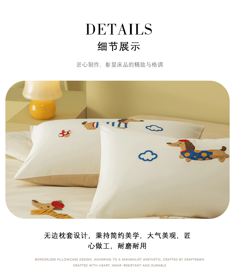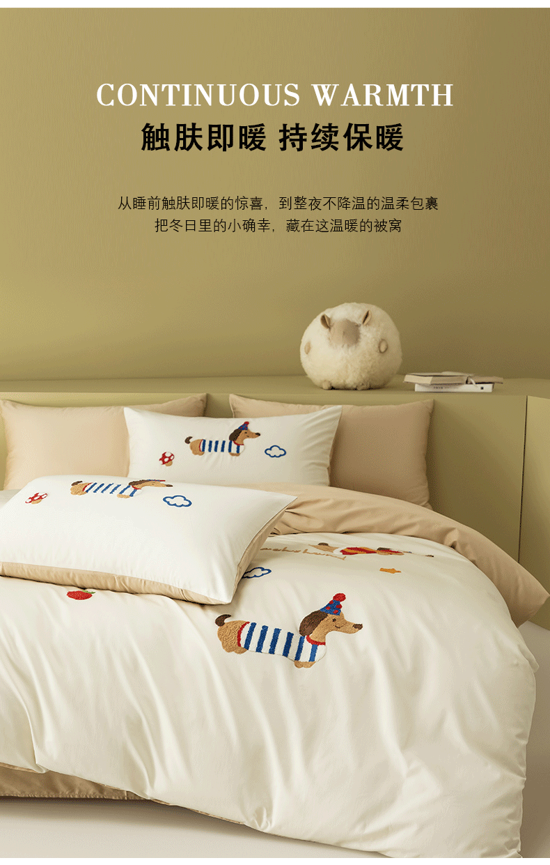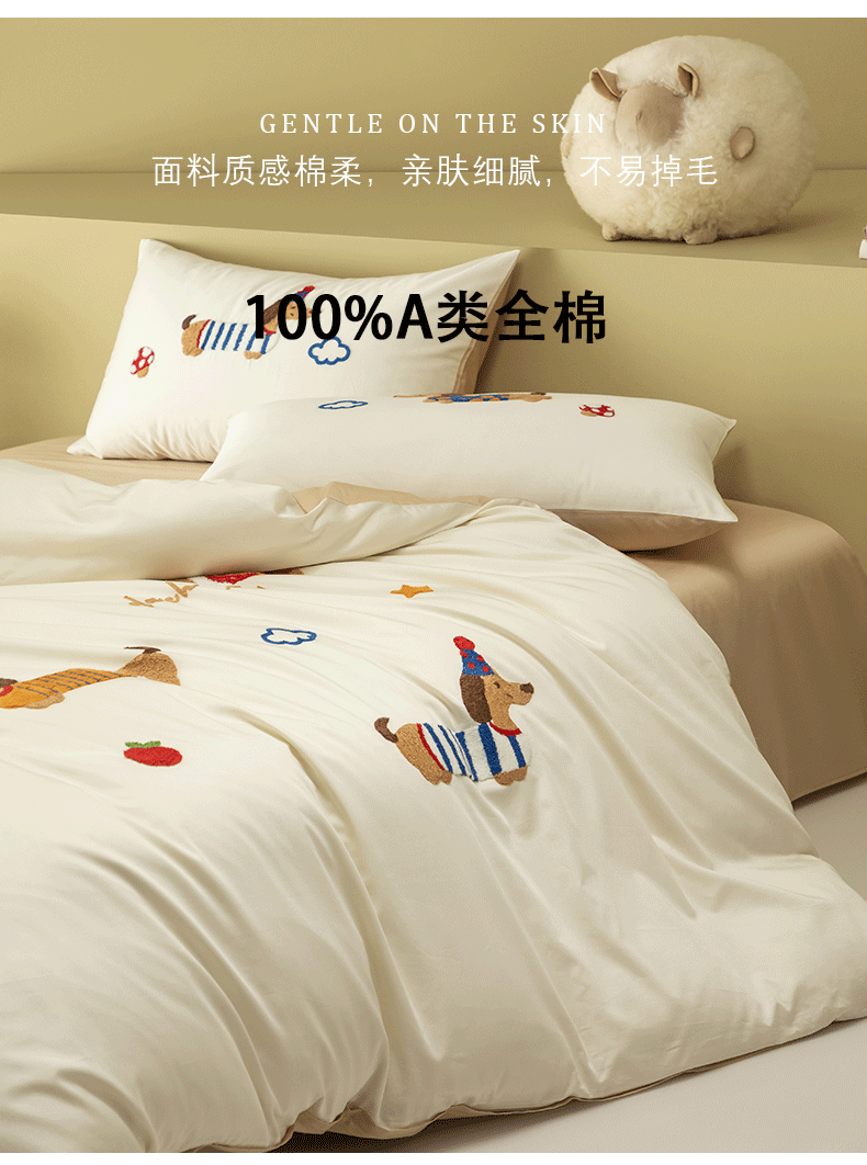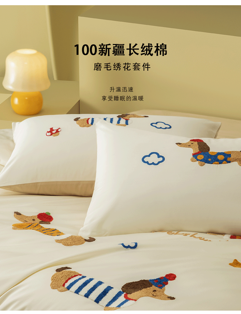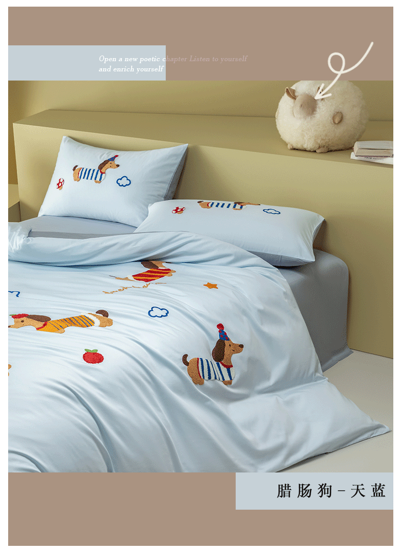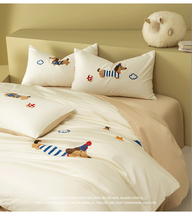 当前位置: 91家纺网 > 商品网购 > 床品套件 > 四件套 > 全棉普通四件套 > 618家纺 2026新款A类100支全棉纯棉毛巾绣花四件套-腊肠狗系列 腊肠狗-卡其