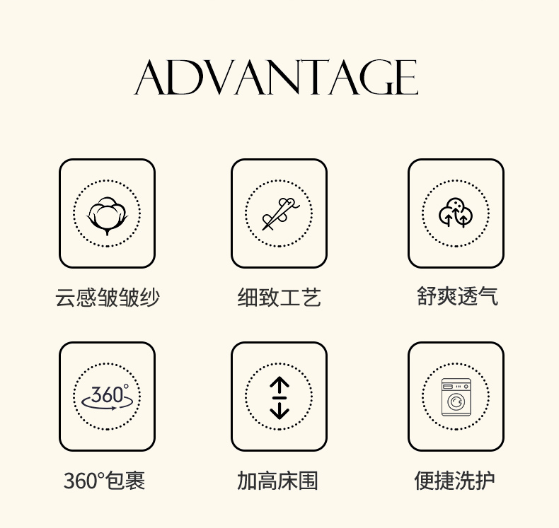 • 91家纺网 家纺一手货源 找家纺 笠裙家纺 2026新款云感水洗棉印花单床笠床笠单件 兰亭序-米白