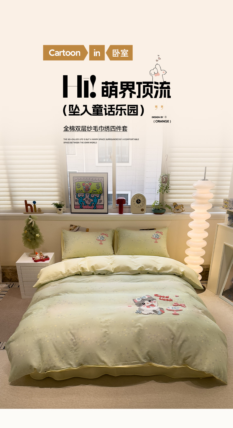当前位置: 91家纺网 > 商品网购 > 床品套件 > 四件套 > 全棉普通四件套 > (总)雅居纺家纺 2026新款全棉双层纱毛巾绣四件套
