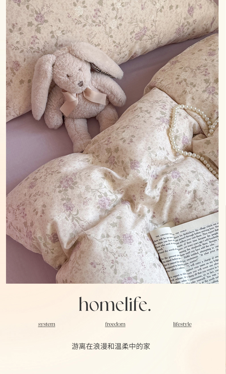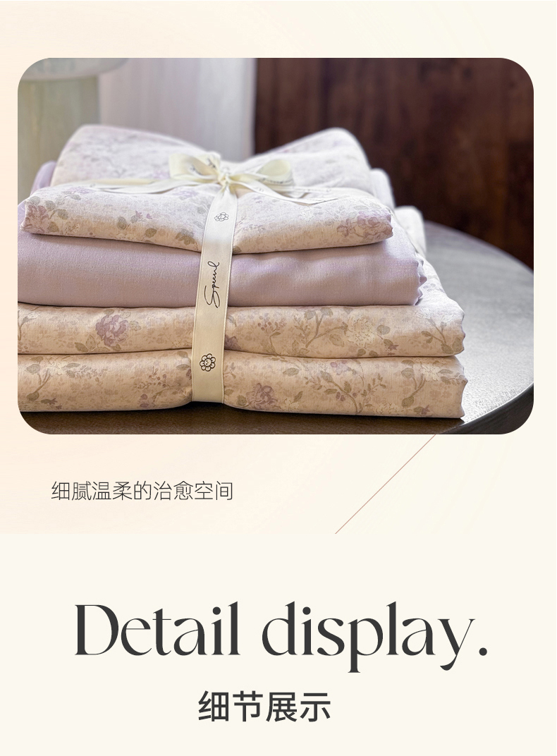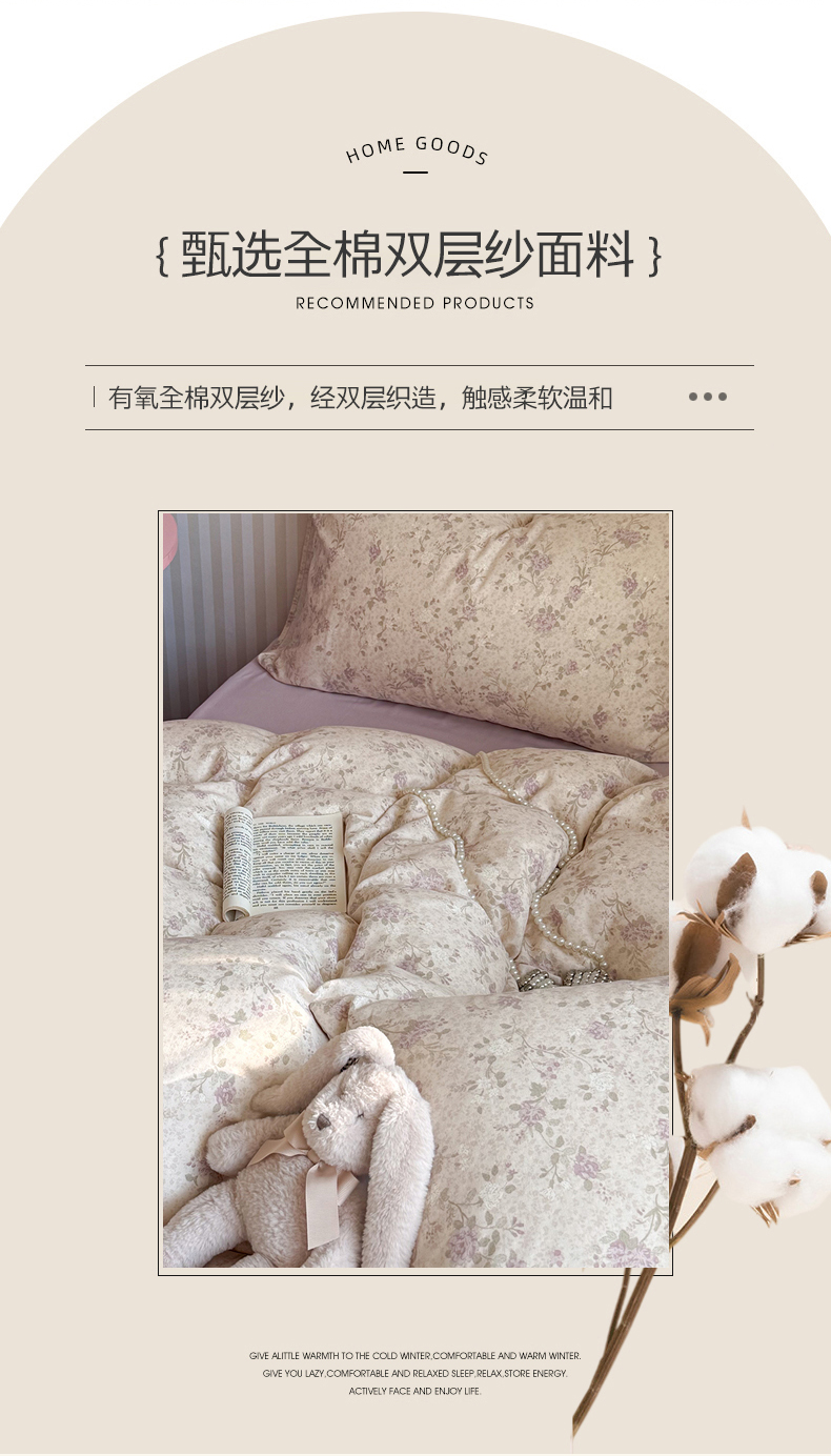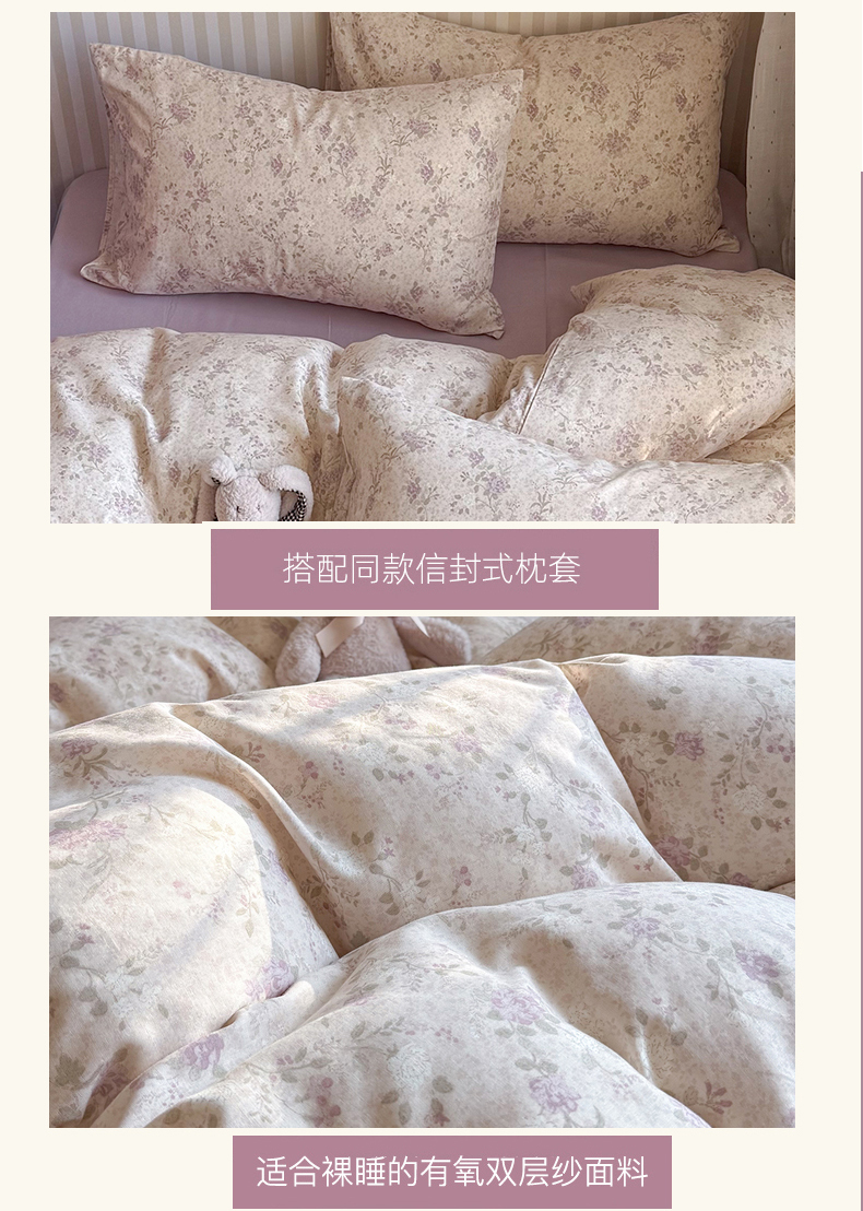 当前位置: 91家纺网 > 商品网购 > 床品套件 > 四件套 > 双层纱四件套 > 麦伦家居 2026春夏新品全棉有氧双层纱印花系列简约款四件套 巴黎晚香