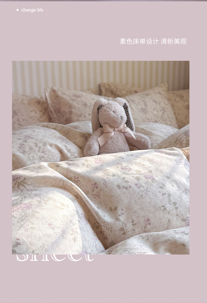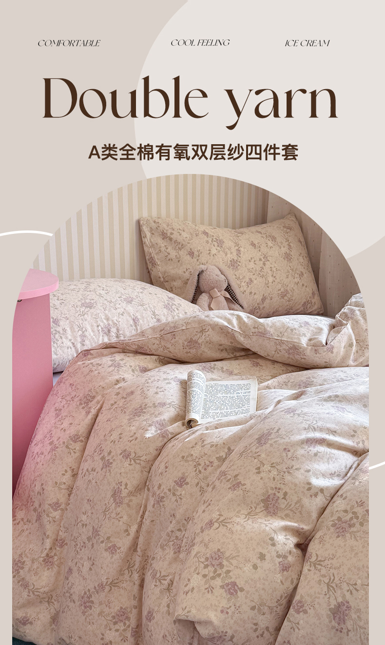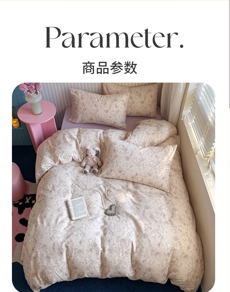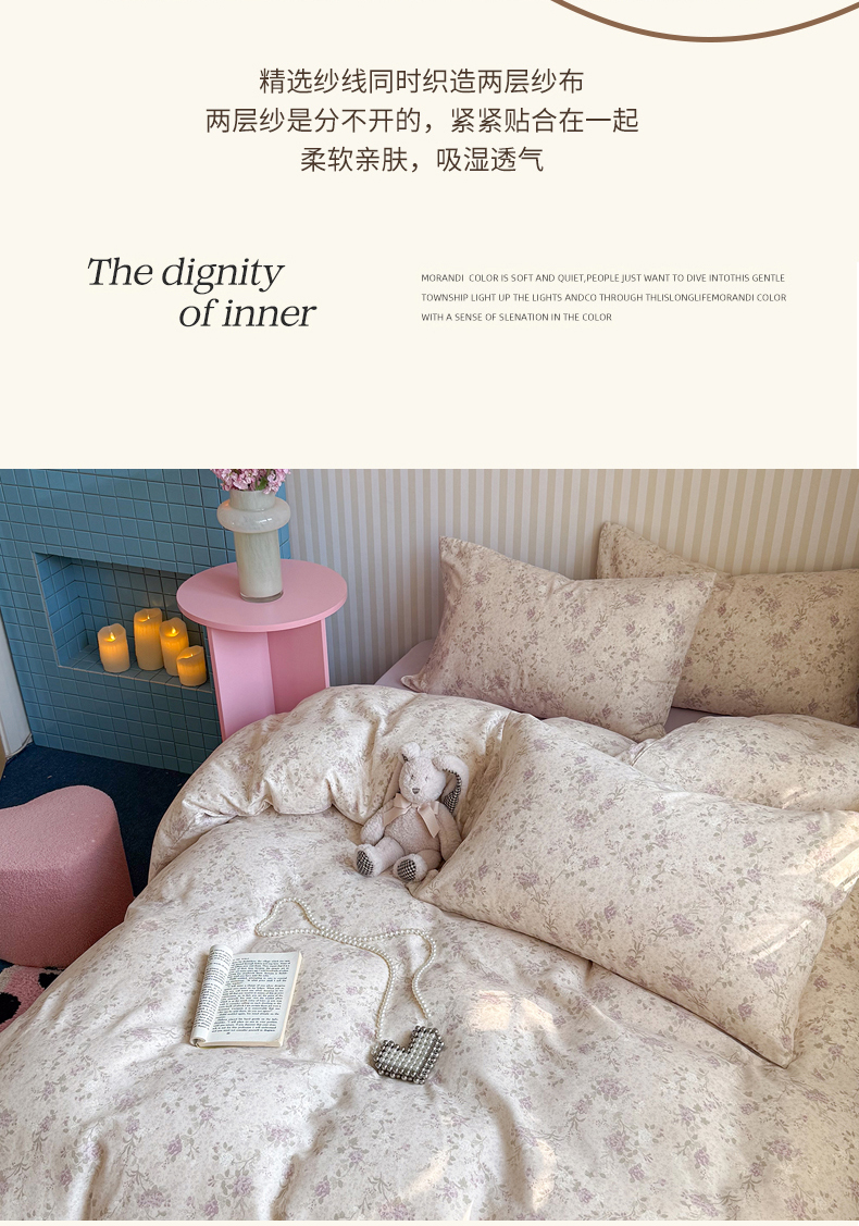 当前位置: 91家纺网 > 商品网购 > 床品套件 > 四件套 > 双层纱四件套 > 麦伦家居 2026春夏新品全棉有氧双层纱印花系列简约款四件套 巴黎晚香