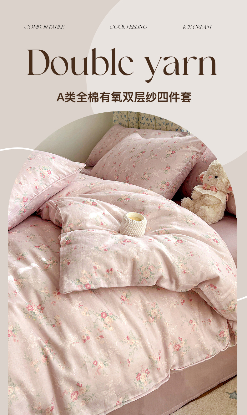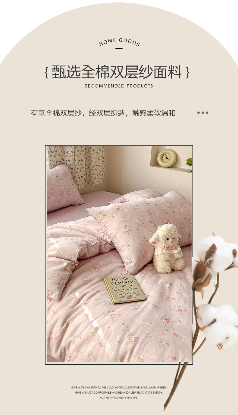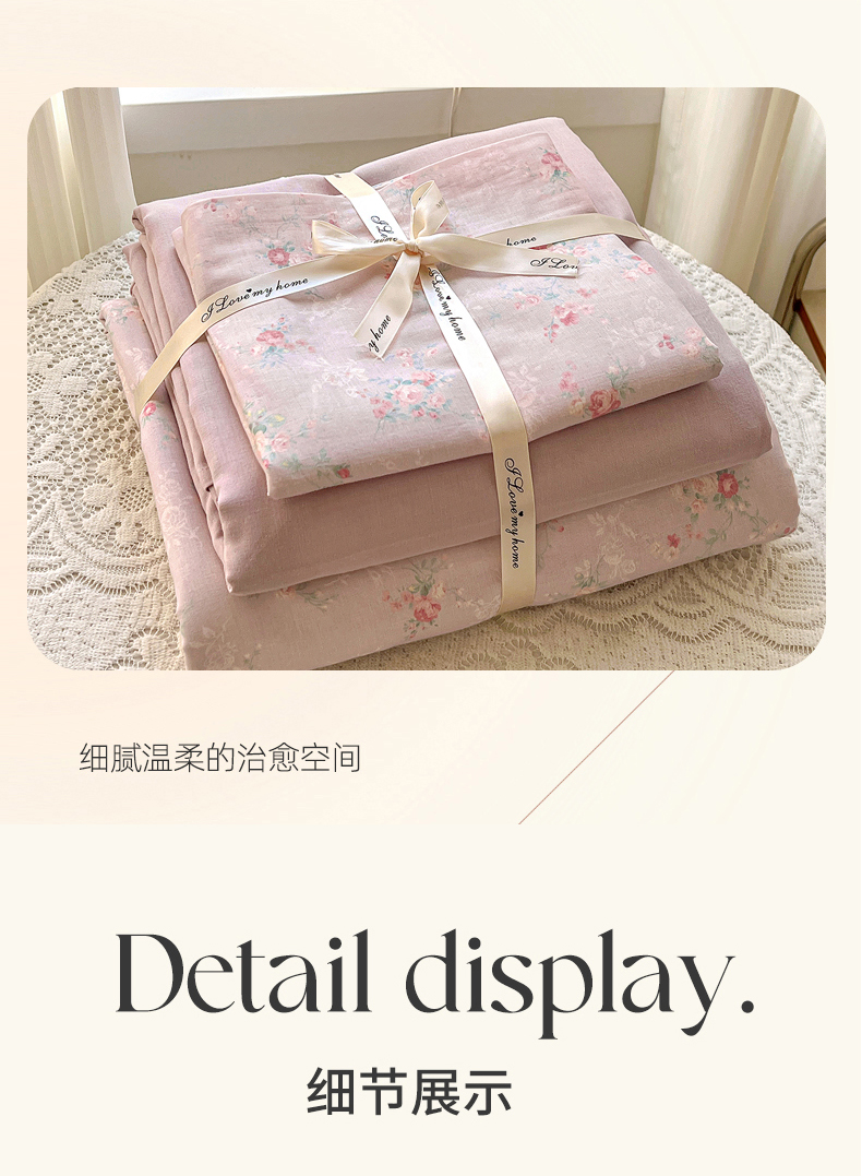 当前位置: 91家纺网 > 商品网购 > 床品套件 > 四件套 > 双层纱四件套 > 麦伦家居 2026春夏新品全棉有氧双层纱印花系列简约款四件套 浅梦紫
