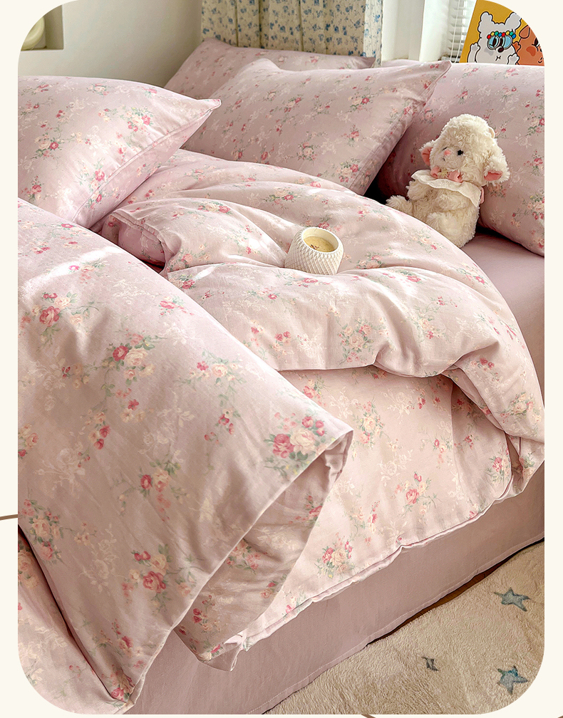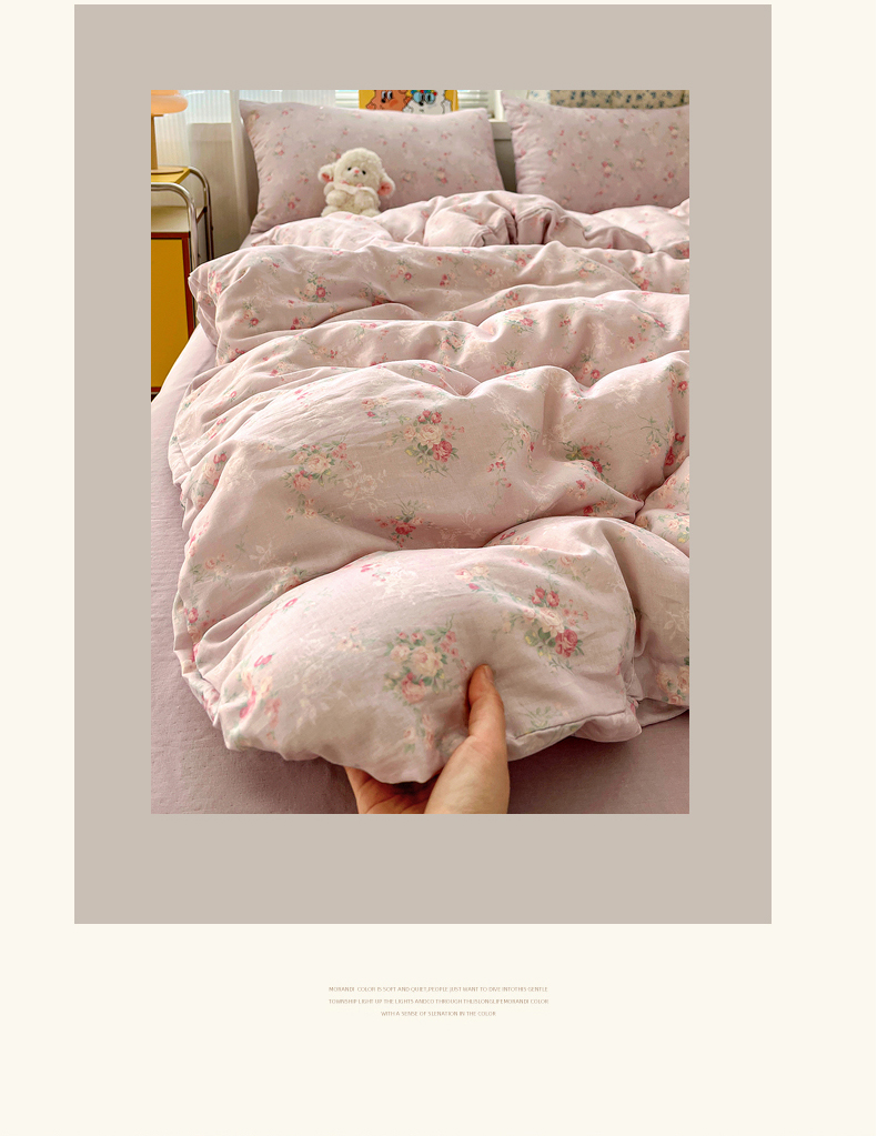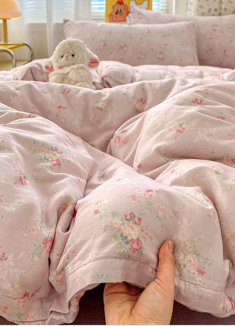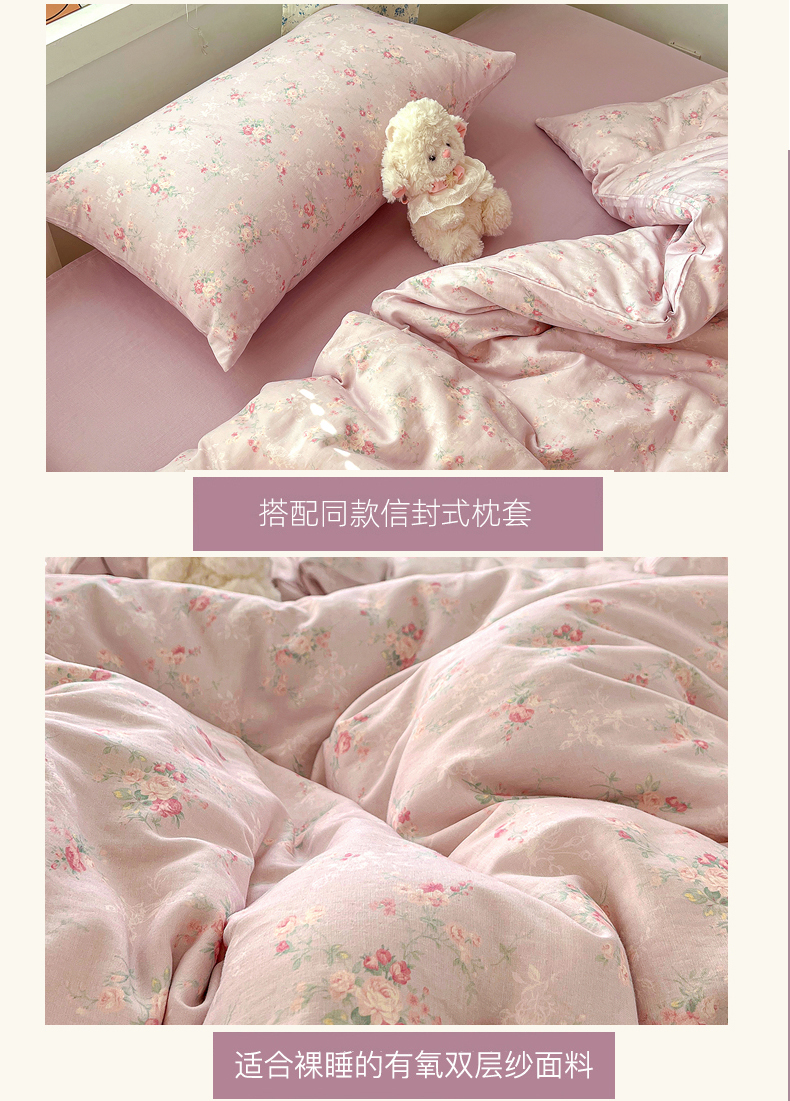 当前位置: 91家纺网 > 商品网购 > 床品套件 > 四件套 > 双层纱四件套 > 麦伦家居 2026春夏新品全棉有氧双层纱印花系列简约款四件套 浅梦紫