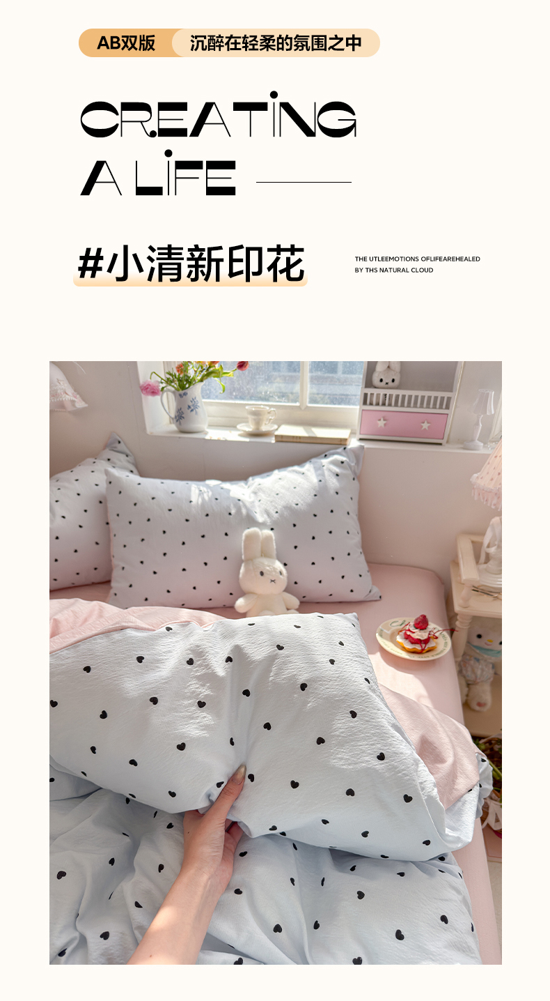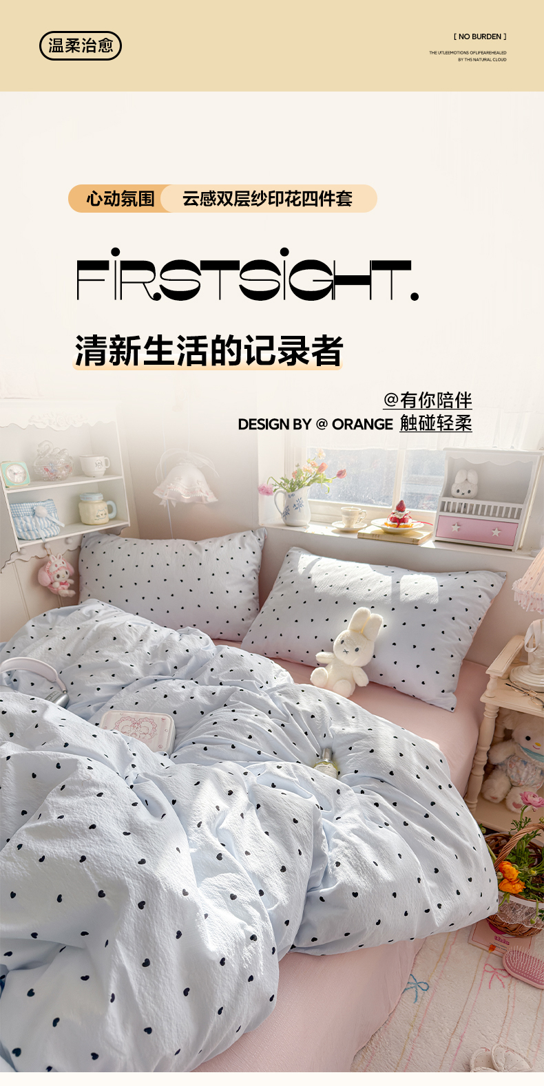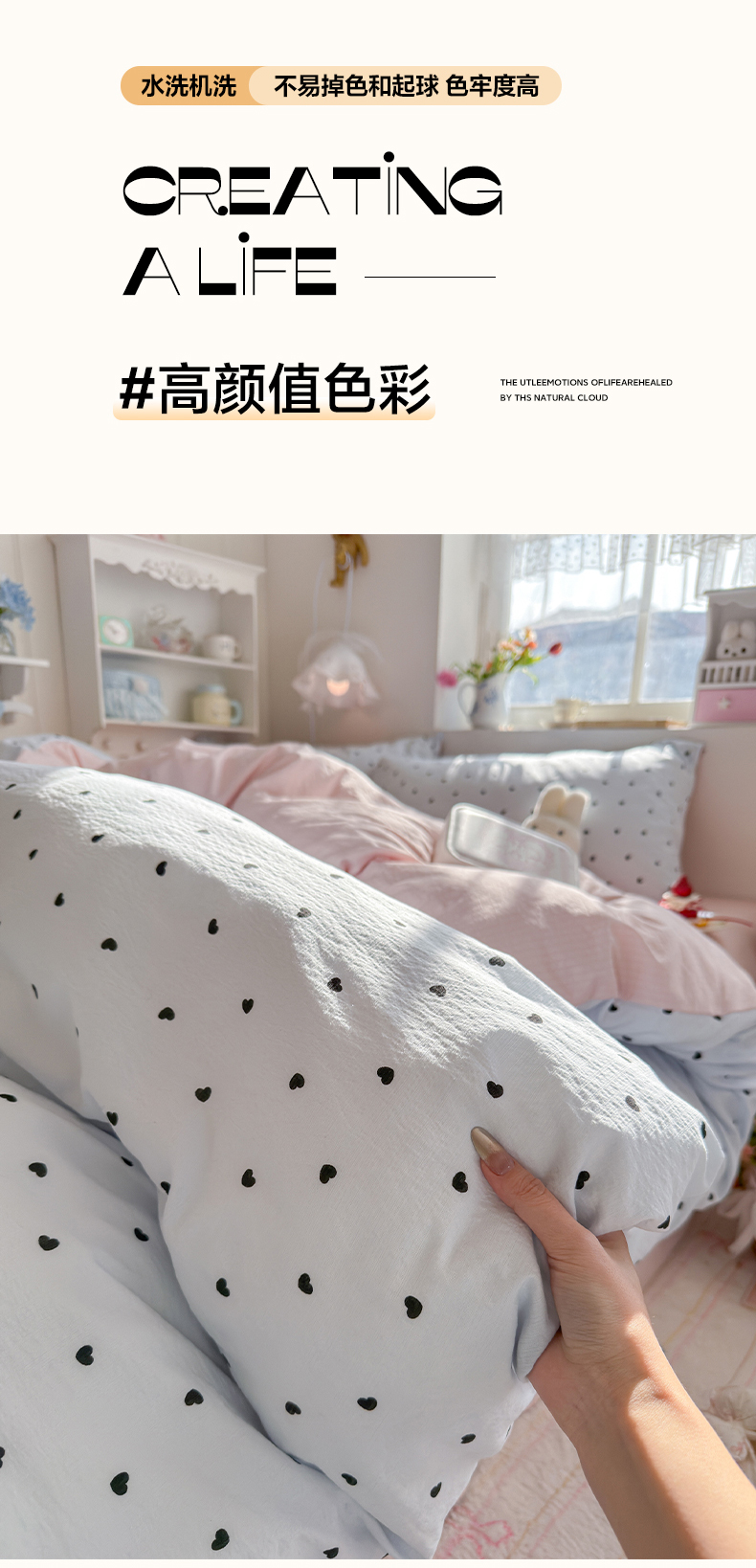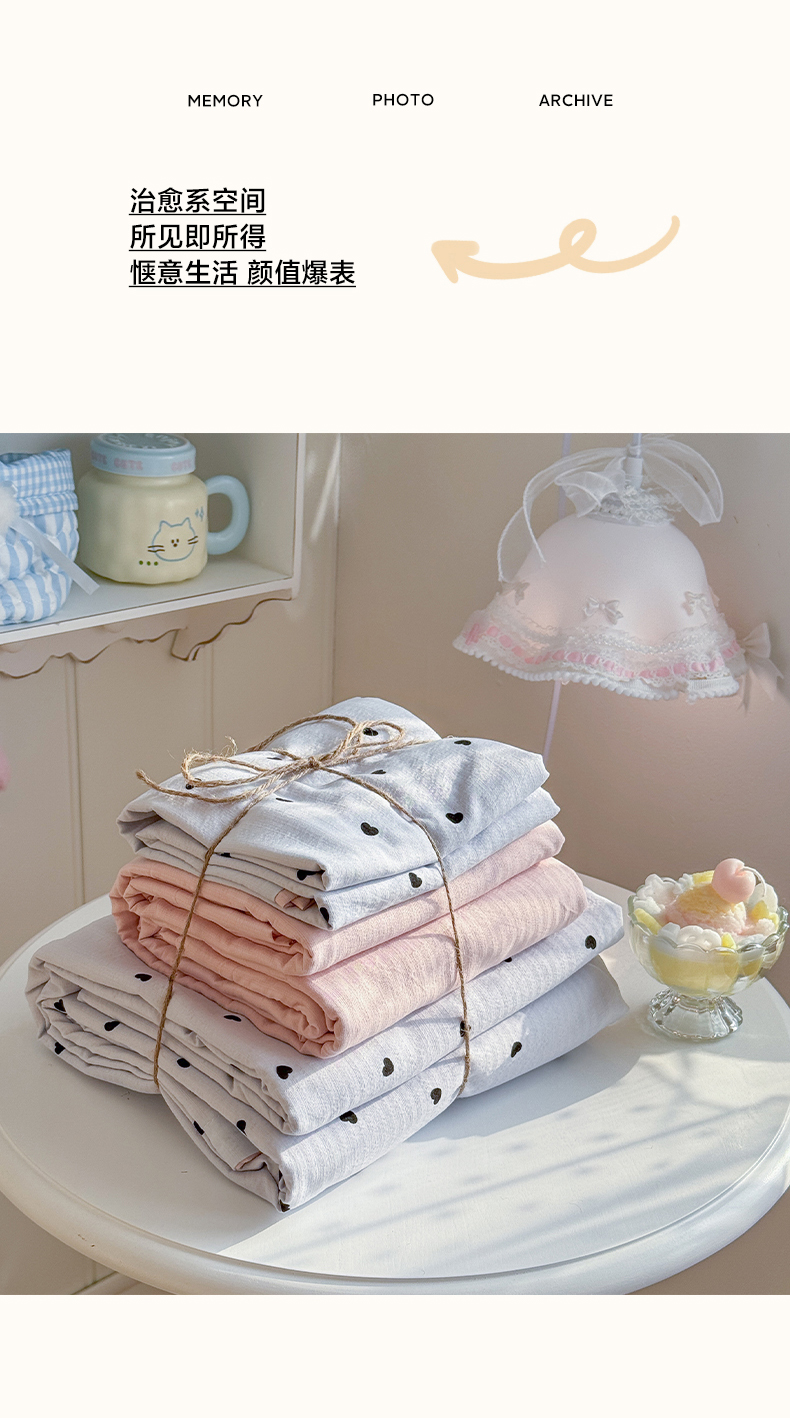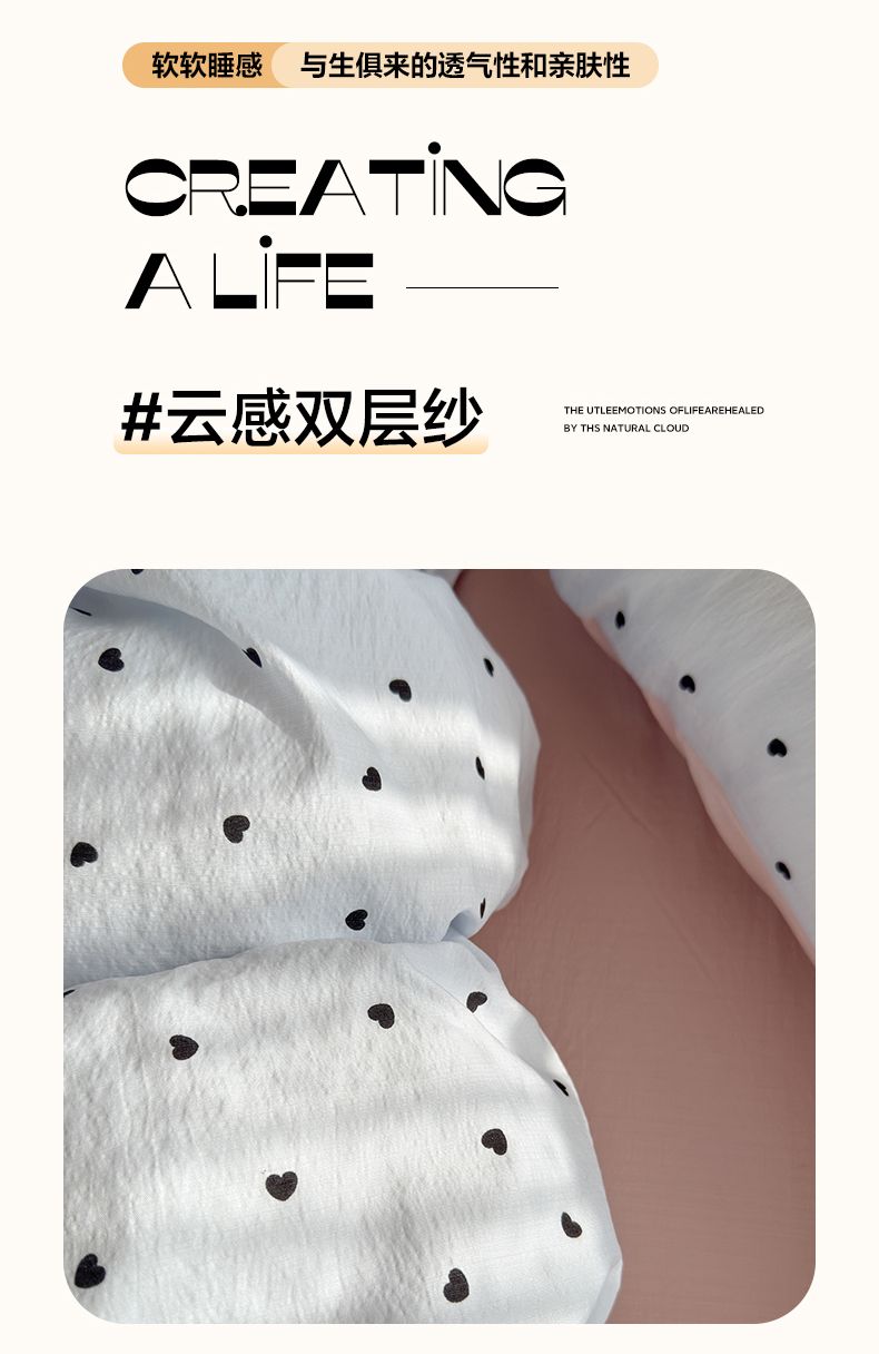 当前位置: 91家纺网 > 商品网购 > 床品套件 > 四件套 > 双层纱四件套 > 罗亿家纺 2026新款小清新云感双层纱木棉四件套系列(小红书热款推荐) 海盐甜心