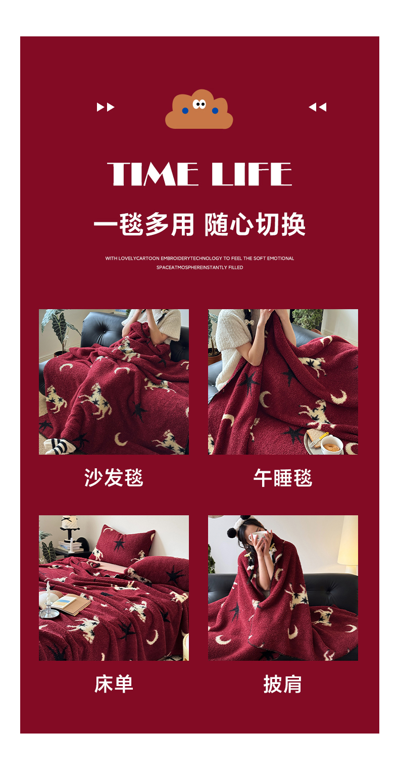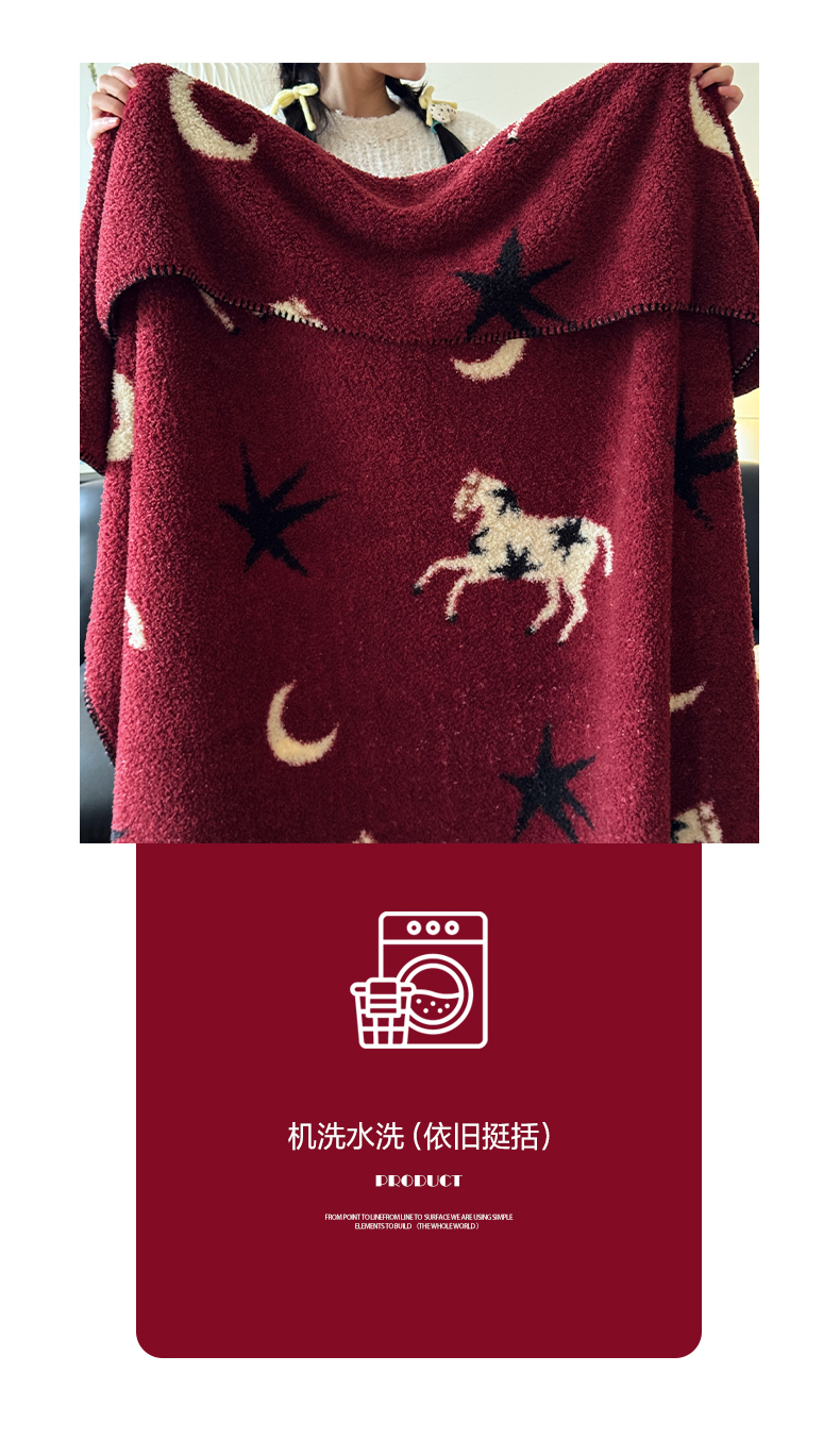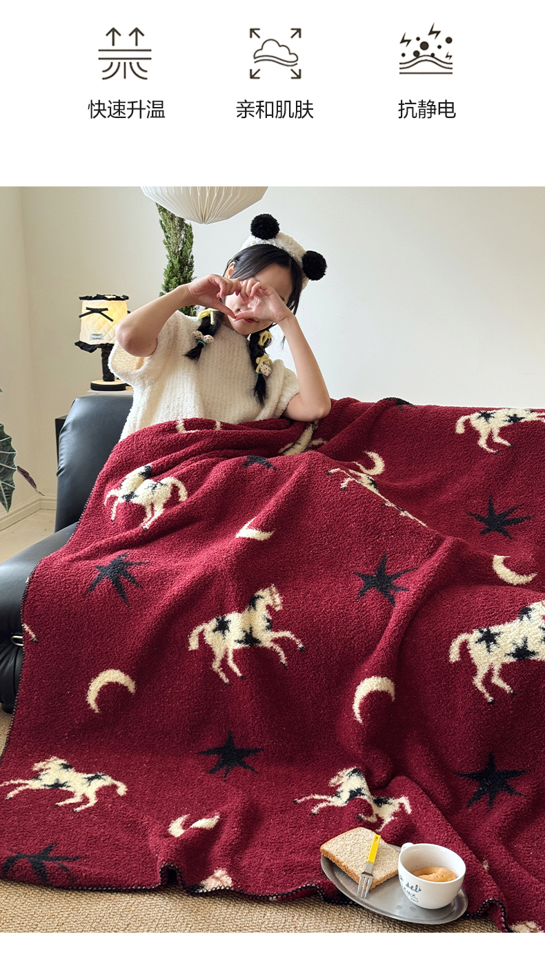 商品名称:舒隅家纺 2026新款多功能针织半边绒毯 星月驹-红