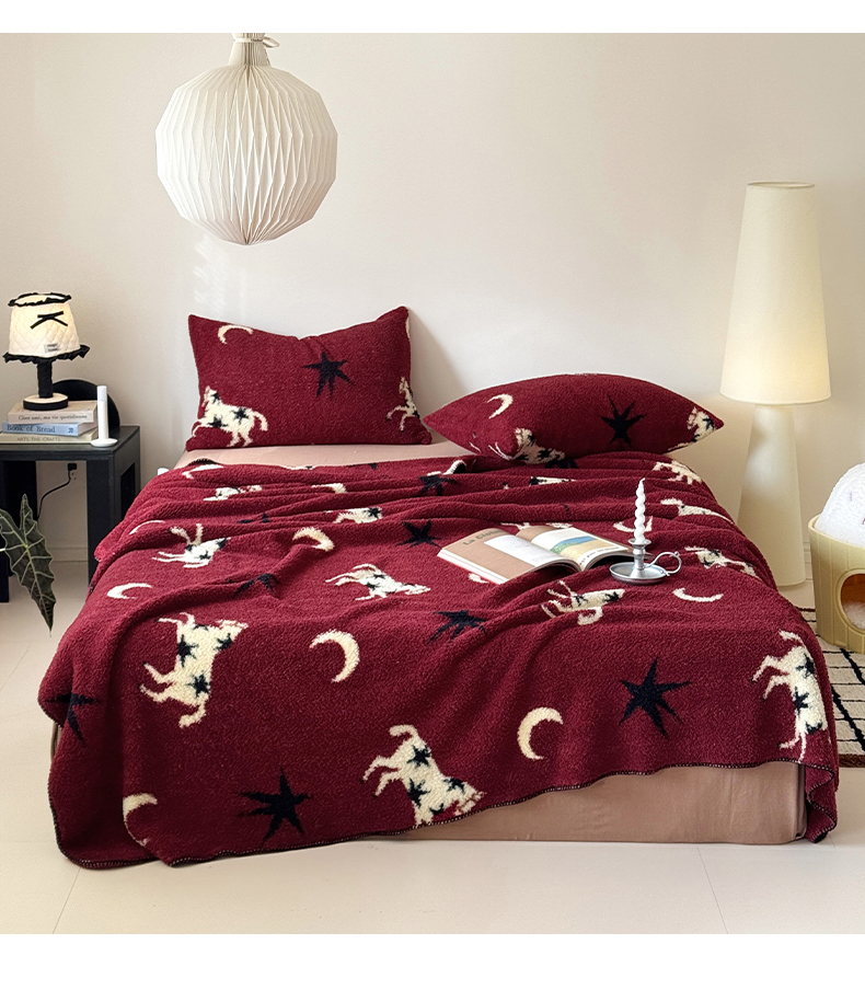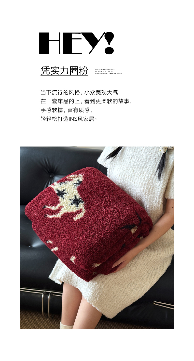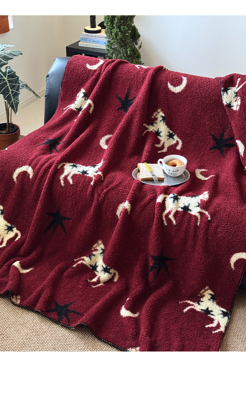 商品名称:舒隅家纺 2026新款多功能针织半边绒毯 星月驹-红