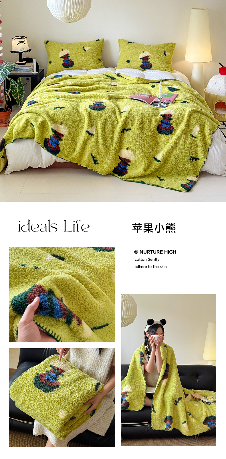 (总)舒隅家纺 2026新款多功能针织半边绒毯,星月驹-橙,苹果小熊,绒球小猫,星月驹-红