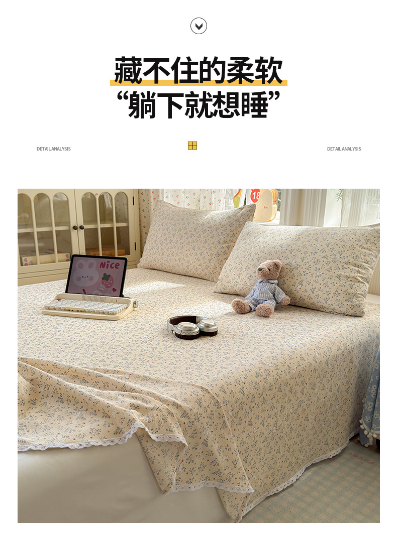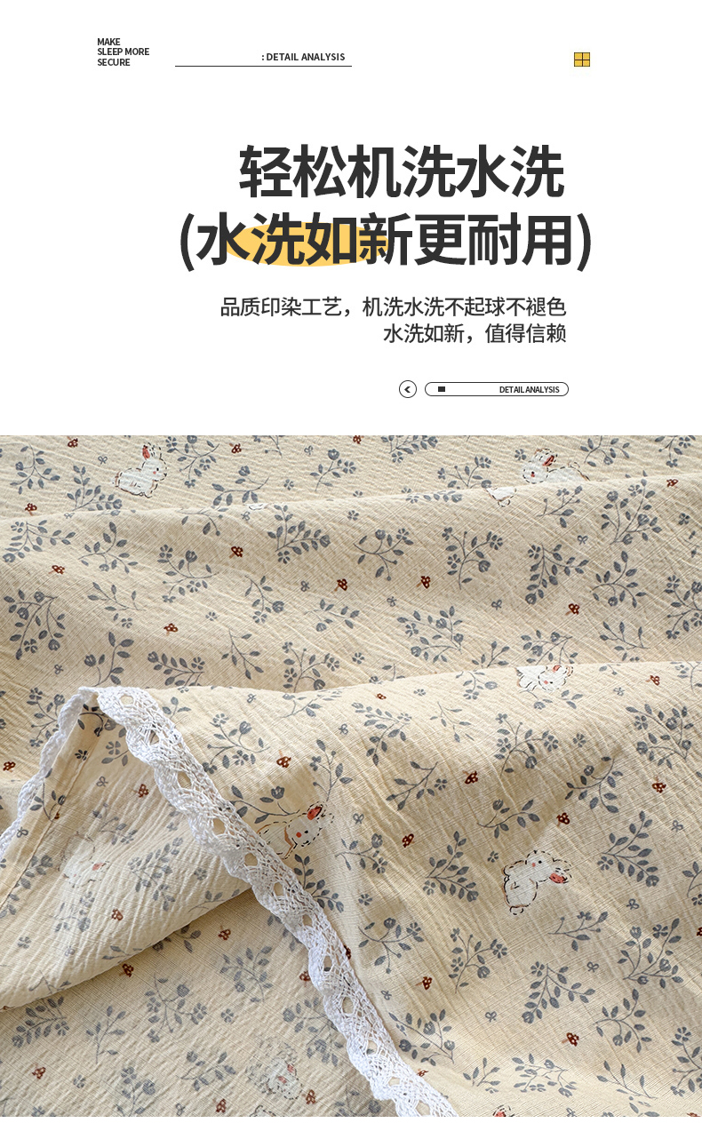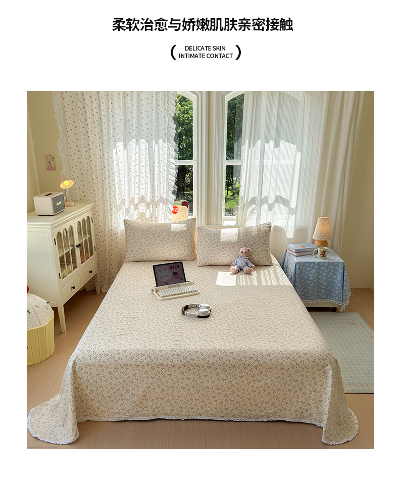 • 91家纺网 家纺一手货源 找家纺 沐芷 2026 【提供买家秀】A类白花边床单单件 单人双人床单三件套 花园兔