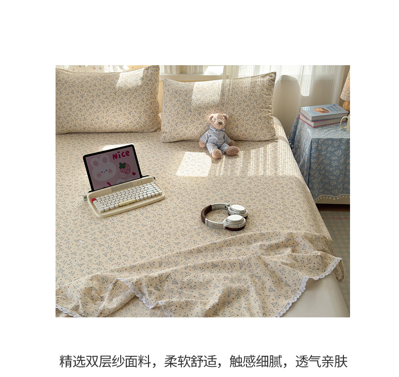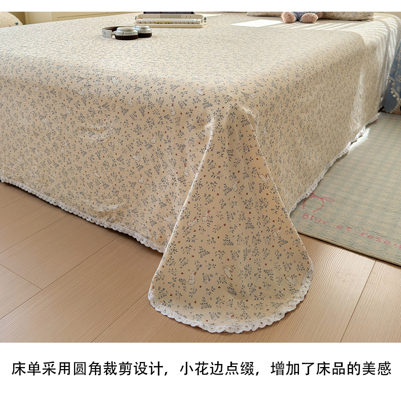 沐芷 2026 【提供买家秀】A类白花边床单单件 单人双人床单三件套 花园兔