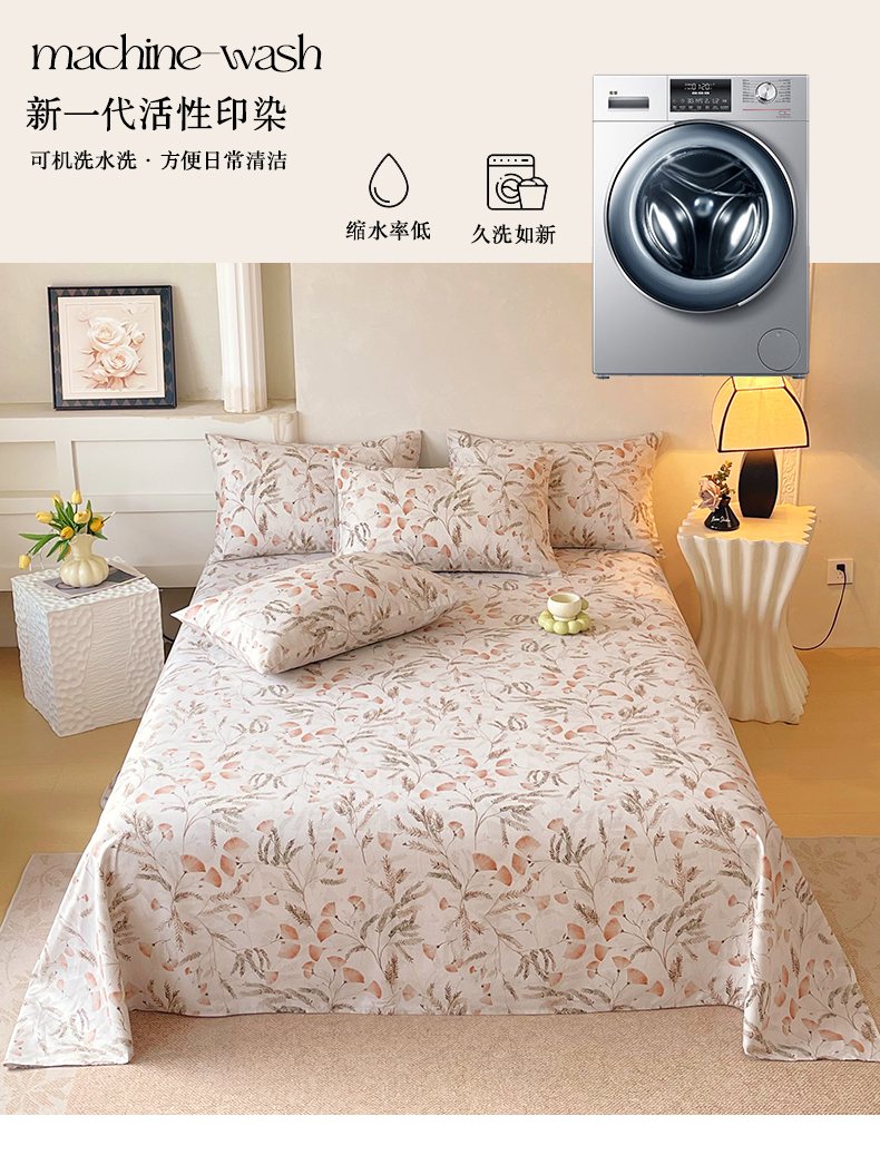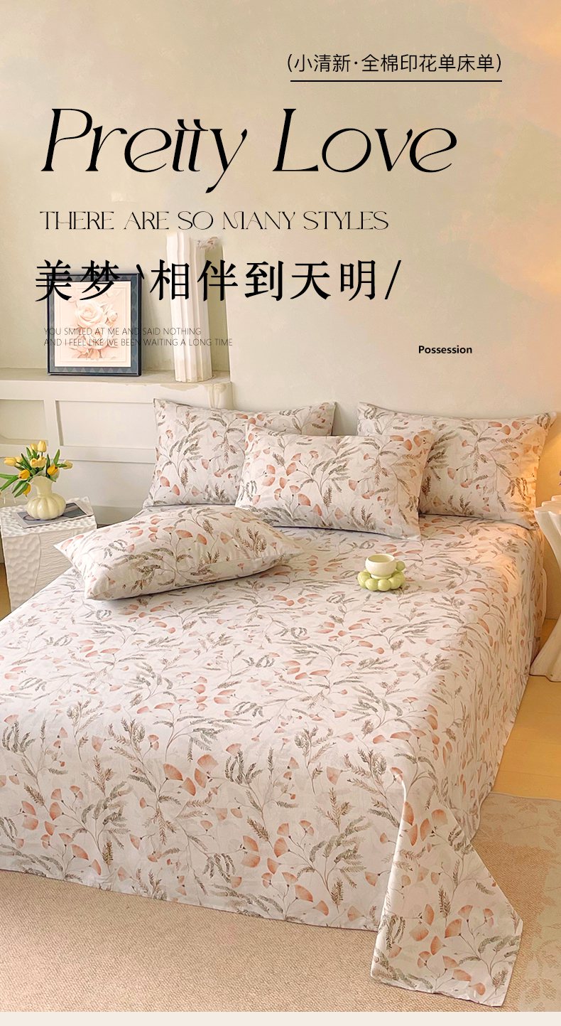 (总)金鑫汇家纺 2026新款全棉印花小清新单品床单系列-可露丽,海盐可露丽,浅咖可露丽,浅绿可露丽,月下花影-桔,月下花影-蓝,月下花影-绿