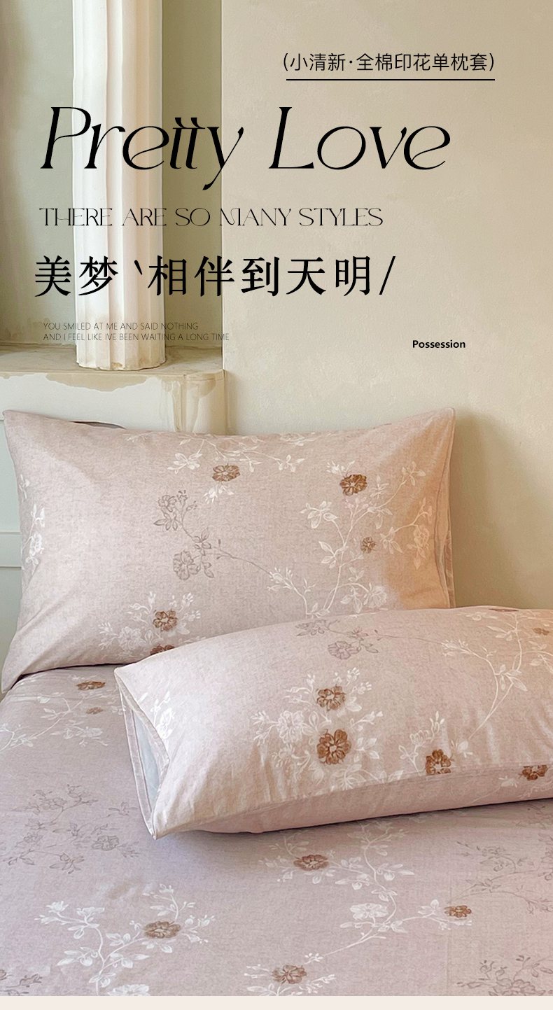 (总)金鑫汇家纺 2026新款全棉印花小清新单枕套系列-可露丽,海盐可露丽,浅咖可露丽,浅绿可露丽,月下花影-桔,月下花影-蓝,月下花影-绿
