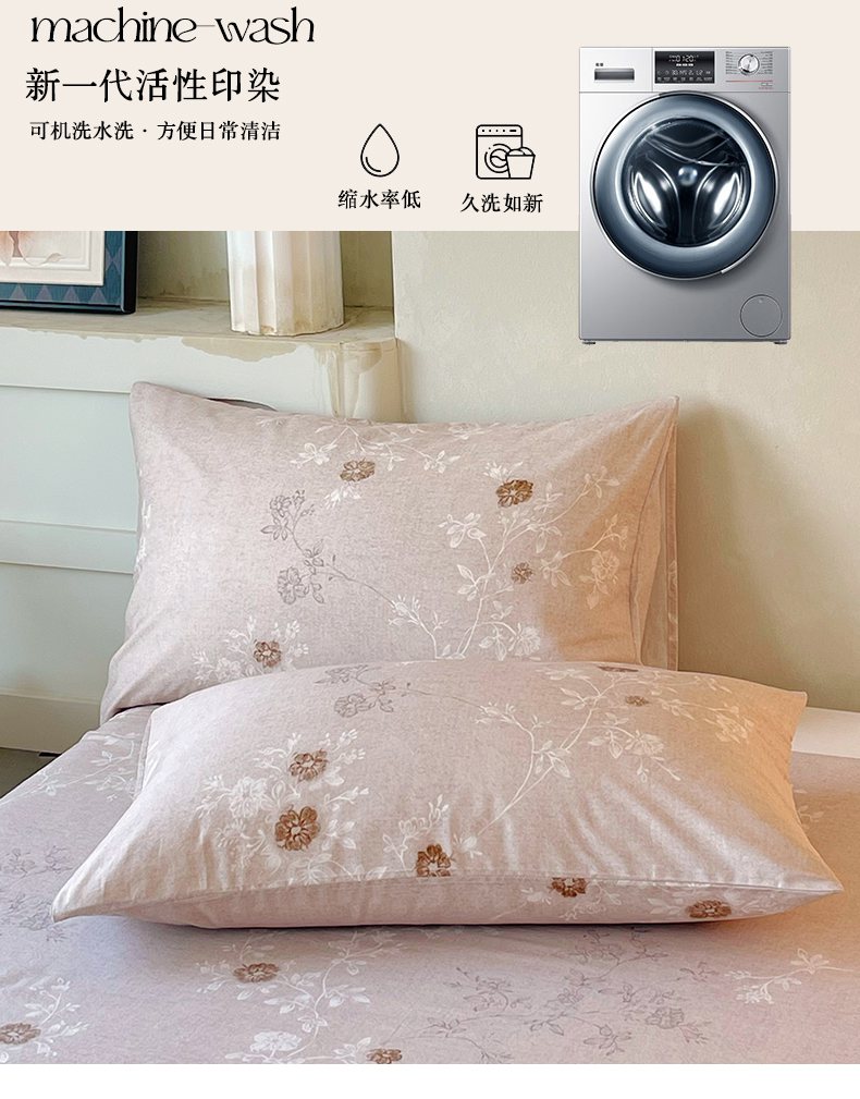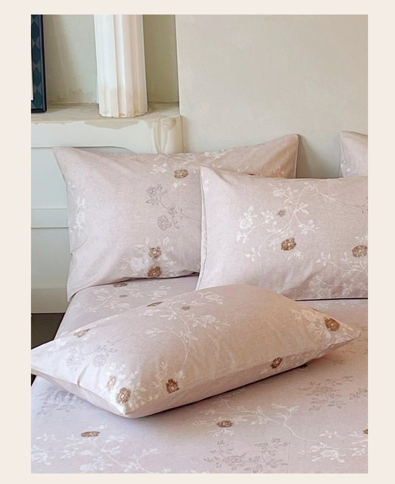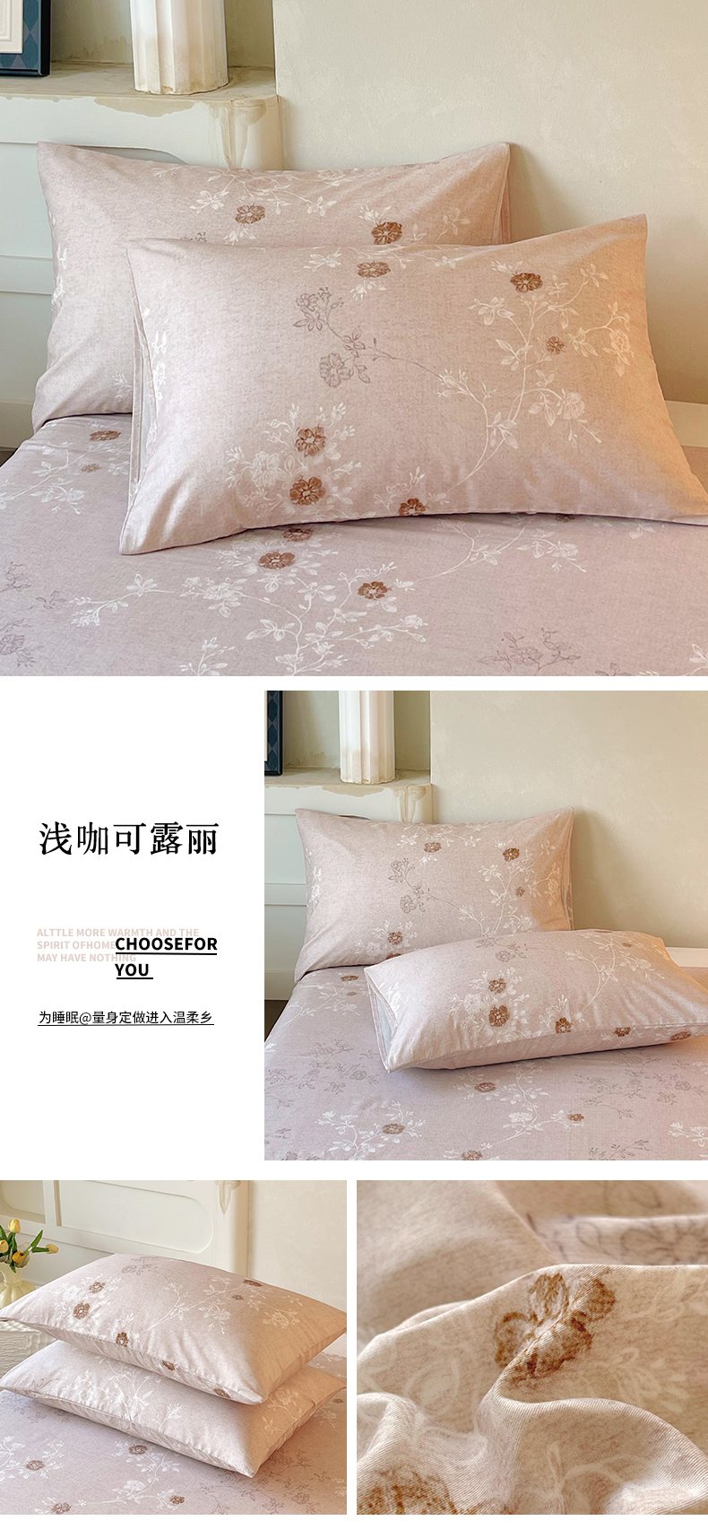 商品名称:金鑫汇家纺 2026新款全棉印花小清新单枕套系列-可露丽 浅咖可露丽