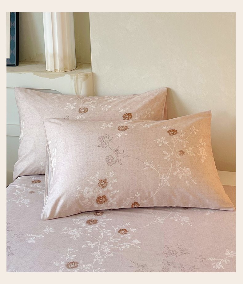 金鑫汇家纺 2026新款全棉印花小清新单枕套系列-可露丽 浅咖可露丽