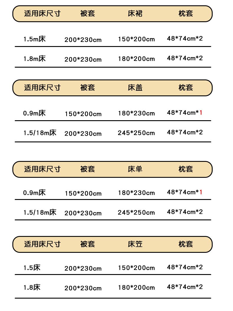 1.8m床笠款四件套 | ¥85.00 |