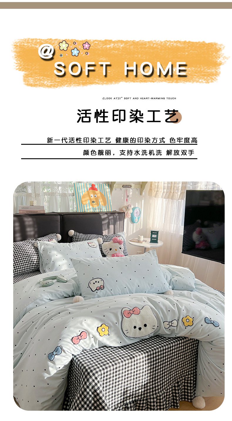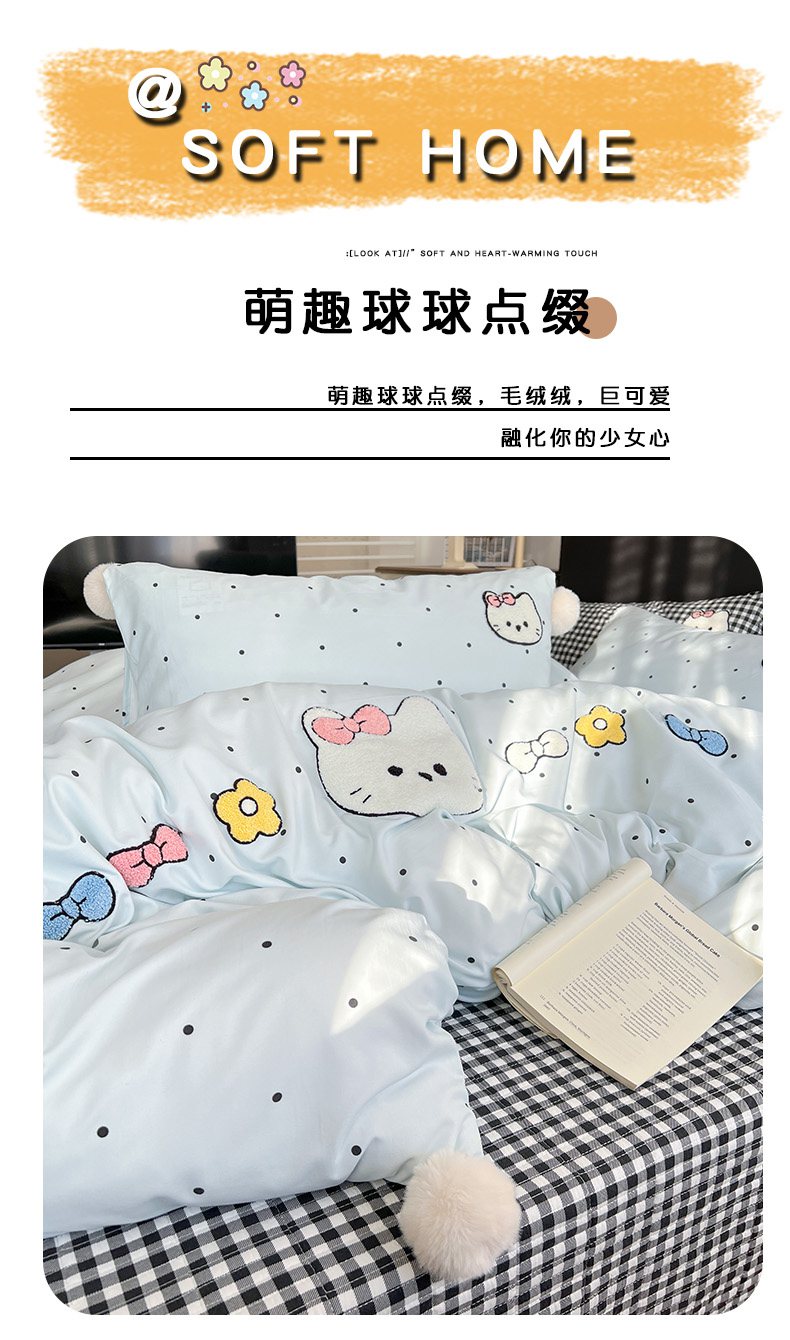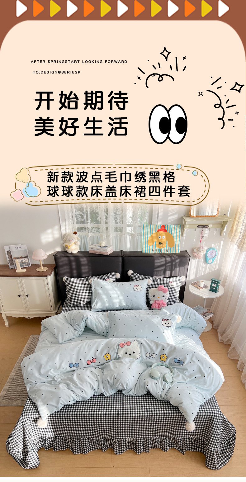 当前位置: 91家纺网 > 商品网购 > 床品套件 > 四件套 > 水洗棉四件套 > (总)富米莱(原臻工厂) 2026新款水洗棉波点毛巾绣黑格球球款床盖床裙四件套
