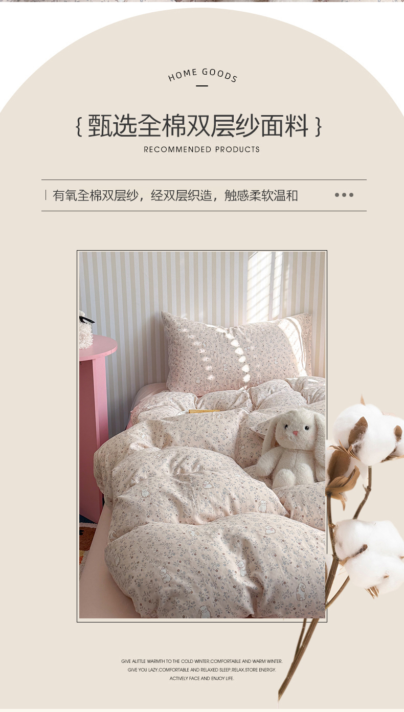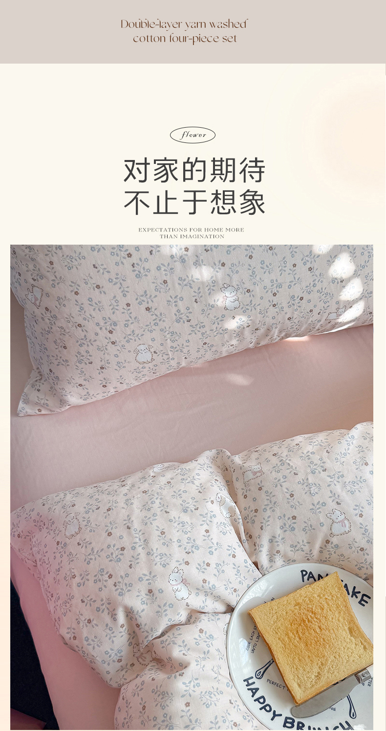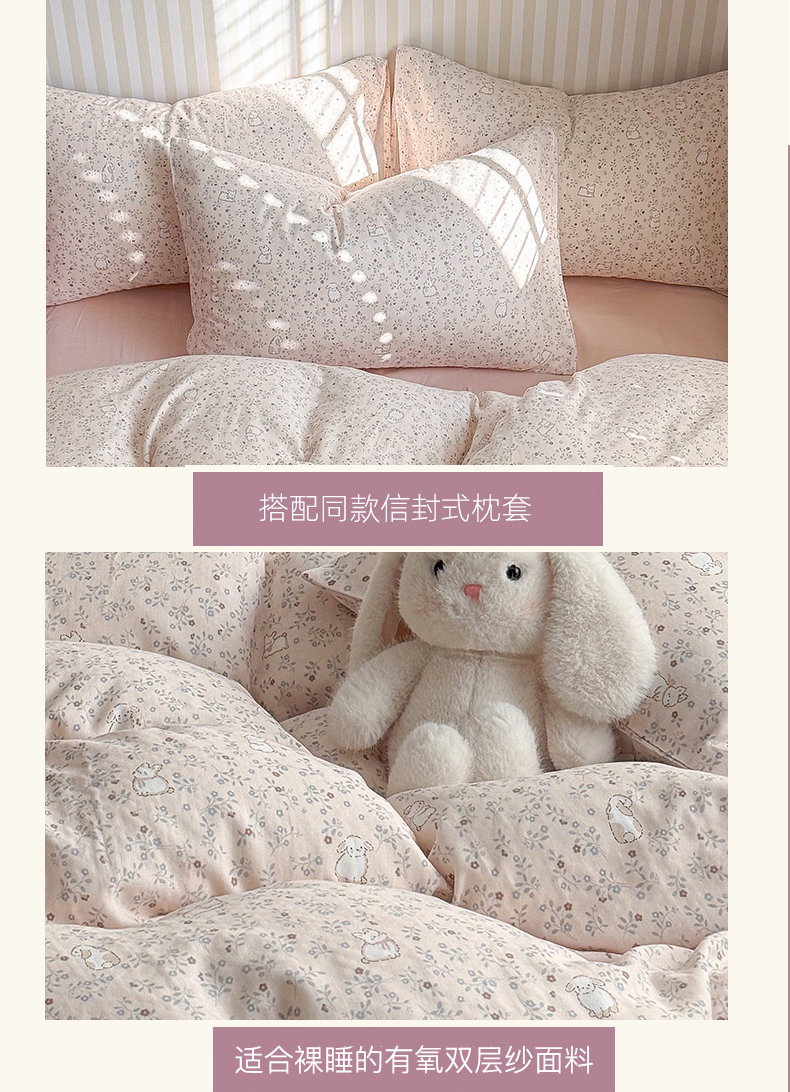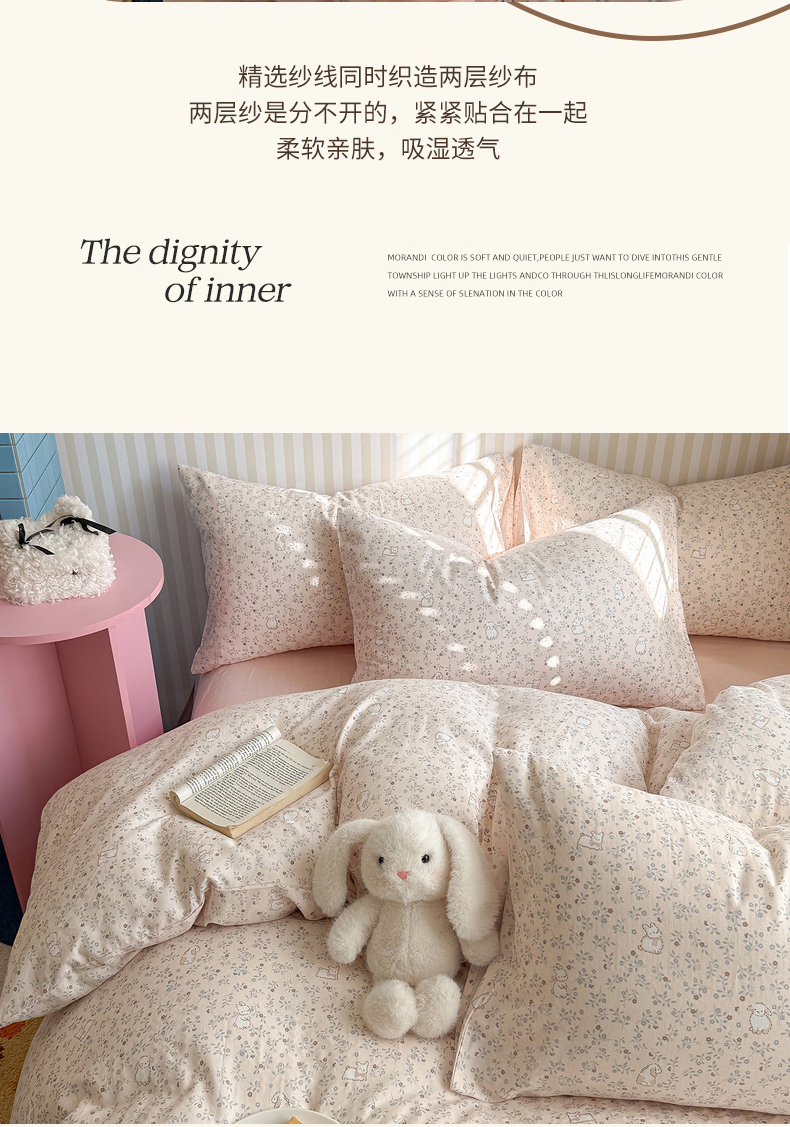 当前位置: 91家纺网 > 商品网购 > 床品套件 > 四件套 > 全棉普通四件套 > 麦伦家居 2026年春夏新款全棉纯棉有氧双层纱印花四件套-第二波 云锦兔-粉