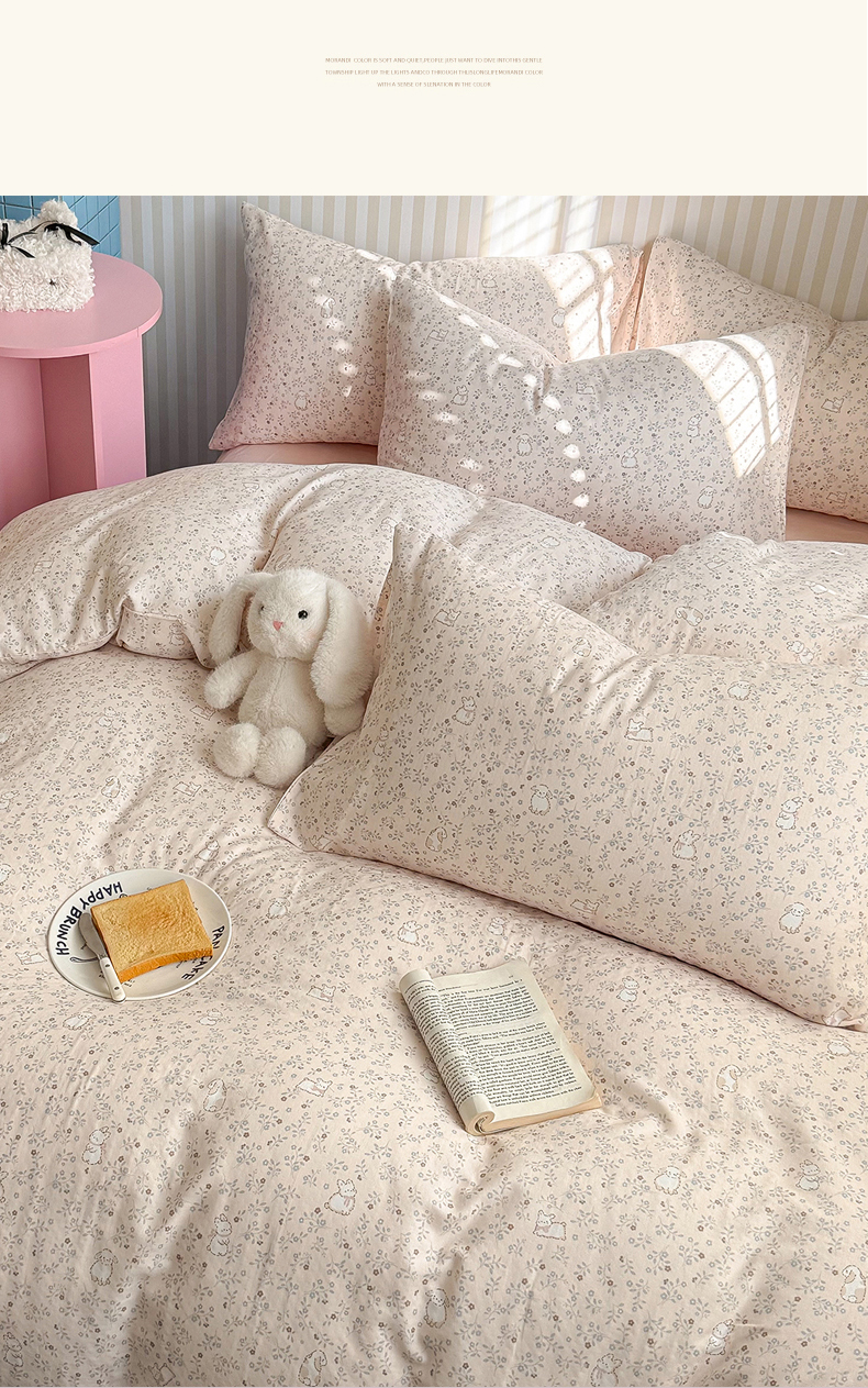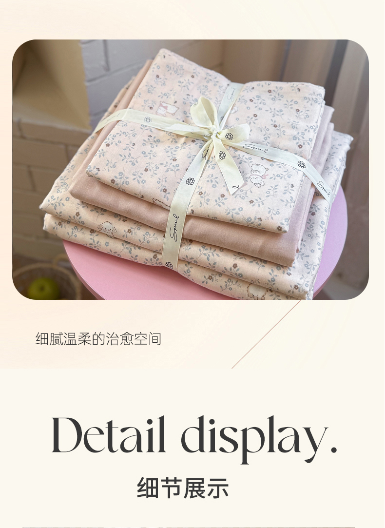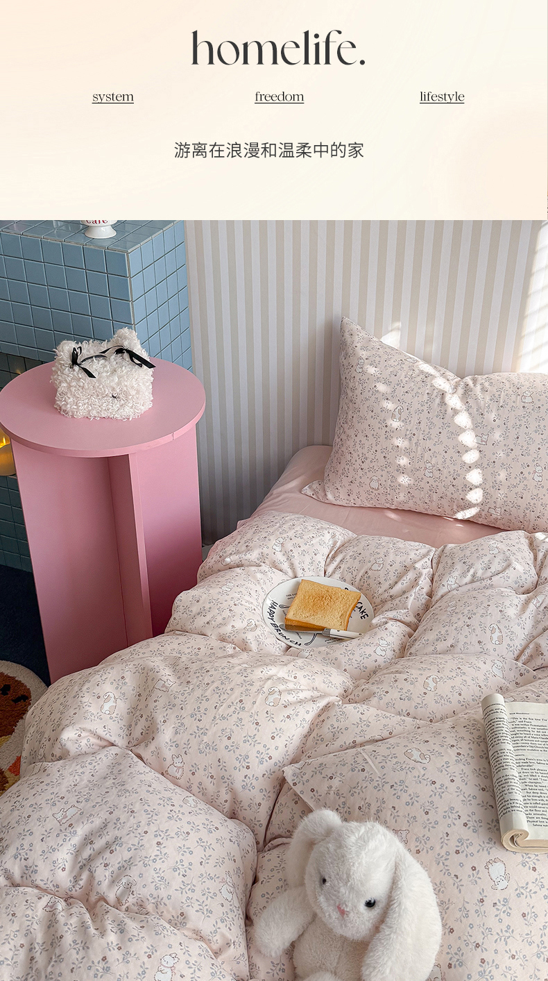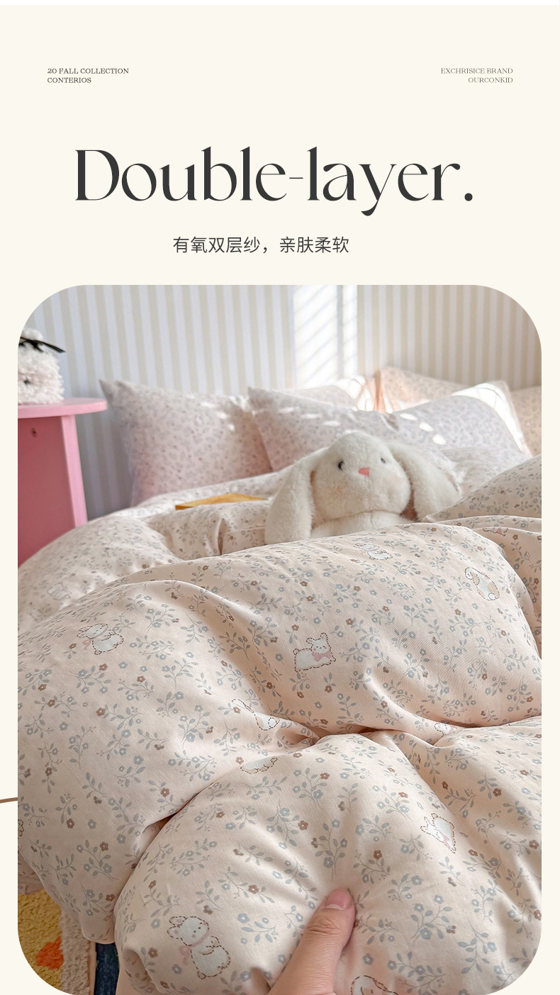 当前位置: 91家纺网 > 商品网购 > 床品套件 > 四件套 > 全棉普通四件套 > 麦伦家居 2026年春夏新款全棉纯棉有氧双层纱印花四件套-第二波 云锦兔-粉