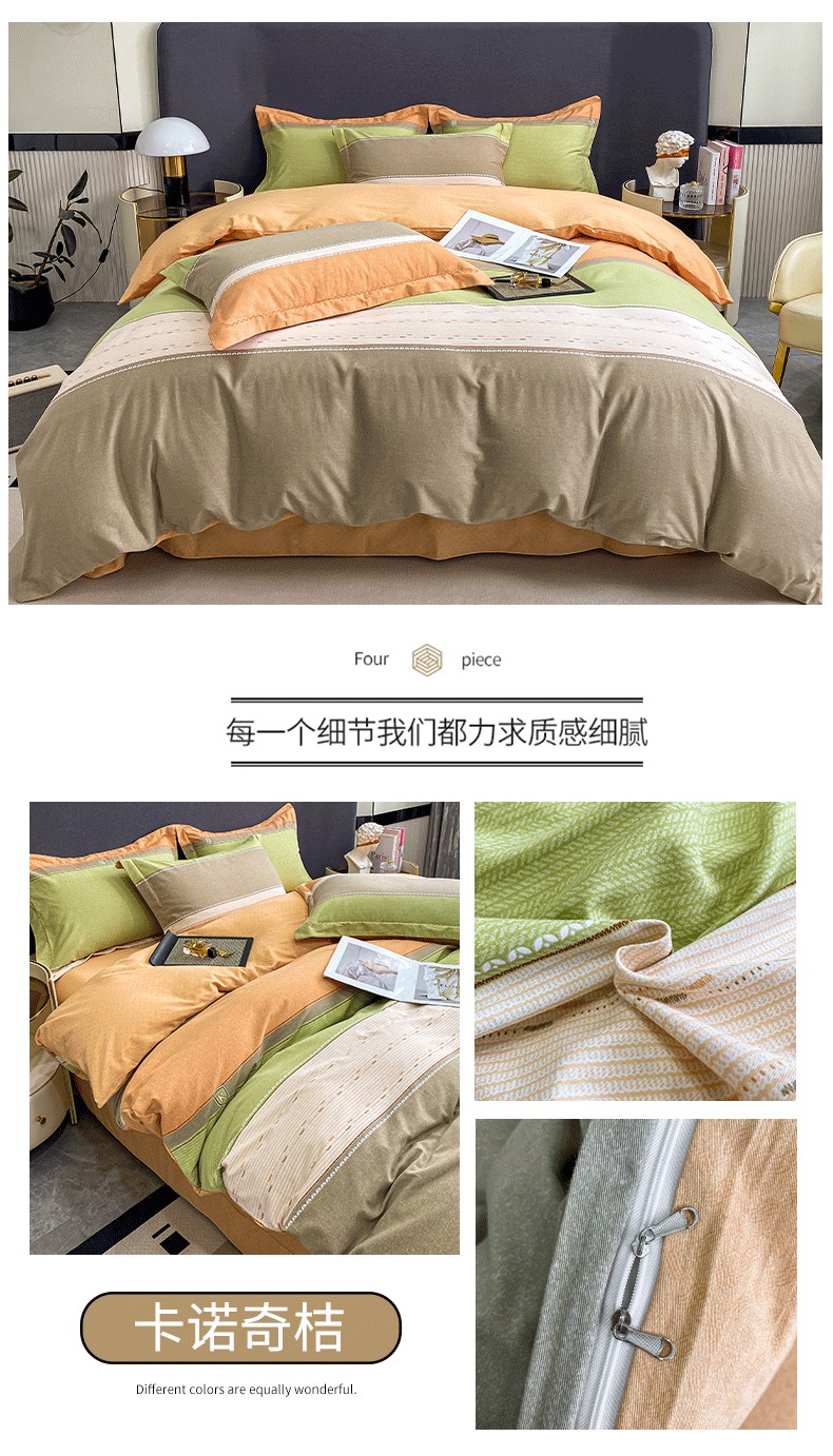 商品名称:凌鼎 2025新款100%全棉磨毛四件套数码印花加厚纯棉磨毛四件套 卡诺奇桔