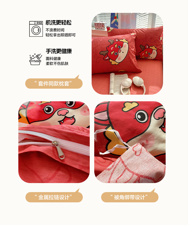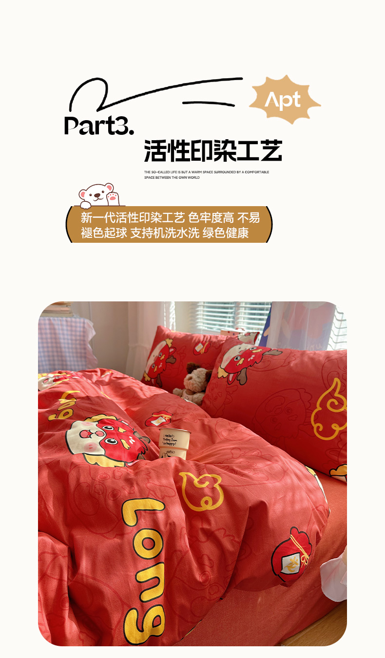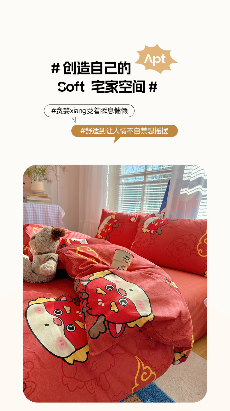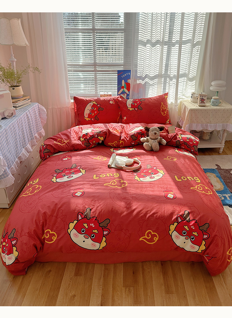 雅居纺家纺 2026新款全棉小清新印花四件套 红红火火