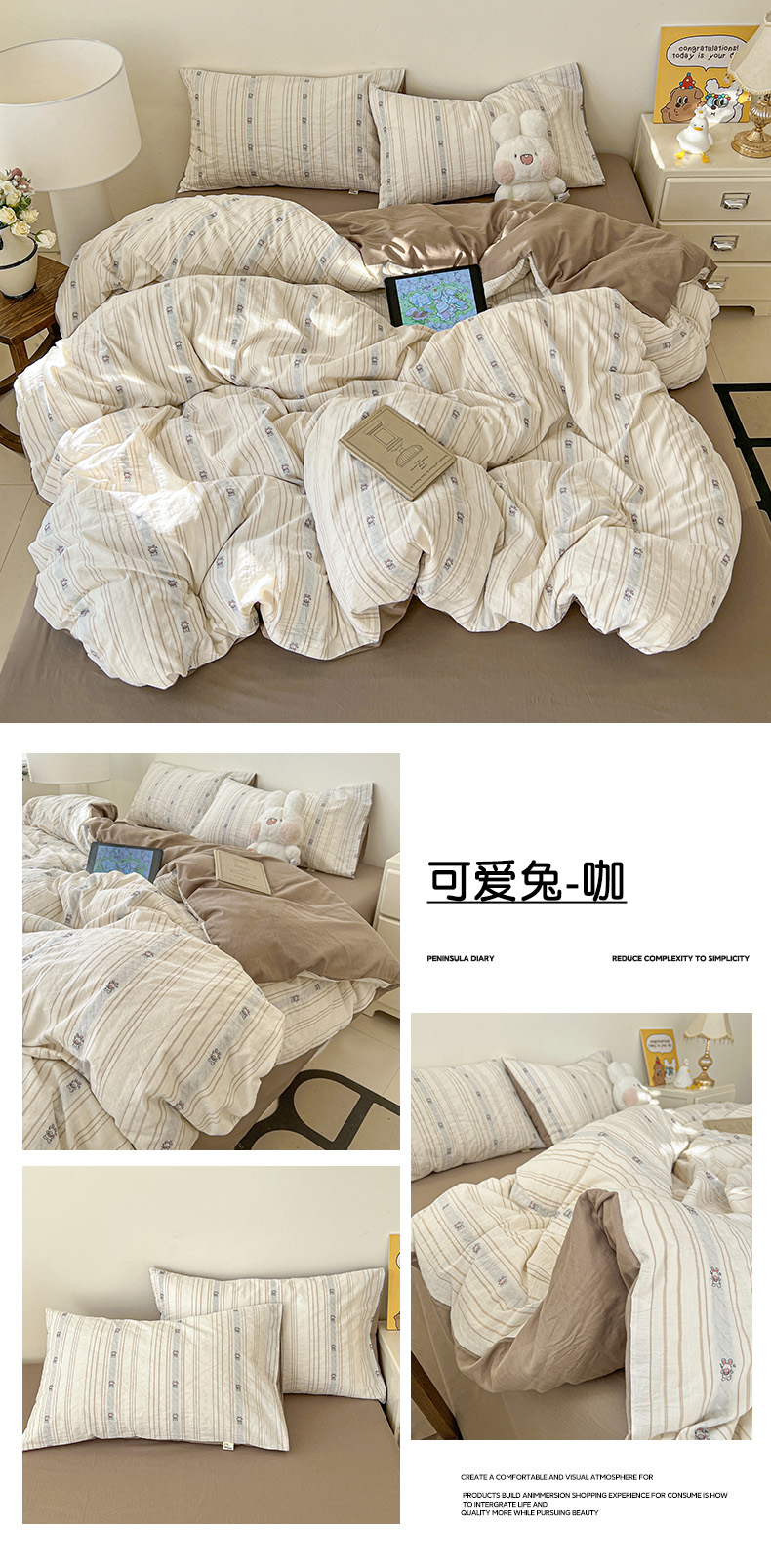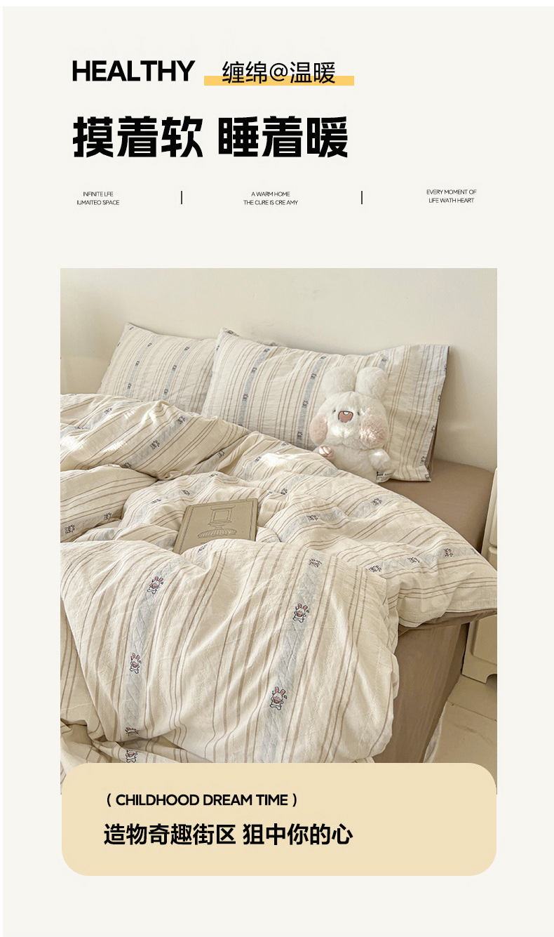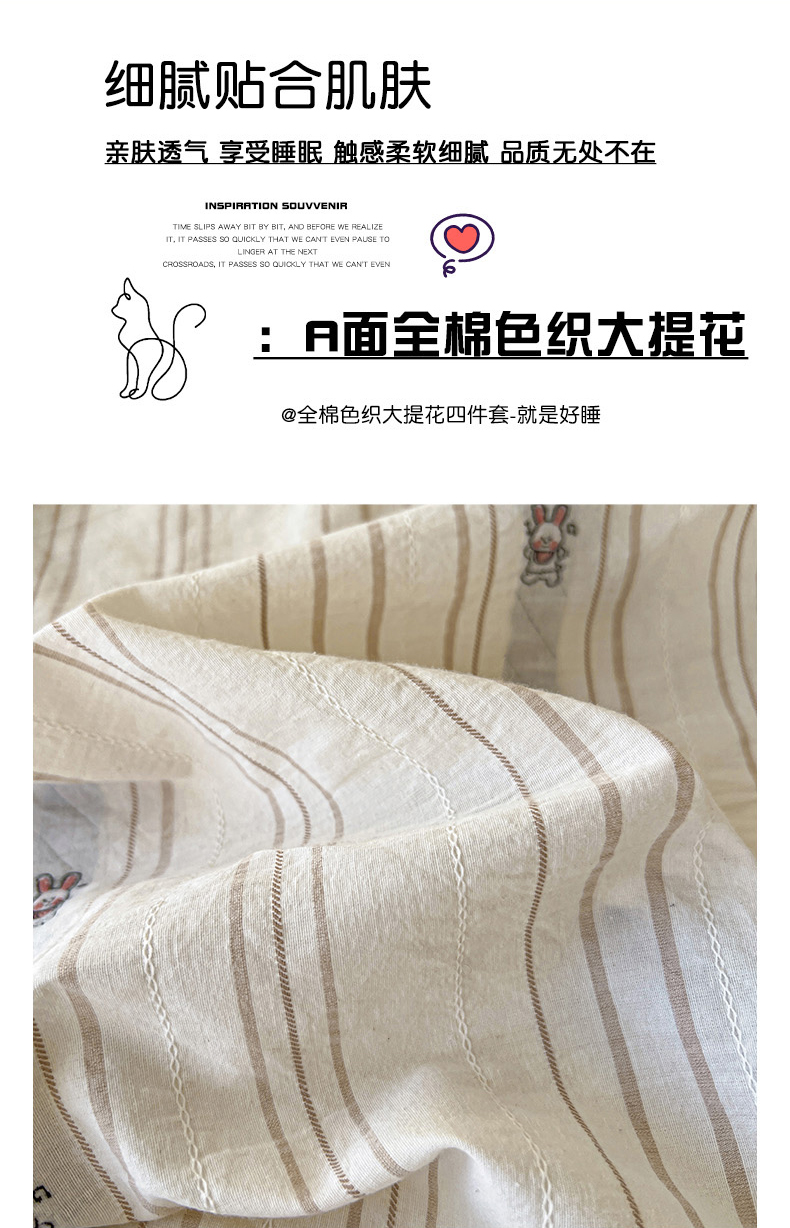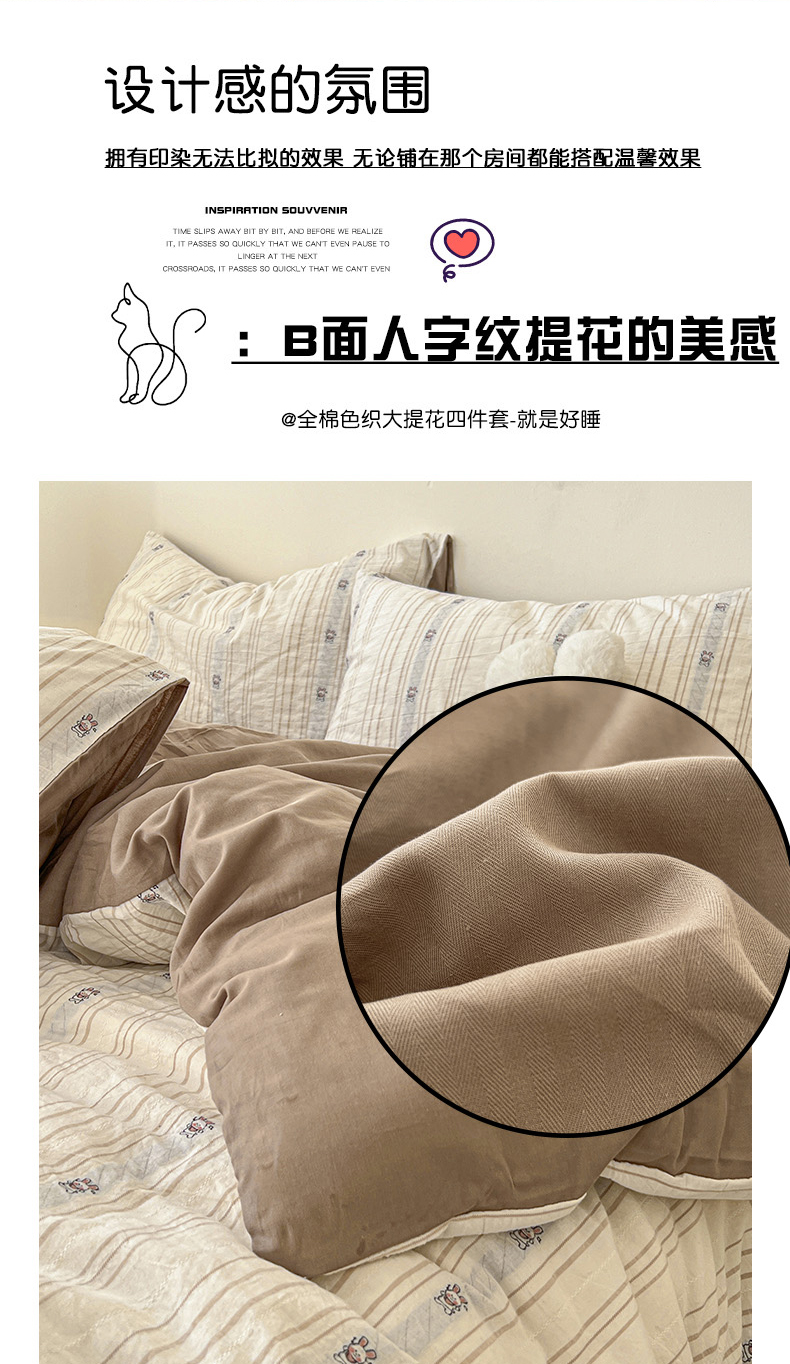 商品名称:爱丽丝 2026新款全棉剪花色织提花四件套 可爱兔-咖