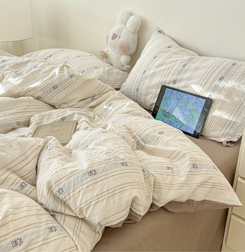 爱丽丝 2026新款全棉剪花色织提花四件套 可爱兔-咖