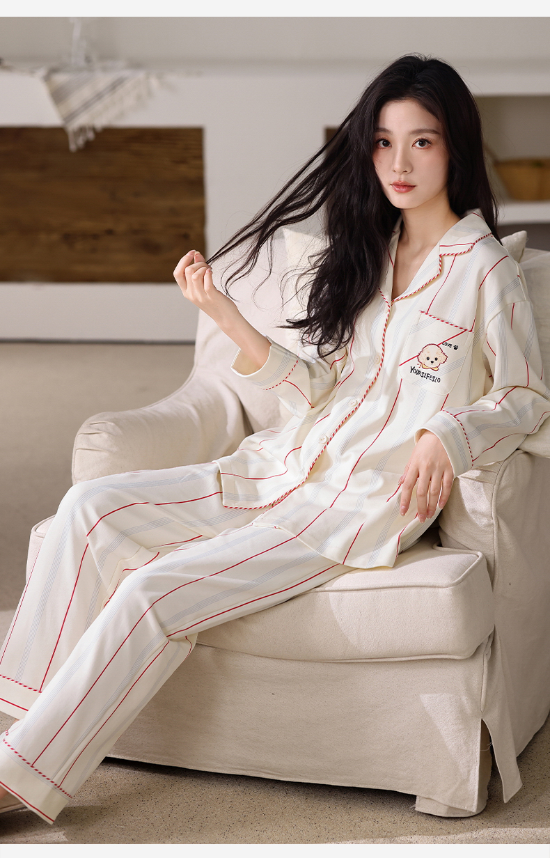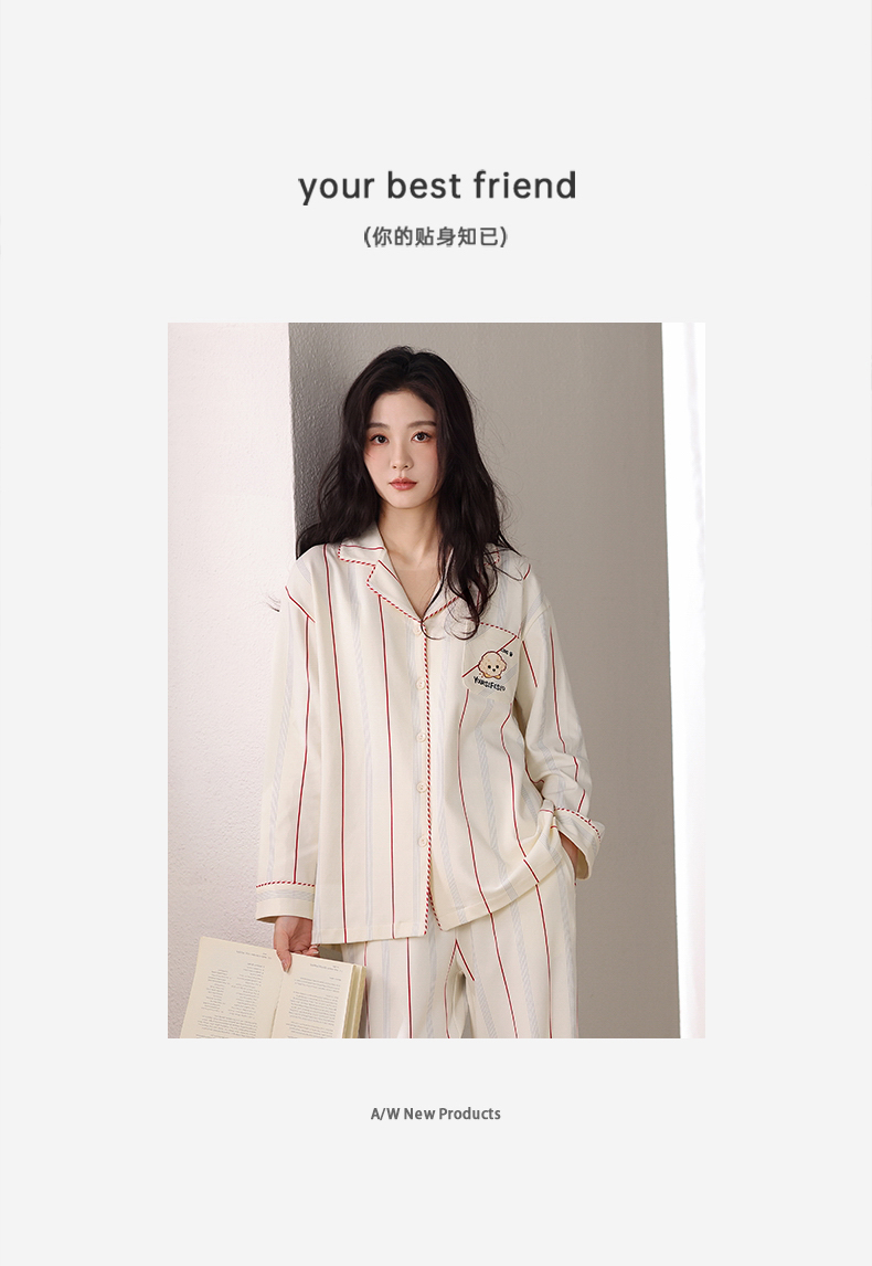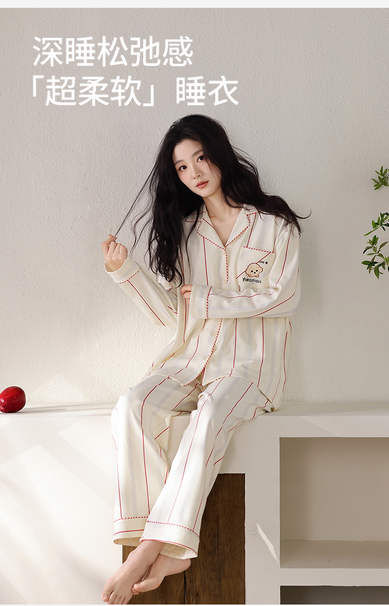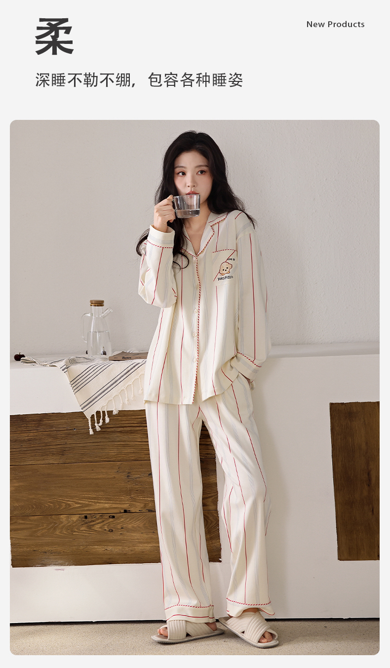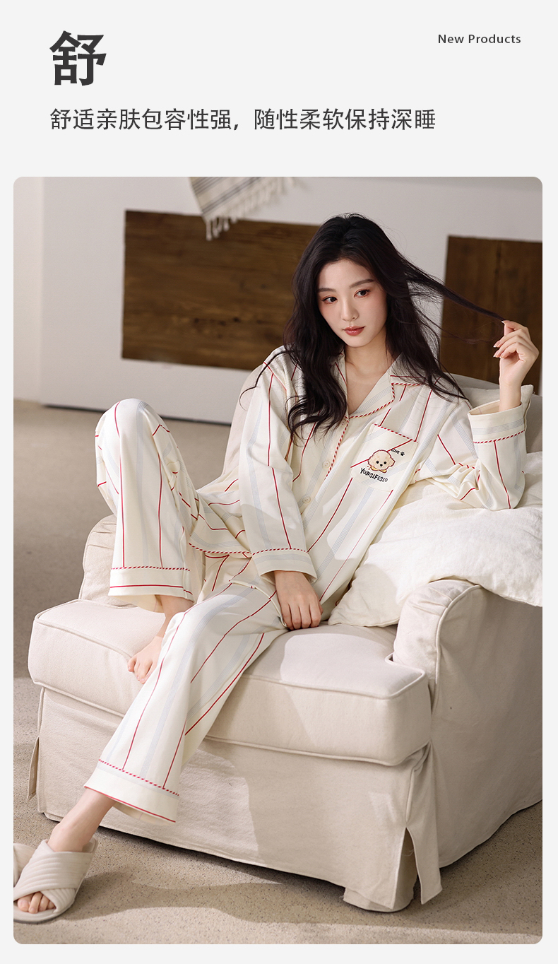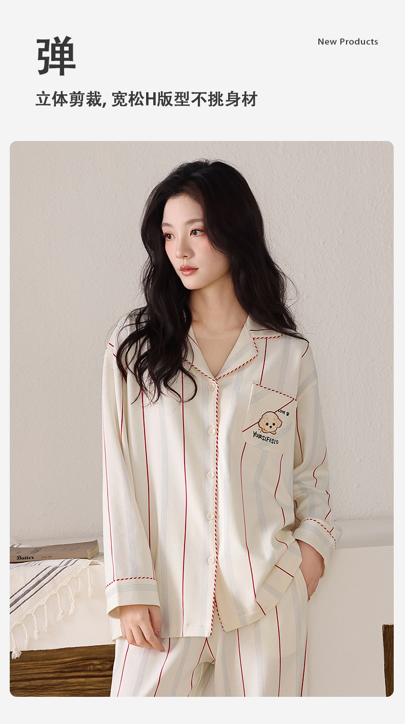 (总)洛兰沙家居馆 2026春季新款自带胸垫纯棉居家睡衣女长袖套头可爱家居服套装 第二批,31086,31087,31088,31089
