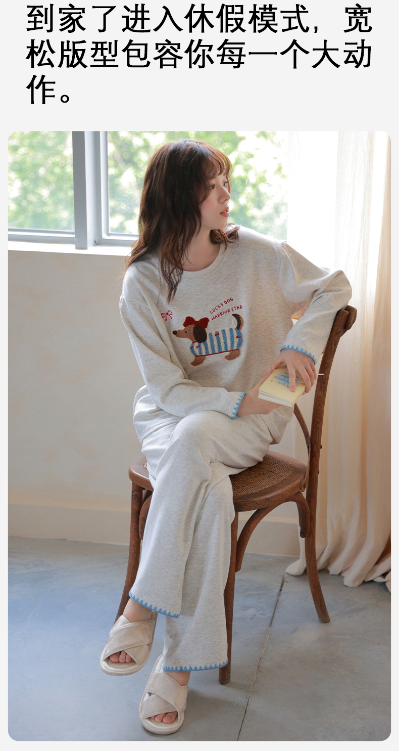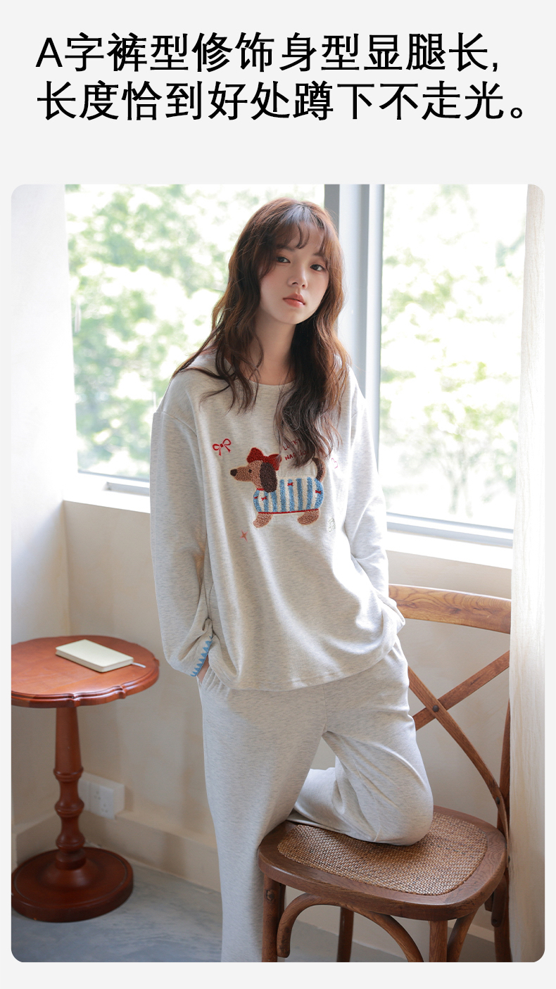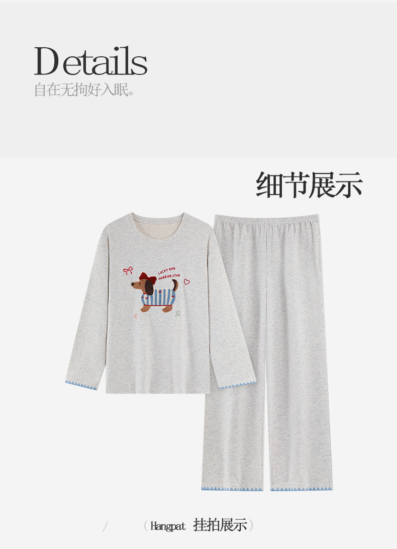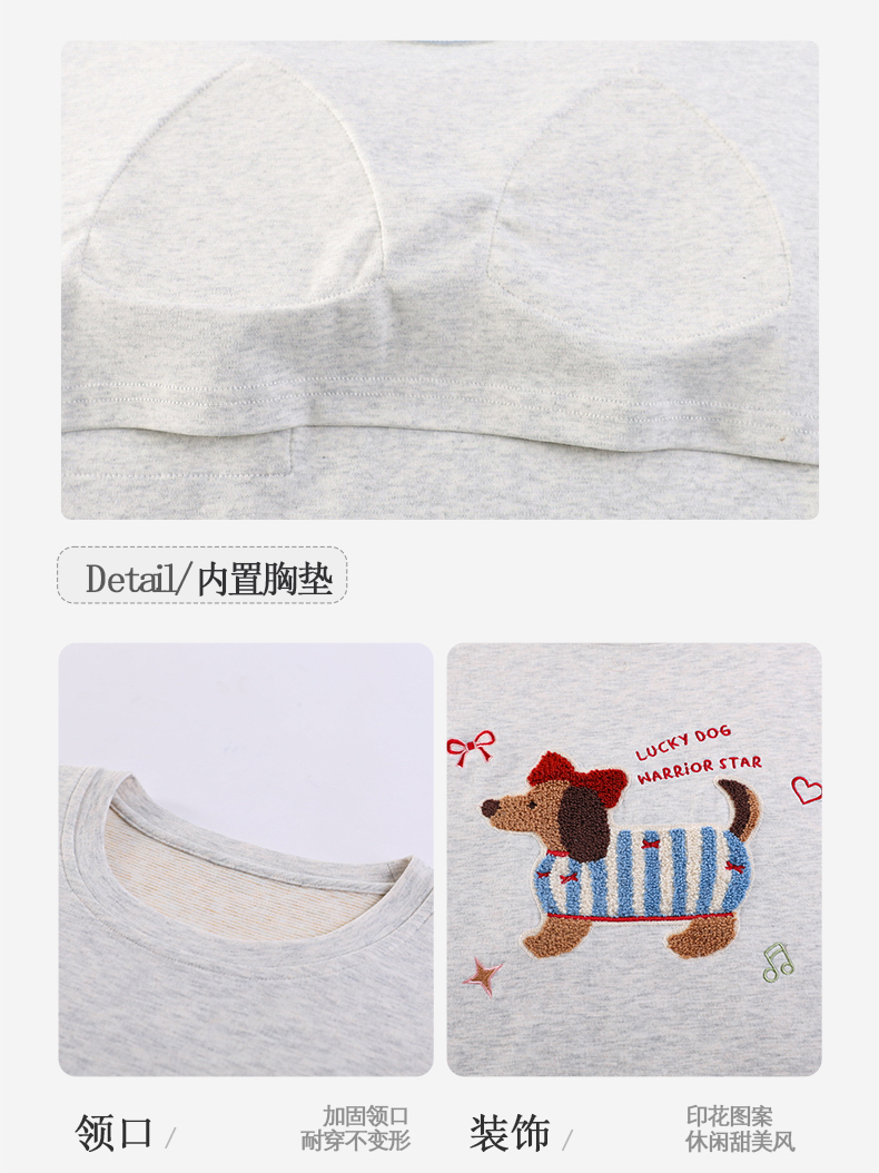 商品名称:洛兰沙家居馆 2026春季新款自带胸垫纯棉居家睡衣女长袖套头可爱家居服套装 第二批 31089