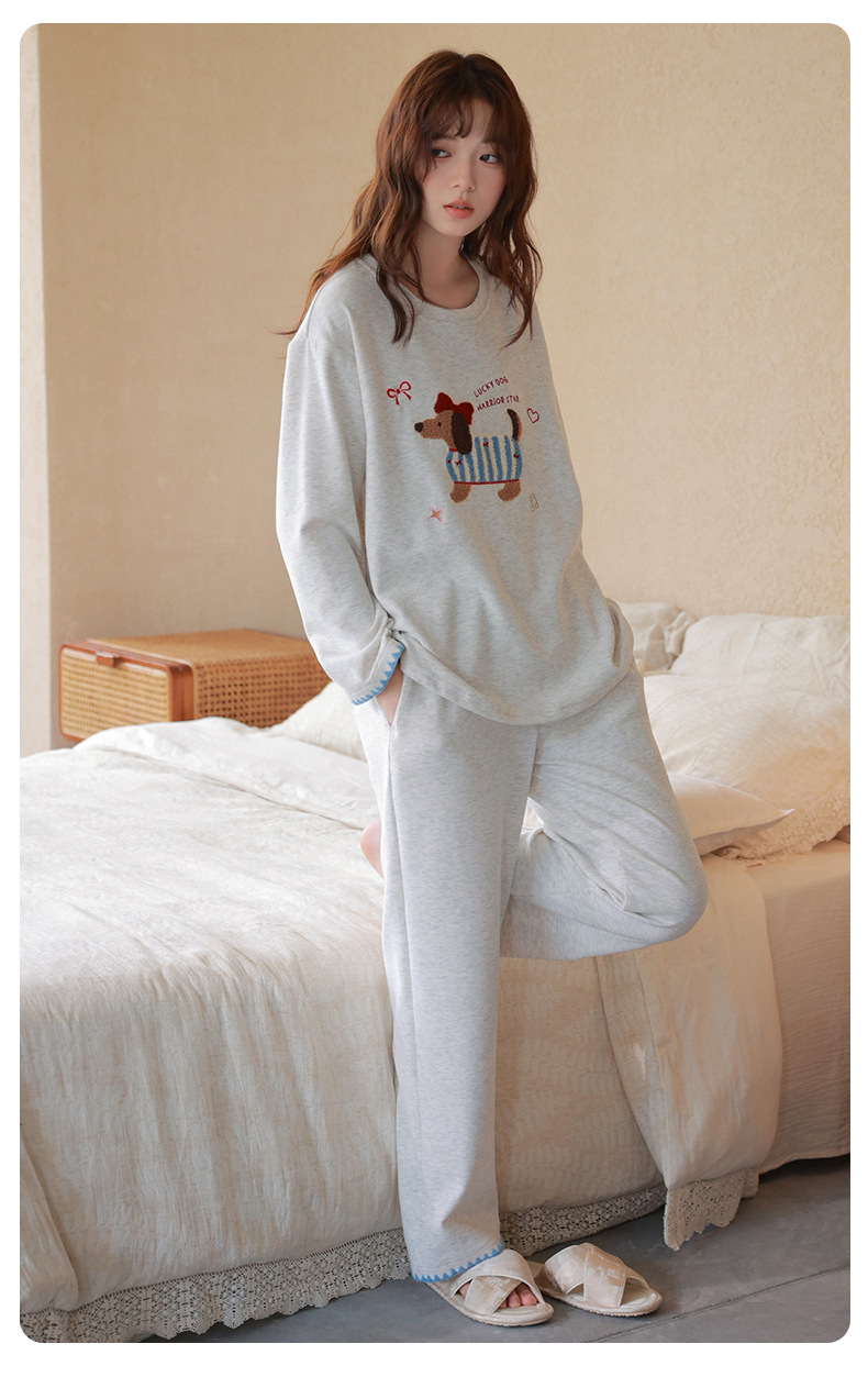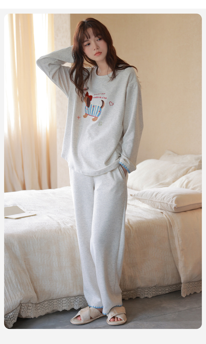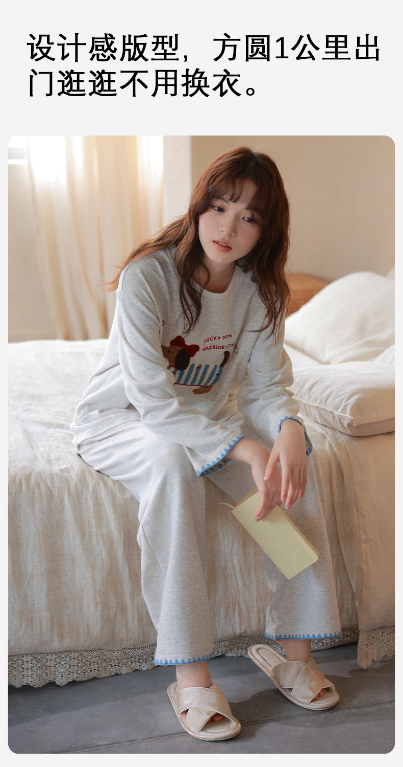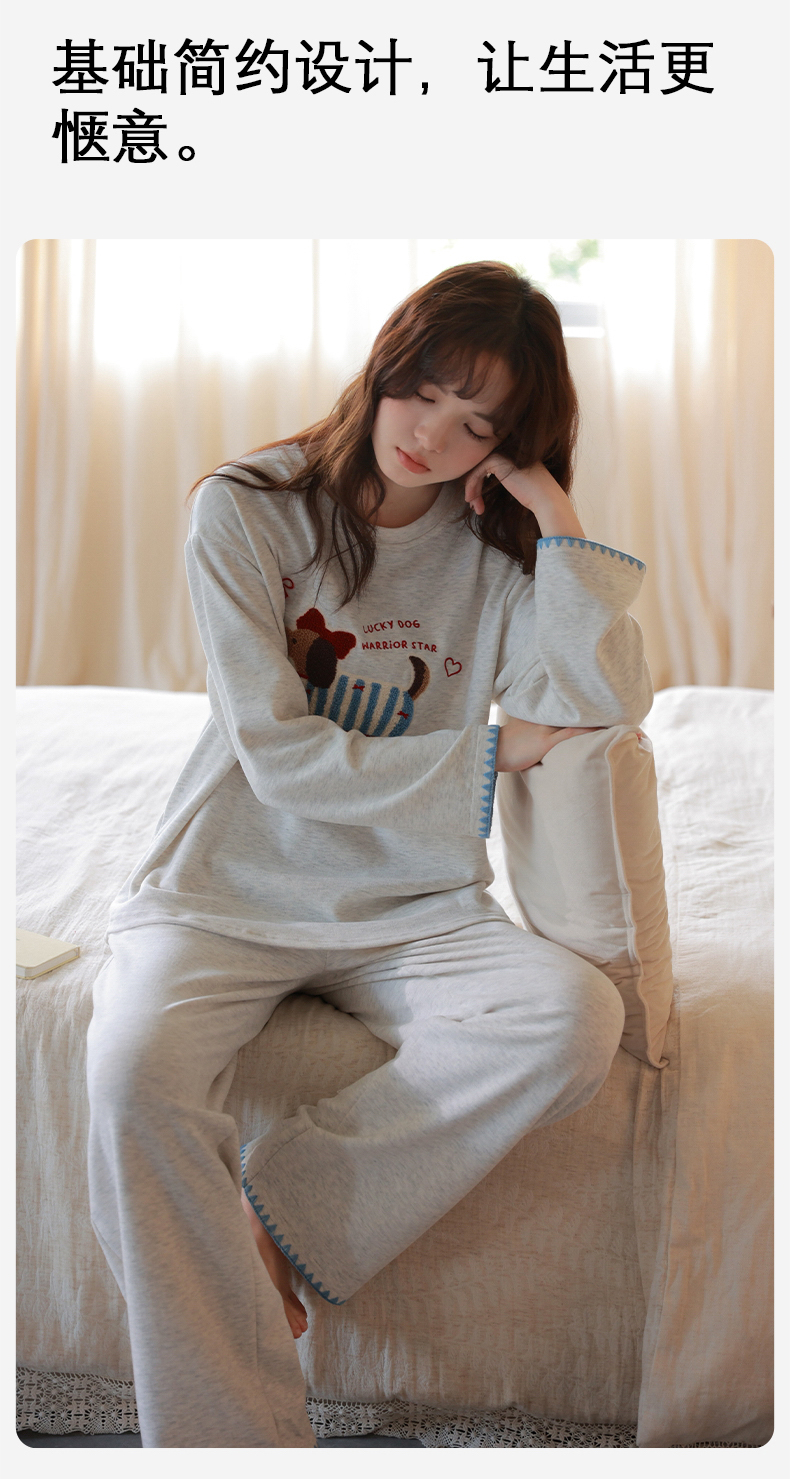 商品名称:洛兰沙家居馆 2026春季新款自带胸垫纯棉居家睡衣女长袖套头可爱家居服套装 第二批 31089