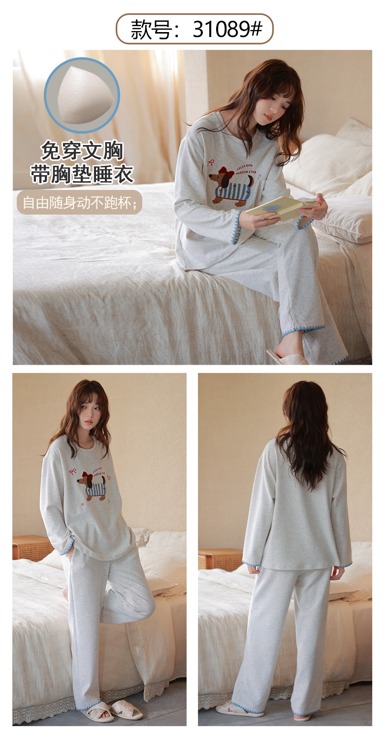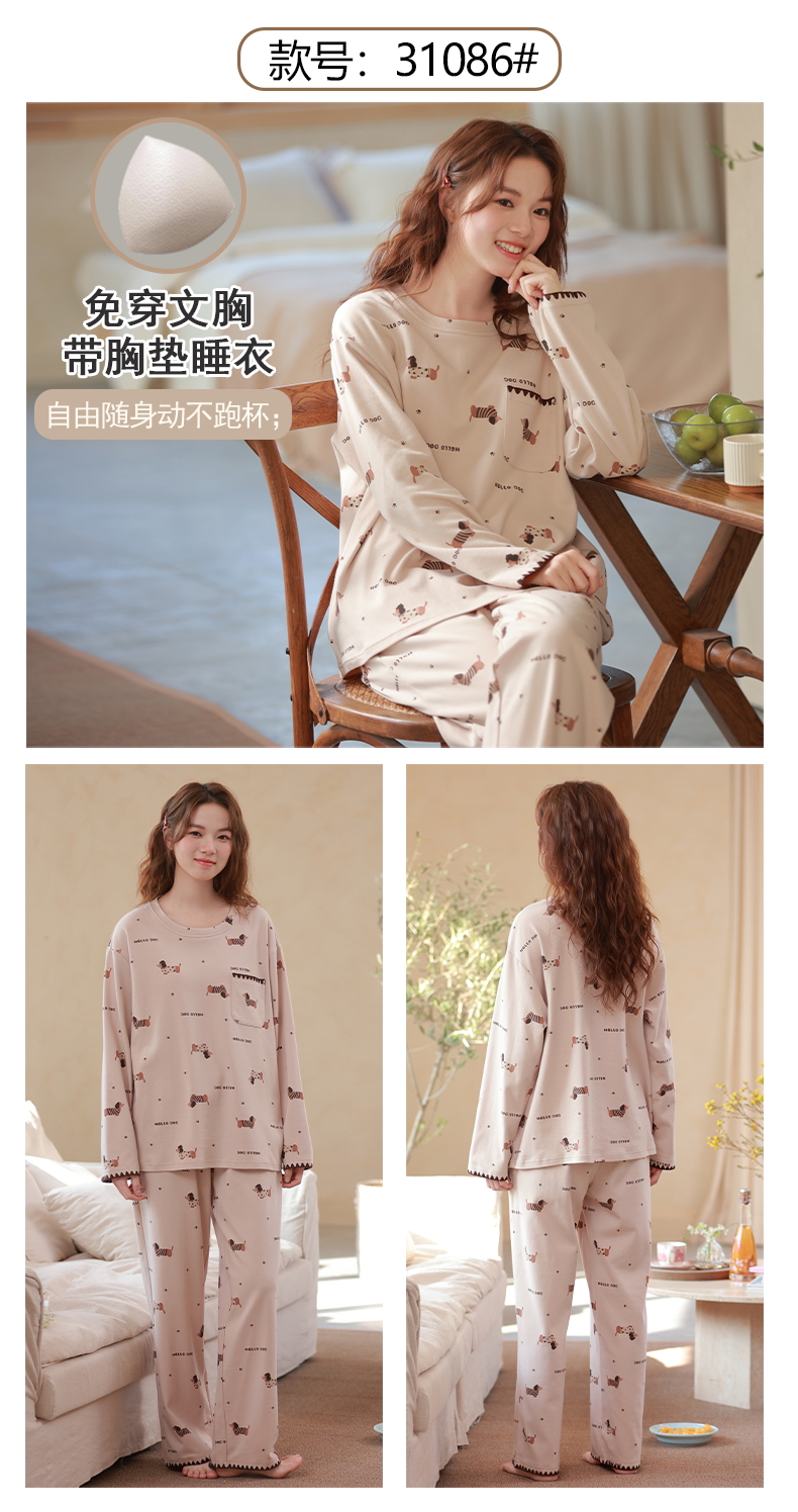 (总)洛兰沙家居馆 2026春季新款自带胸垫纯棉居家睡衣女长袖套头可爱家居服套装 第二批,31086,31087,31088,31089