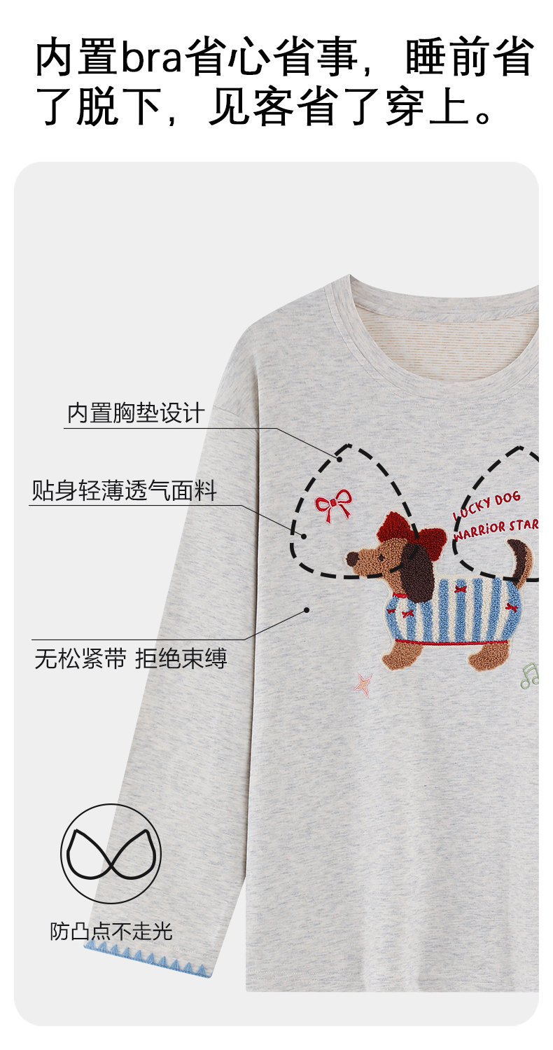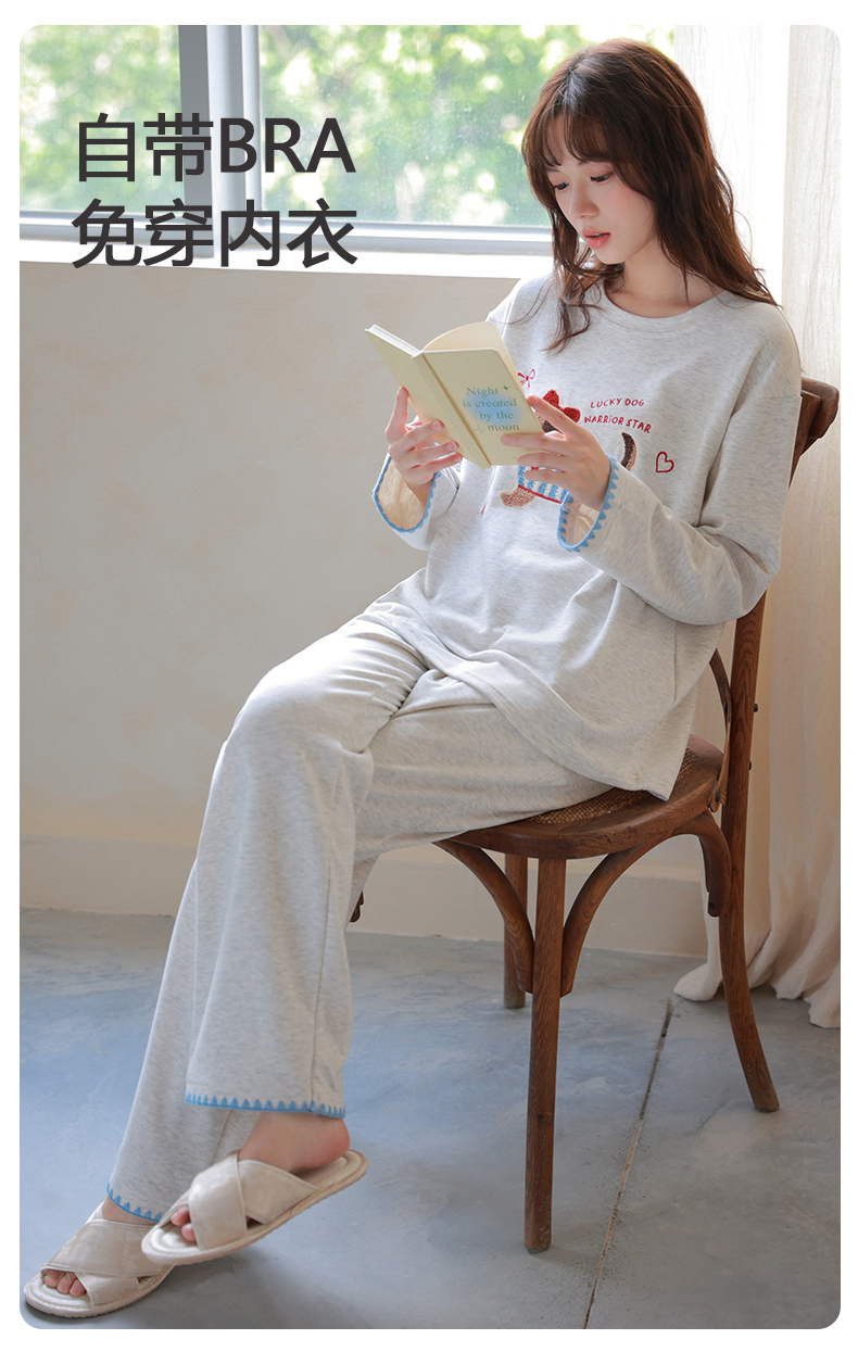 洛兰沙家居馆 2026春季新款自带胸垫纯棉居家睡衣女长袖套头可爱家居服套装 第二批 31089
