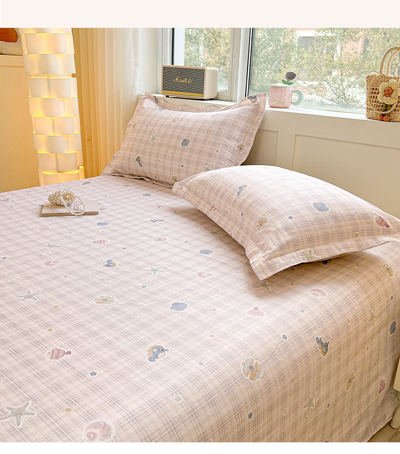 商品名称:名优家纺 2026新款13070全棉印花单床单 小粉螺