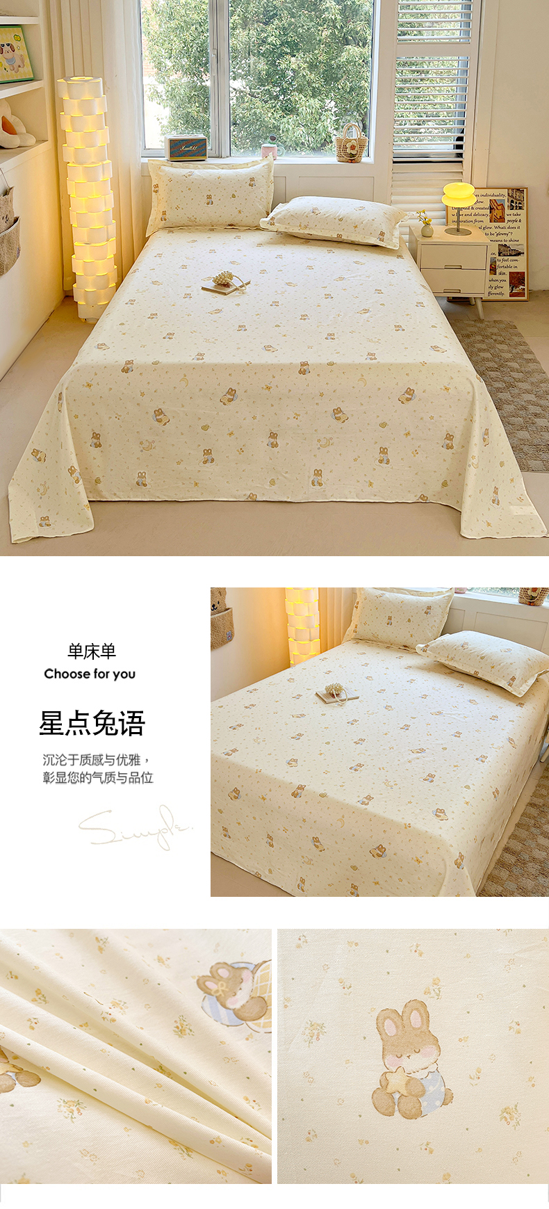 (总)名优家纺 2026新款12868全棉小清新印花四件套单品系列-单床单,安妮日常,冰激凌派对,动物花园,几何飞船,困困腊肠狗,帽子比熊,西西莉亚,夏瑾,徐徐花开,谣谣玉穗