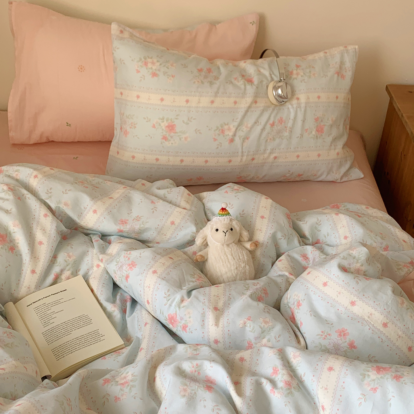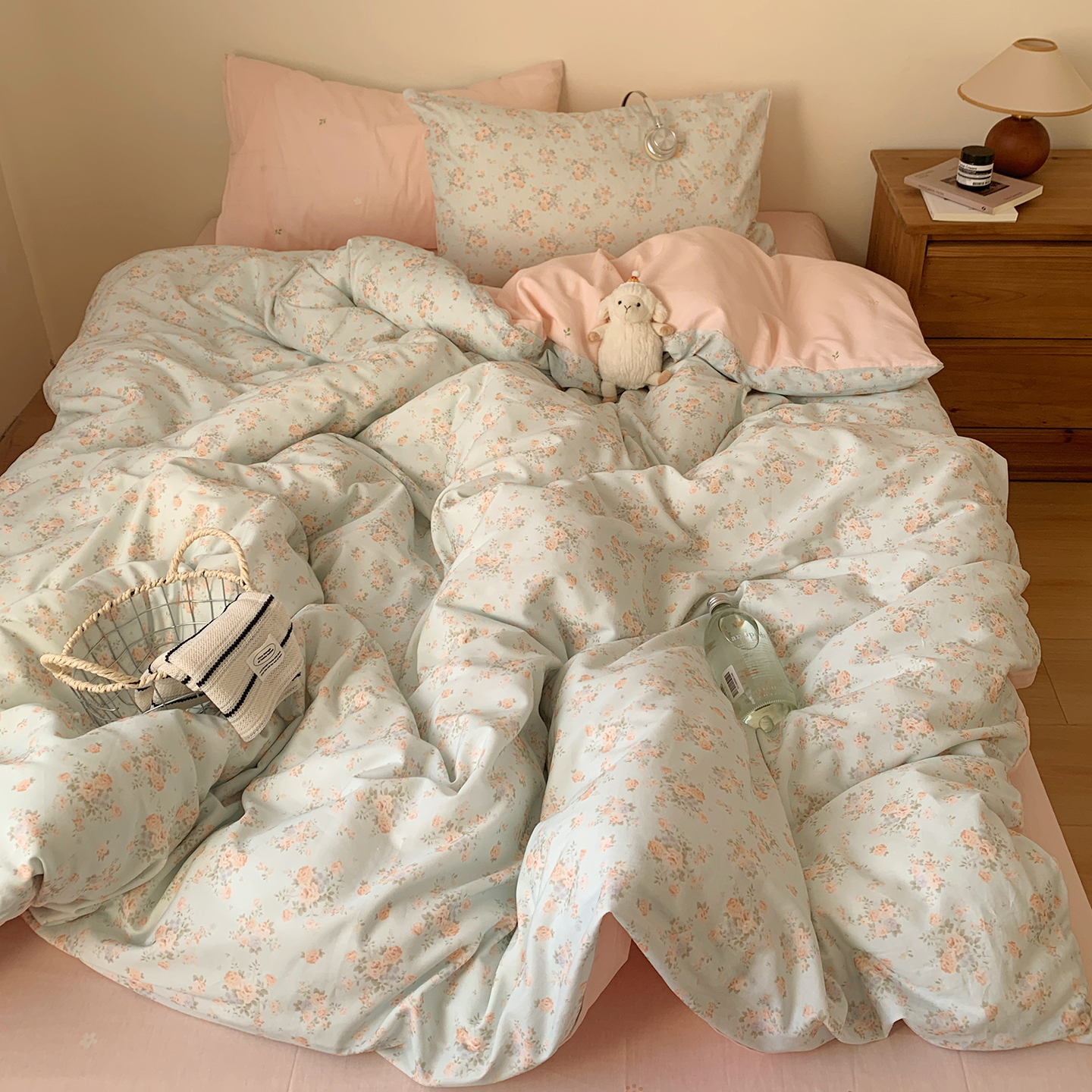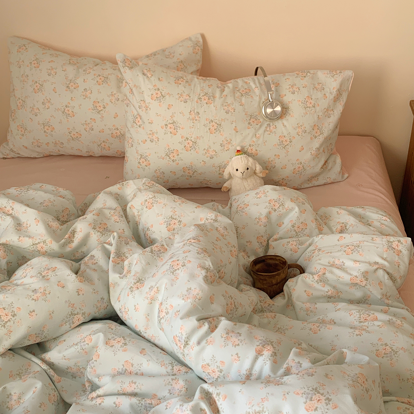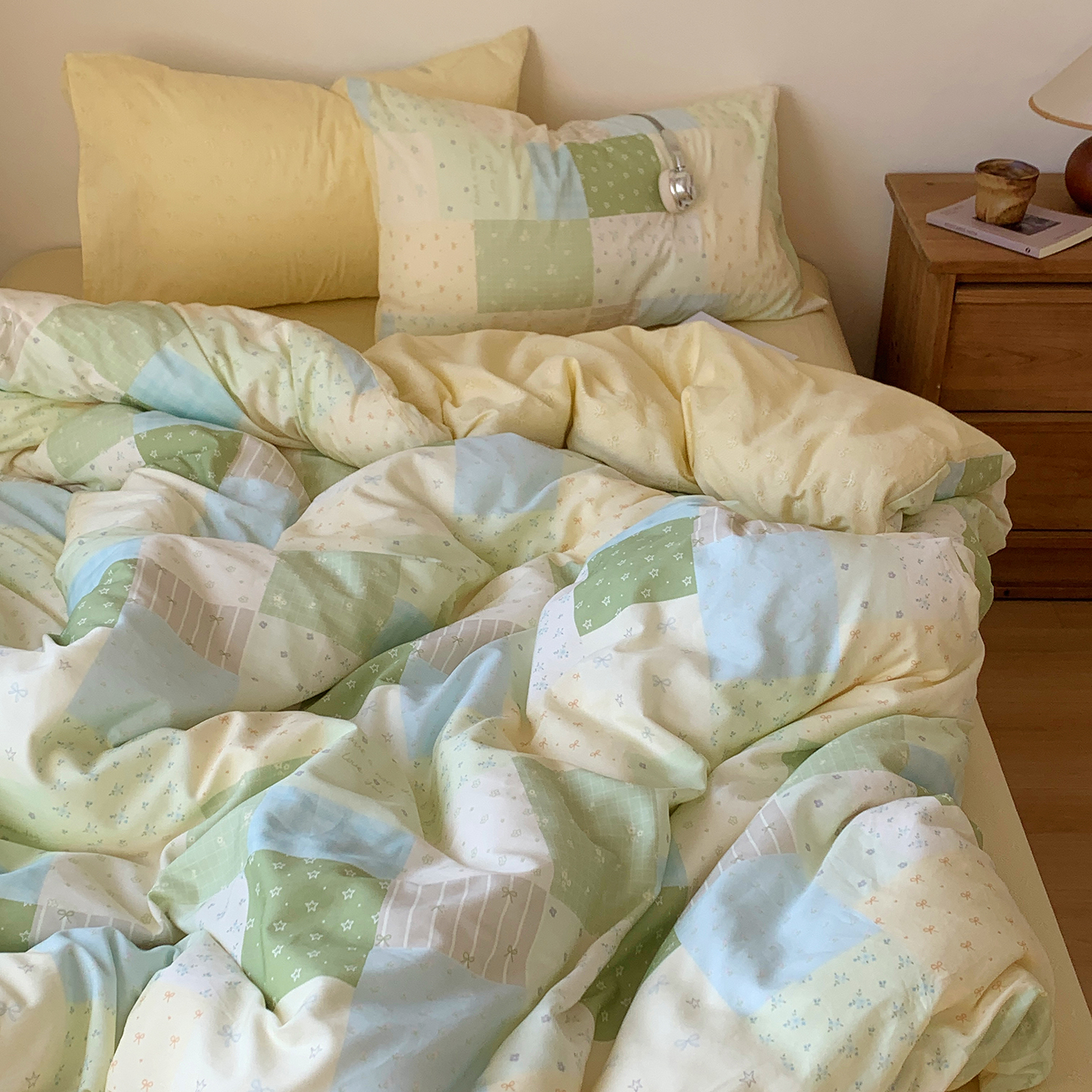 当前位置: 91家纺网 > 商品网购 > 床品套件 > 四件套 > 全棉普通四件套 > 桃喜 2026春夏新品全棉碎花三件套四件套-场景一 绿格拼布碎花(全棉)