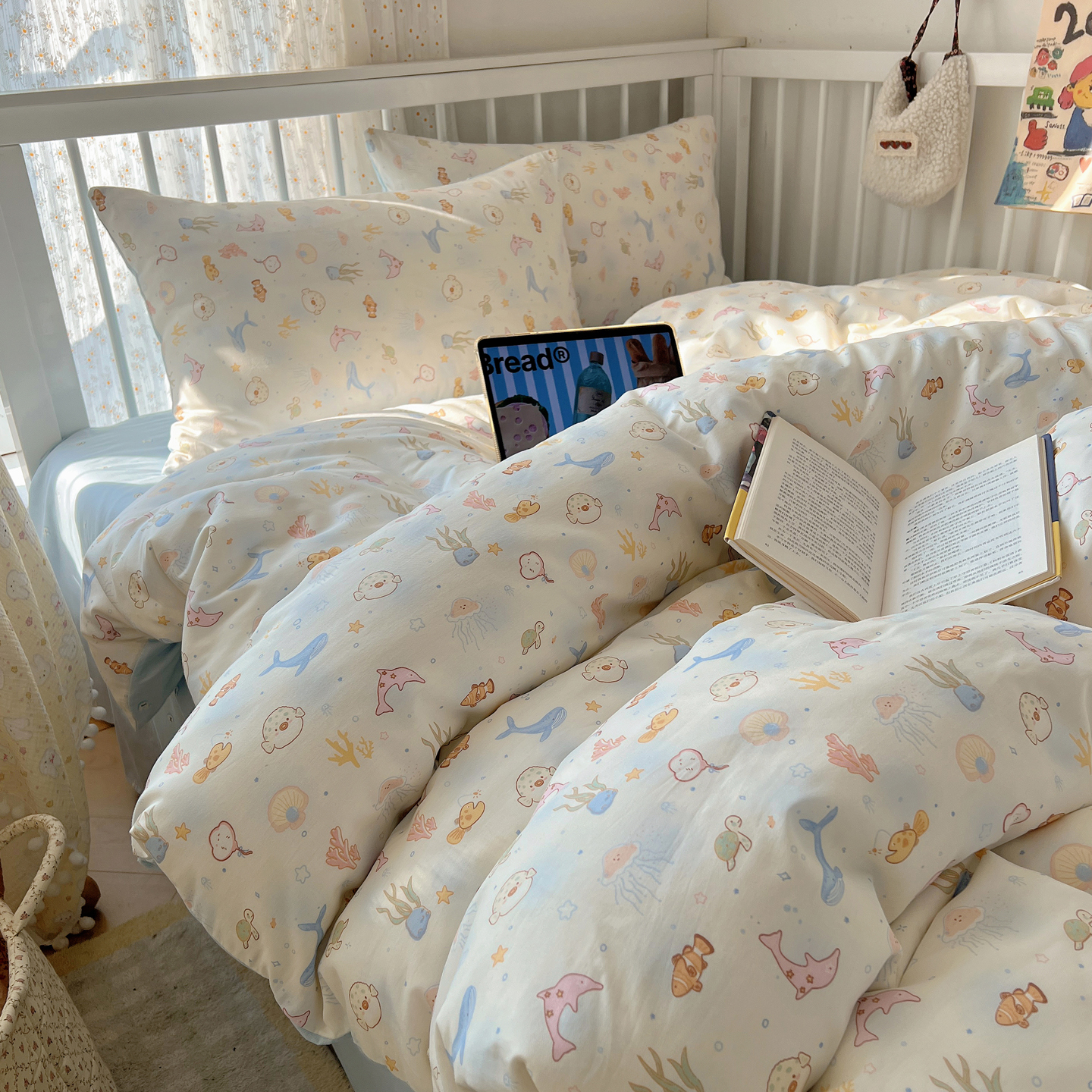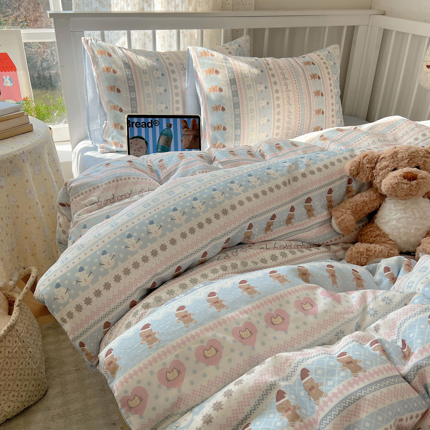 (总)桃喜 2026新款全棉混搭卡通印花学生三件套四件套,费尔岛蝴蝶结小狗,费尔岛小熊,可爱动物团,可爱小兔子,星星猫咪