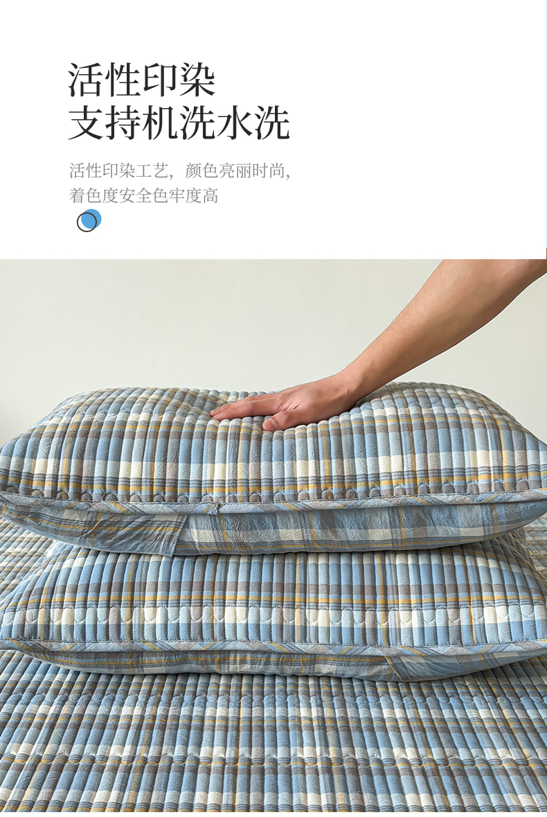 (总)居眠 2026新款全棉色织水洗棉格子夹棉棉花枕套,夹棉款-摩登蓝卡条,夹棉款-摩登绿卡条