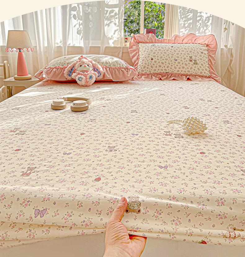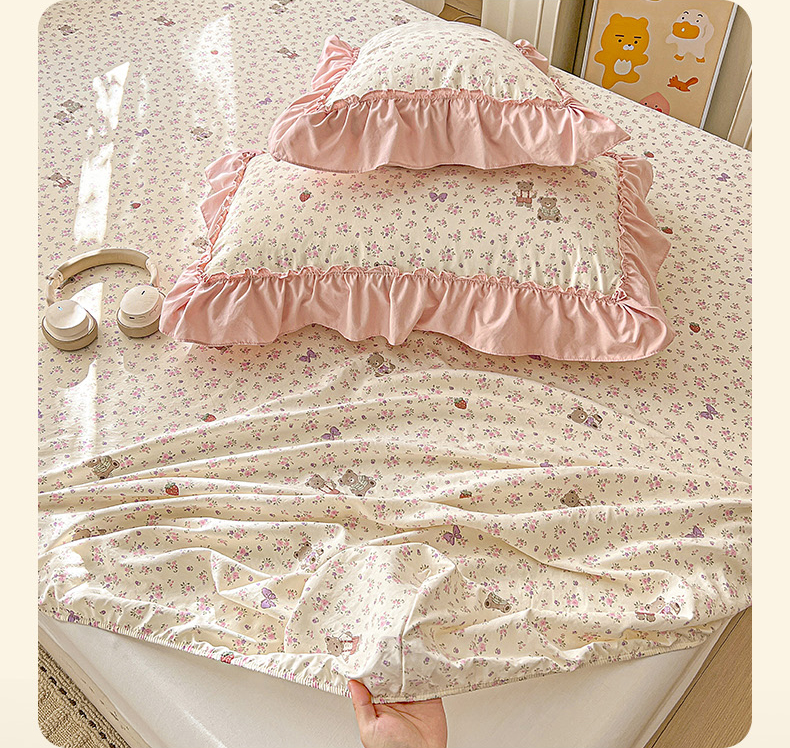 (总)富米莱(原臻工厂) 2026春夏新款仿棉A类韩系大花边床盖床裙四件套,小杏芙,波点汽球,悠悠花香,烟火气星辰,小花蓝,小花粉,晚樱落海,山樱漫岛,玫瑰庄园,花影,耳机猫猫,动物世界,七彩点点,艾利花园