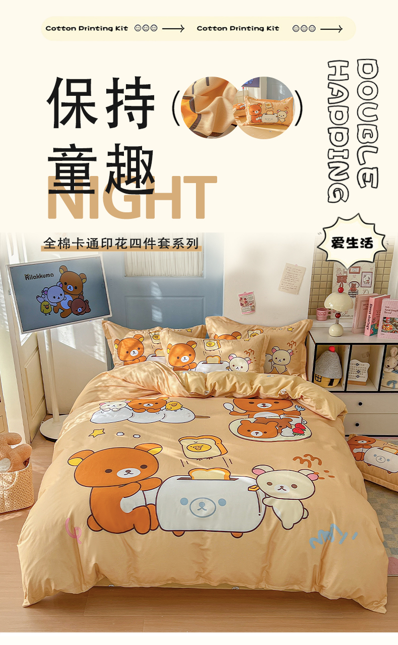 当前位置: 91家纺网 > 商品网购 > 床品套件 > 四件套 > 全棉普通四件套 > 浩诚 2026新款全棉卡通四件套第4批(陆续更新) 美食小熊