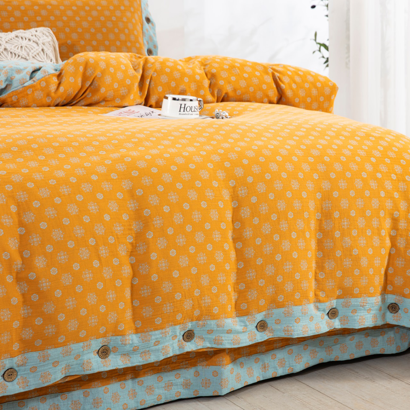 (总)双层纱家居 2024新款双层纱四件套,百福蓝,梦百合,水墨米黄,水墨米兰,西雅图蓝
