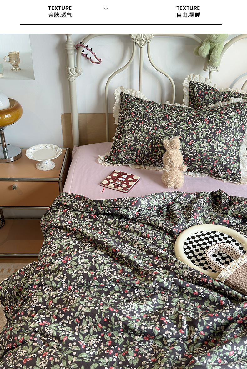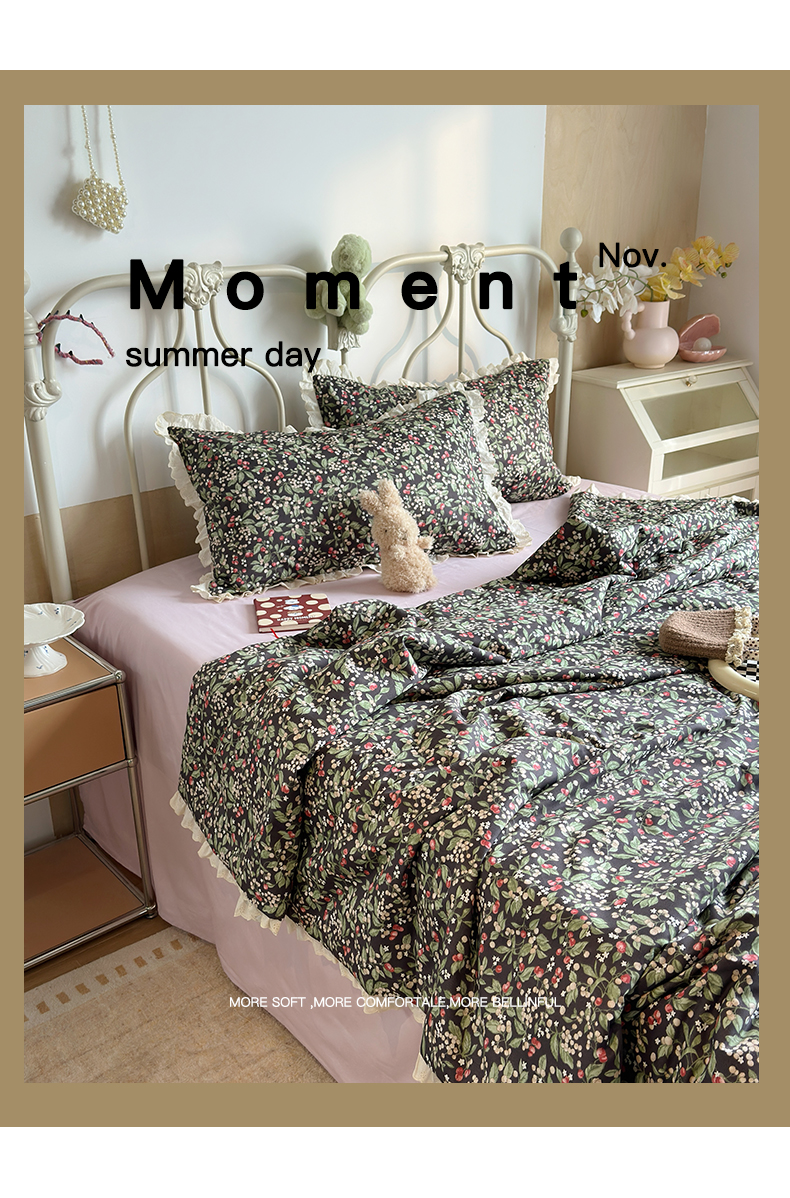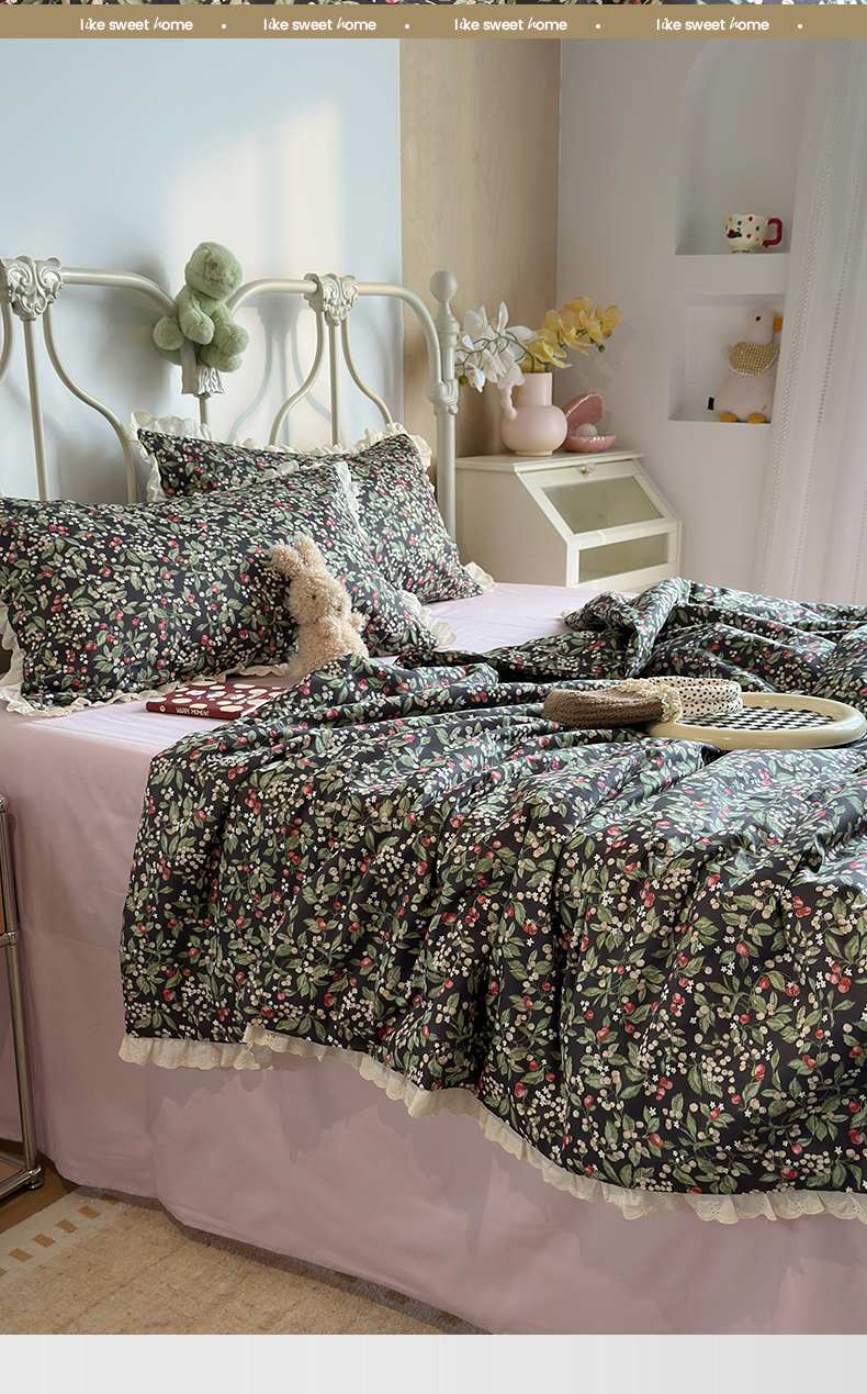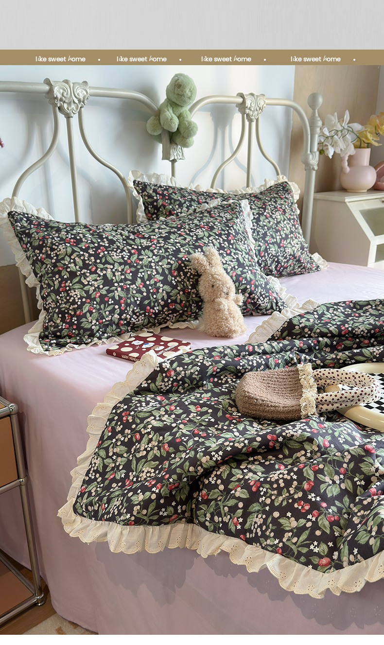 当前位置: 91家纺网 > 商品网购 > 床品套件 > 四件套 > 夏被四件套 > 绫韵家纺 2026新品夏季韩式浪漫小花边空调被夏被薄被子套件系列 长相思