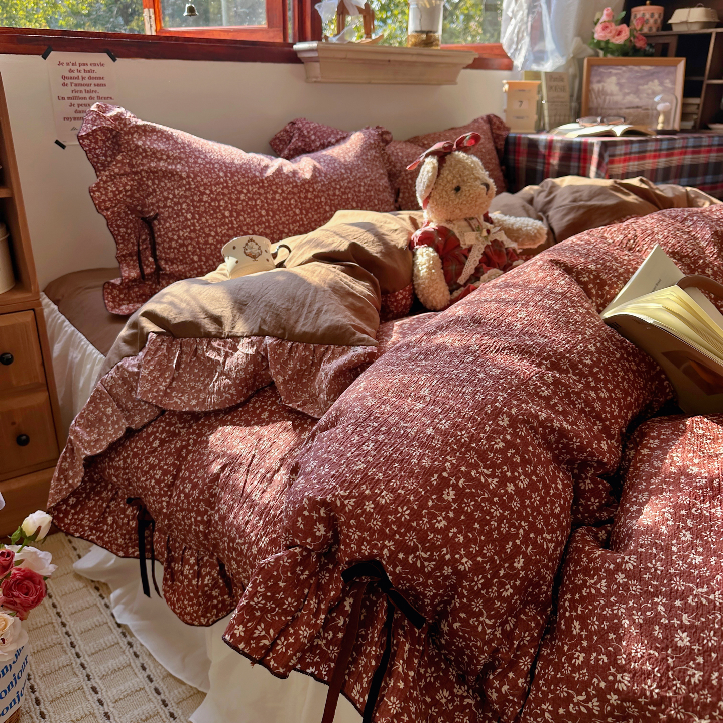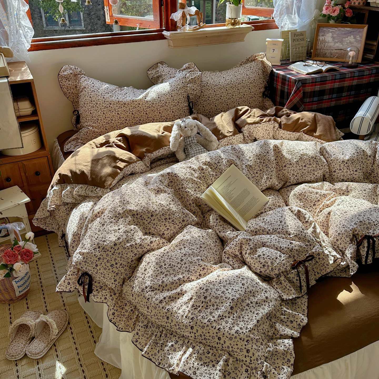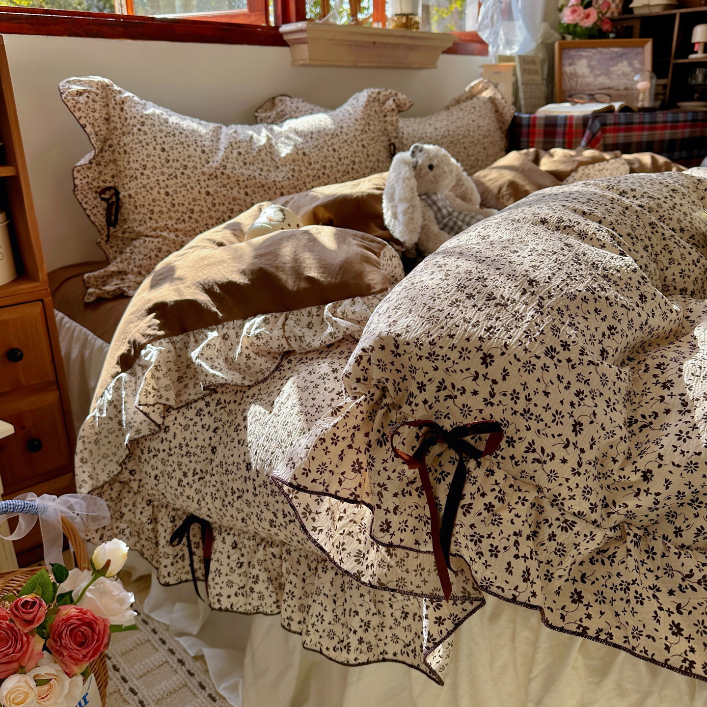当前位置: 91家纺网 > 商品网购 > 床品套件 > 四件套 > 其它四件套 > 阿曼达 2026新款日韩系复古印花小碎花花边蝴蝶结系列四件套 蝴蝶结-林间序-驼