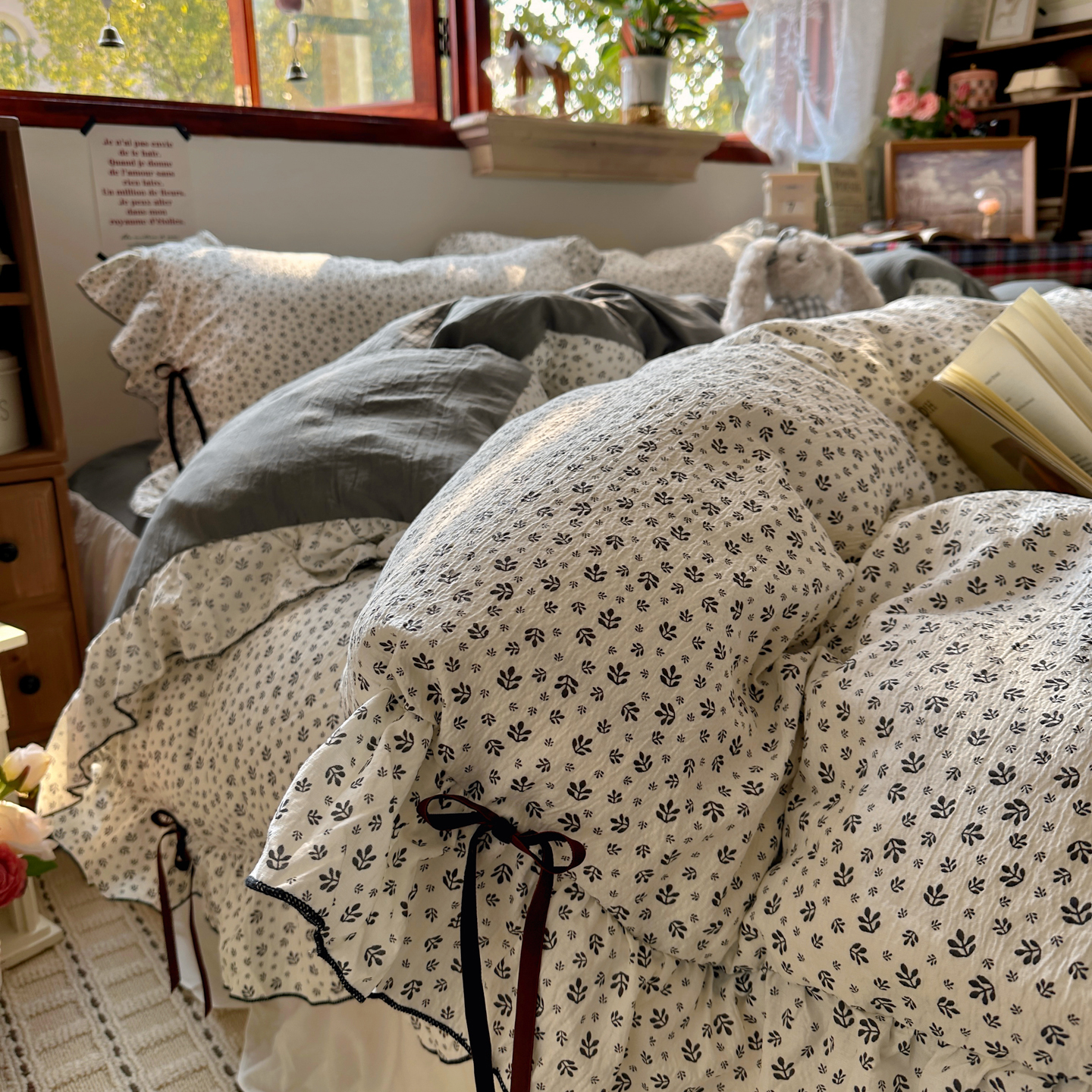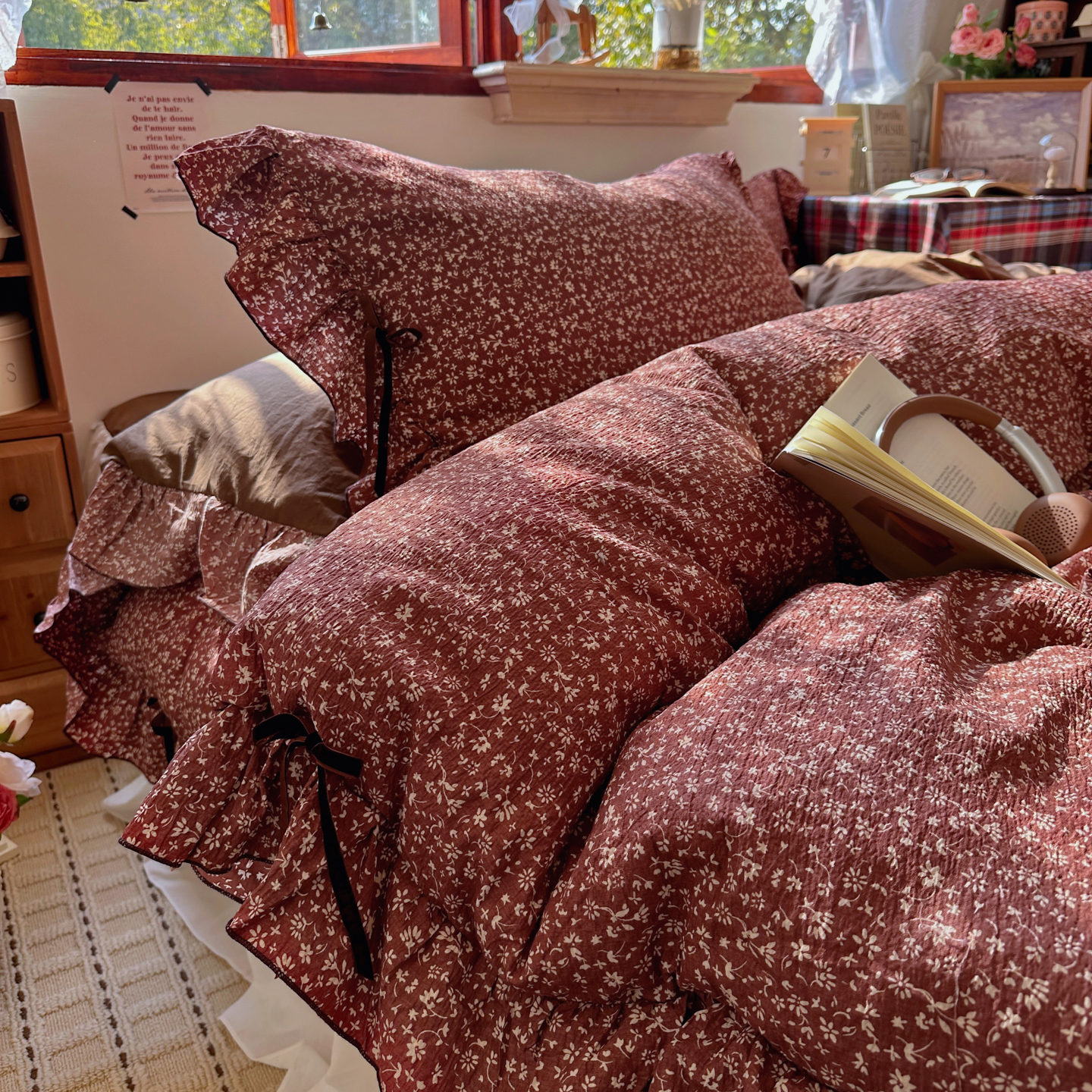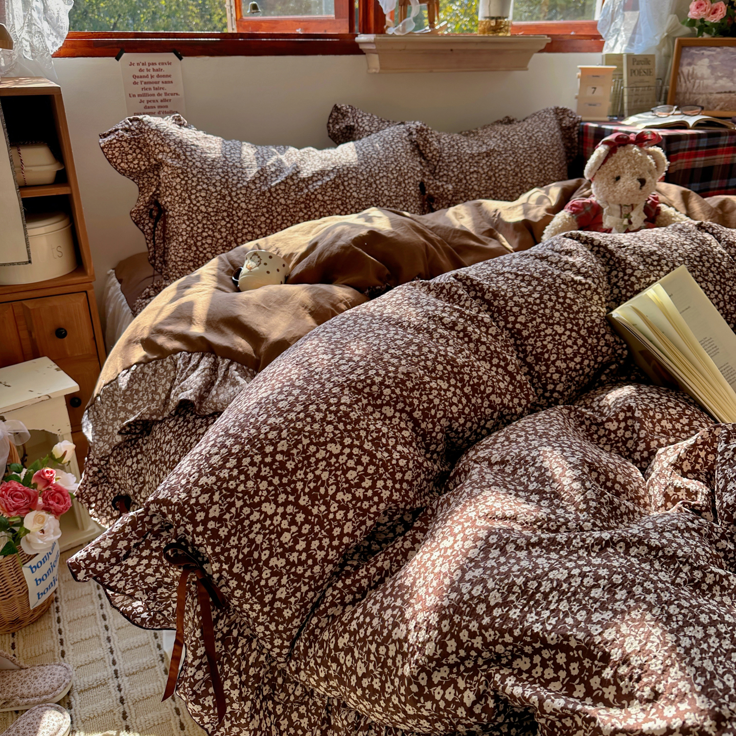 当前位置: 91家纺网 > 商品网购 > 床品套件 > 四件套 > 其它四件套 > 阿曼达 2026新款日韩系复古印花小碎花花边蝴蝶结系列四件套 蝴蝶结-林间序-驼