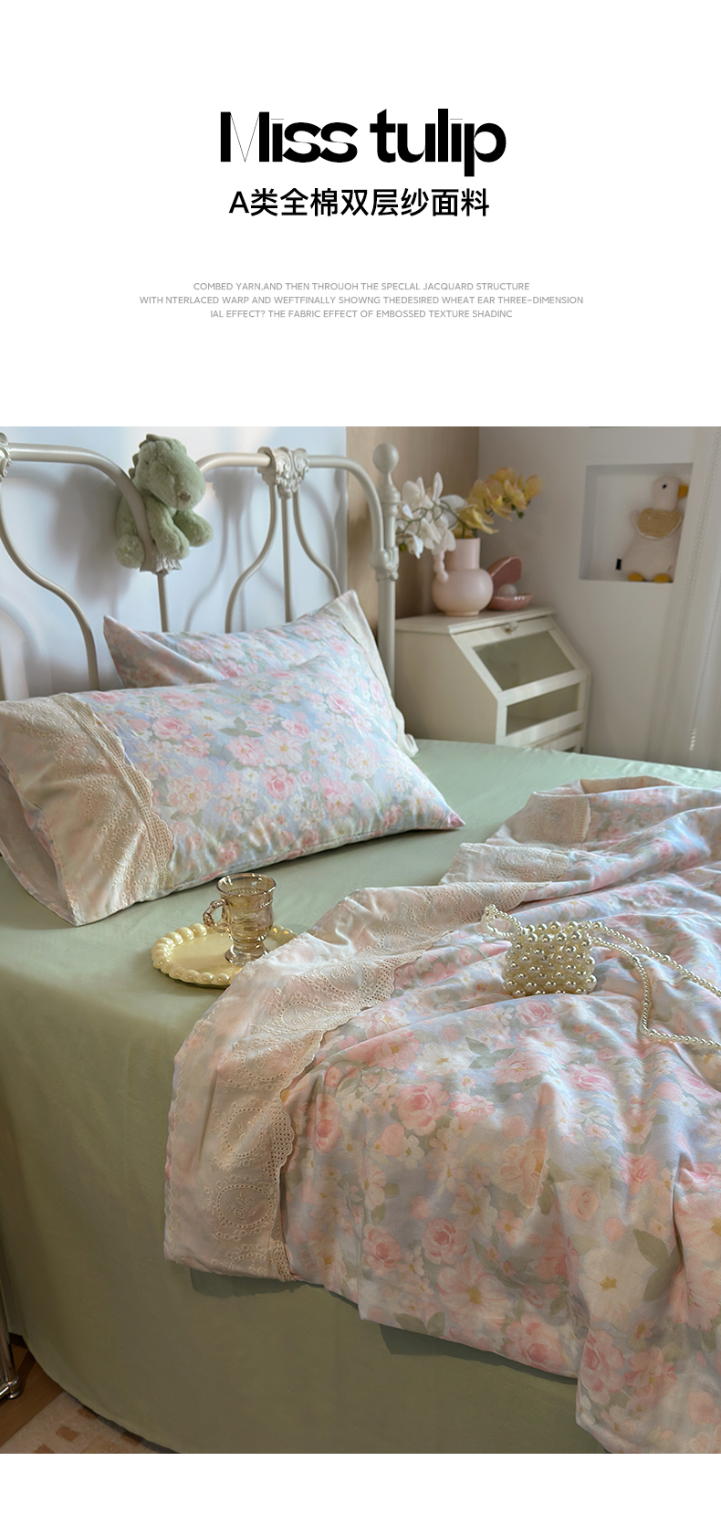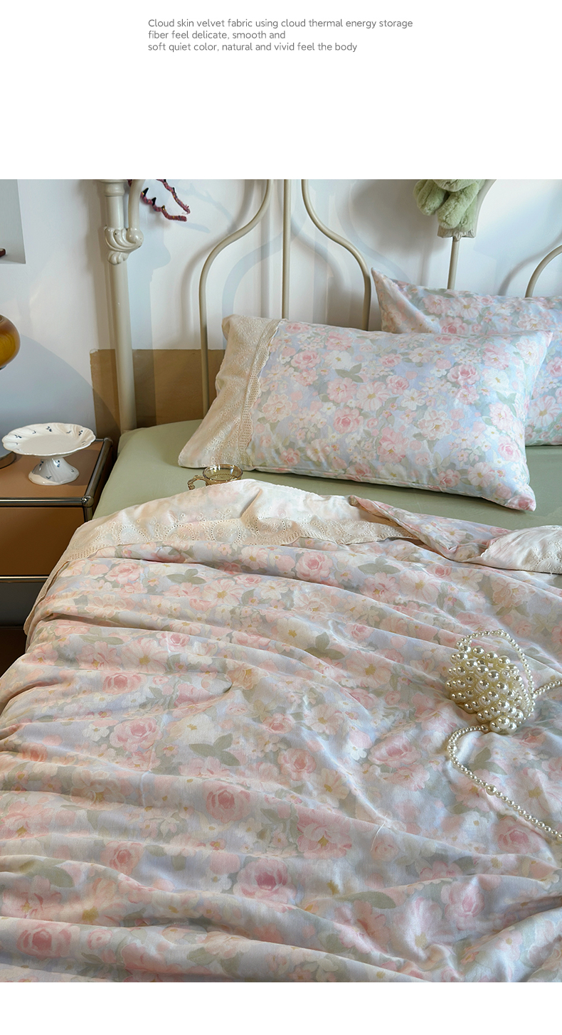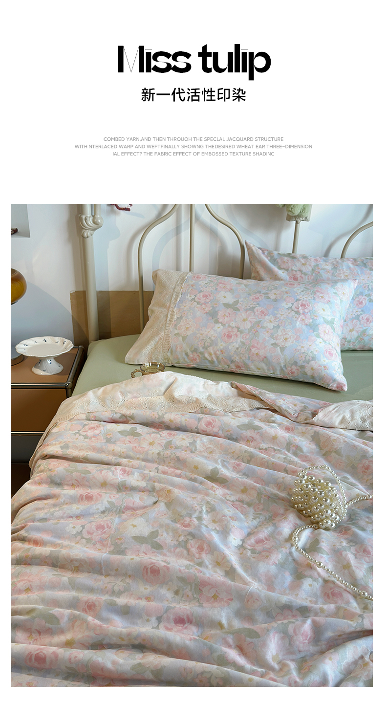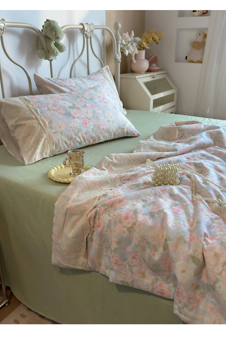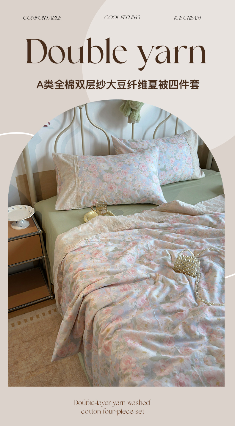 当前位置: 91家纺网 > 商品网购 > 床品套件 > 四件套 > 夏被四件套 > 绫韵家纺 2026夏季新品A类全棉双层纱法式大花边夏被四件套 国色芳华·粉