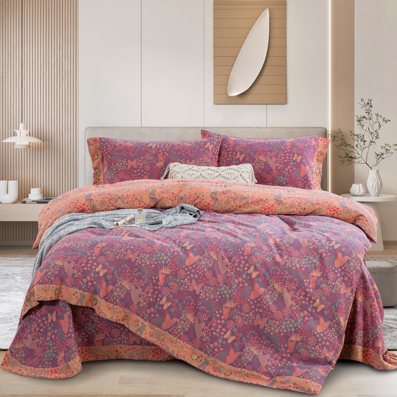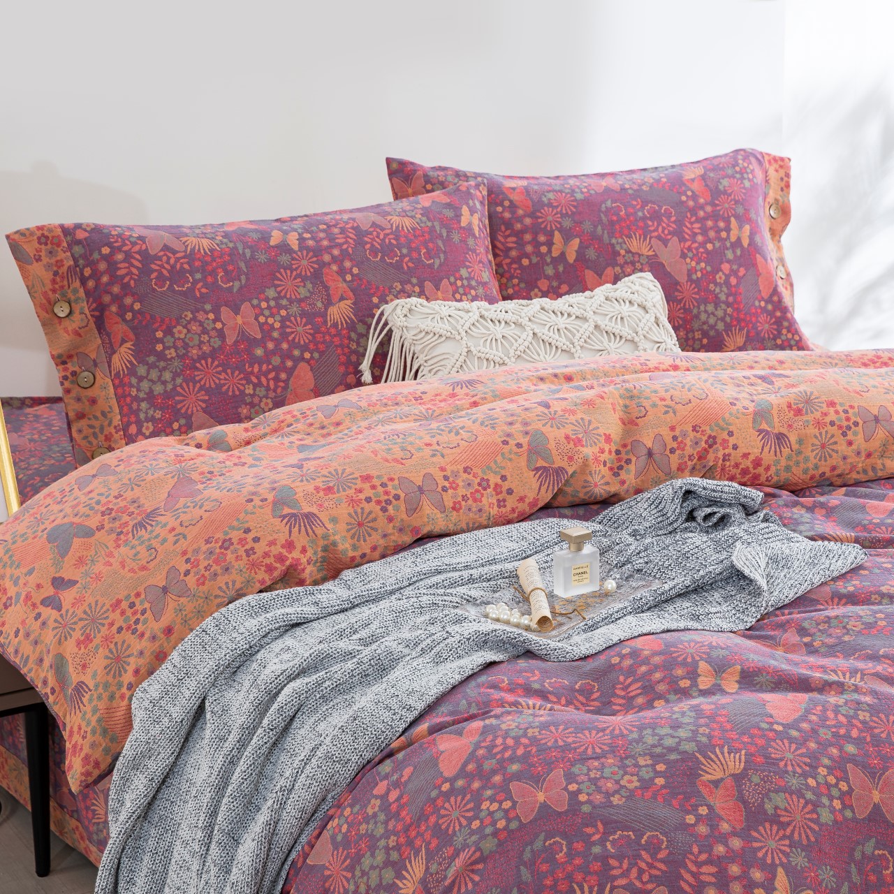 (总)双层纱家居 2026新款全棉纯棉色织提花双层纱纽扣款四件套-蝶恋花