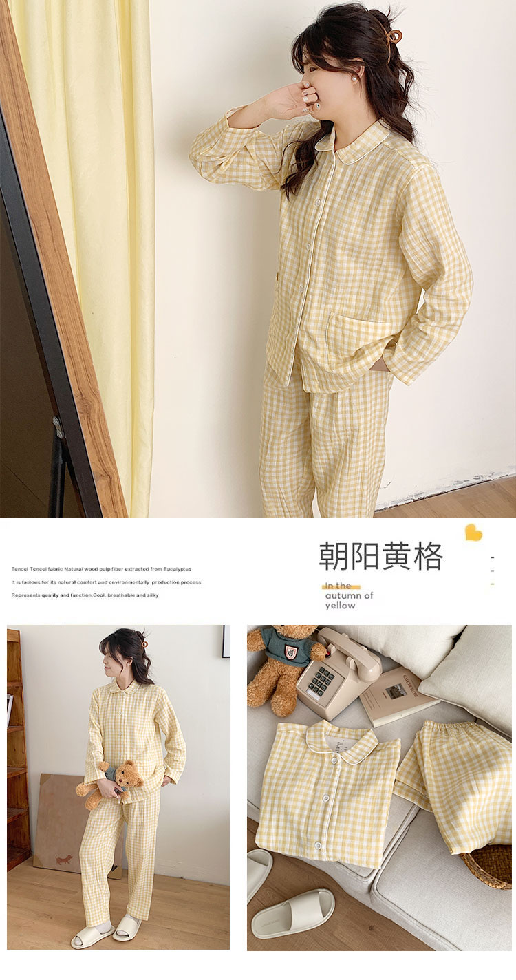 (总)双层纱家居 2026新款全棉色织提花糖果双层纱睡衣,灰小格,女款-粉小格,女款-黄小格,女款-绿小格,组合图(仅供展示不可下单)