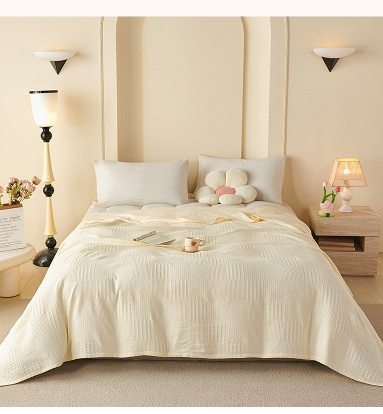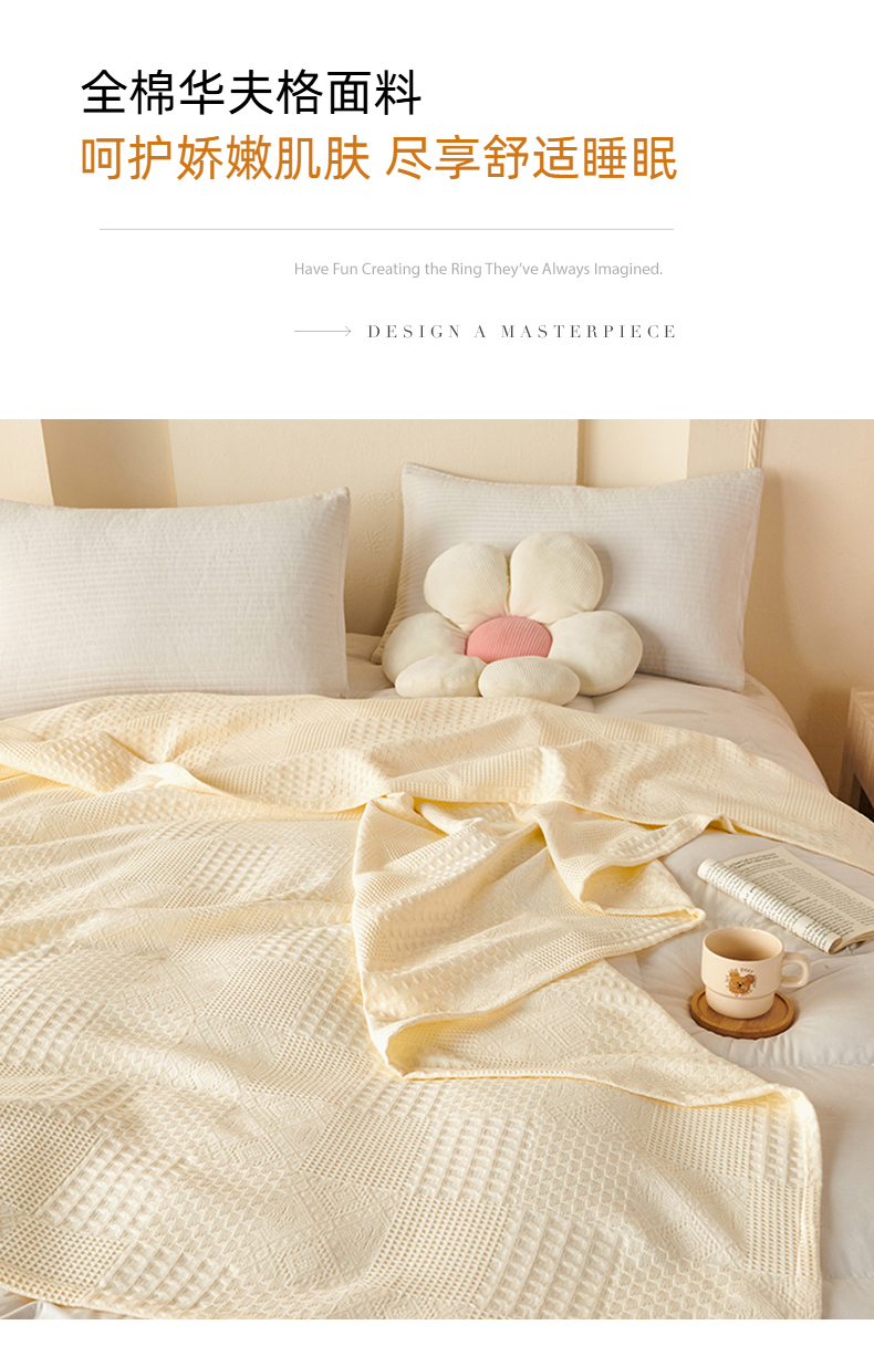 悦然毛巾被 2026新款华夫格全棉纱布毛巾被夏凉被空调被 静居织语杏白