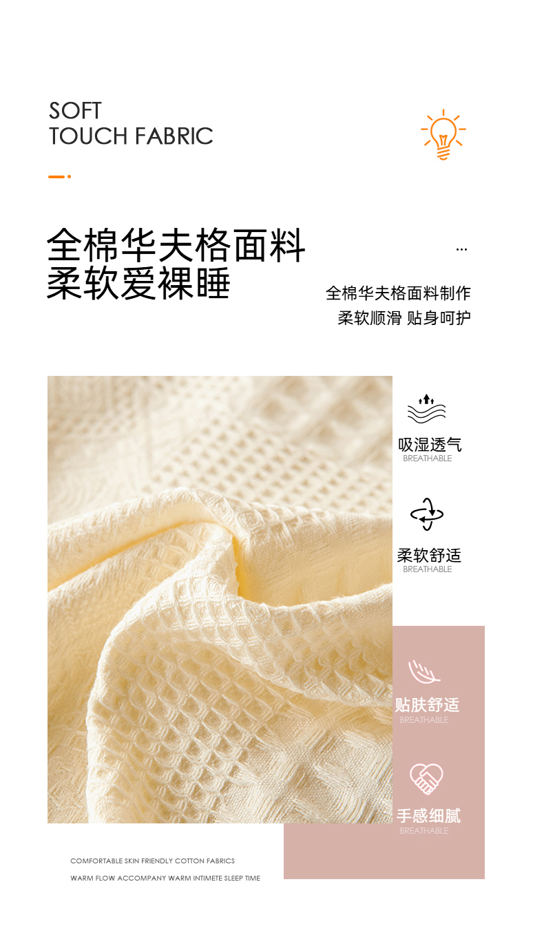 商品名称:悦然毛巾被 2026新款华夫格全棉纱布毛巾被夏凉被空调被 静居织语杏白