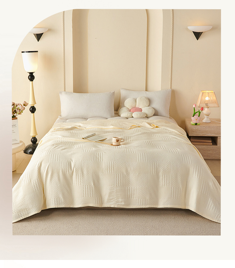 (总)悦然毛巾被 2026新款华夫格全棉纱布毛巾被夏凉被空调被,静居织语豆纱,静居织语咖啡,静居织语浅灰,静居织语浅绿,静居织语杏白