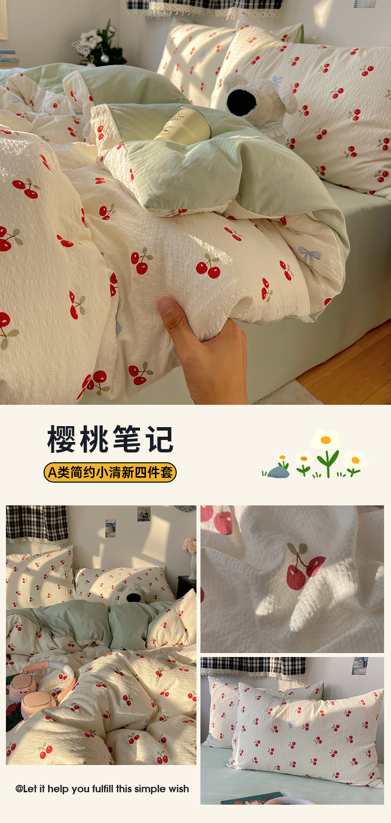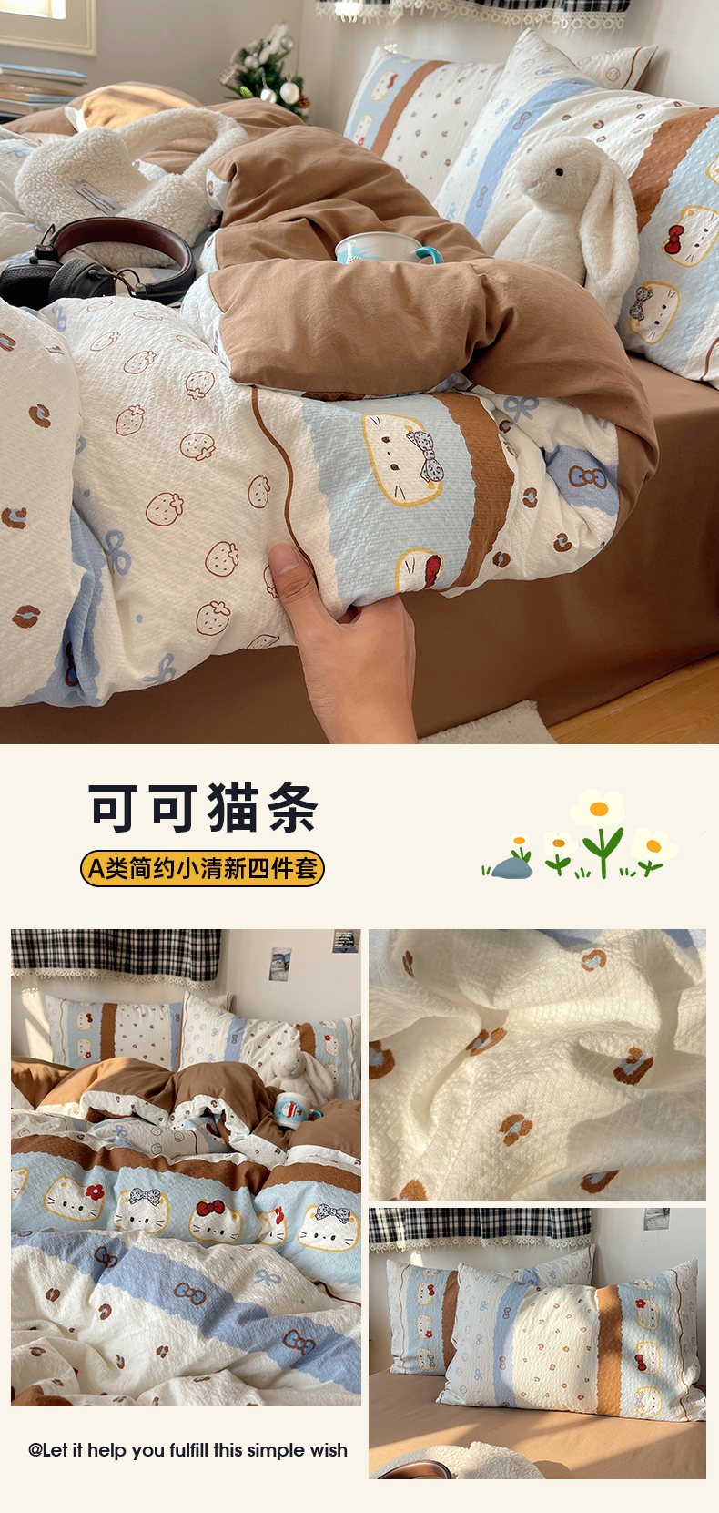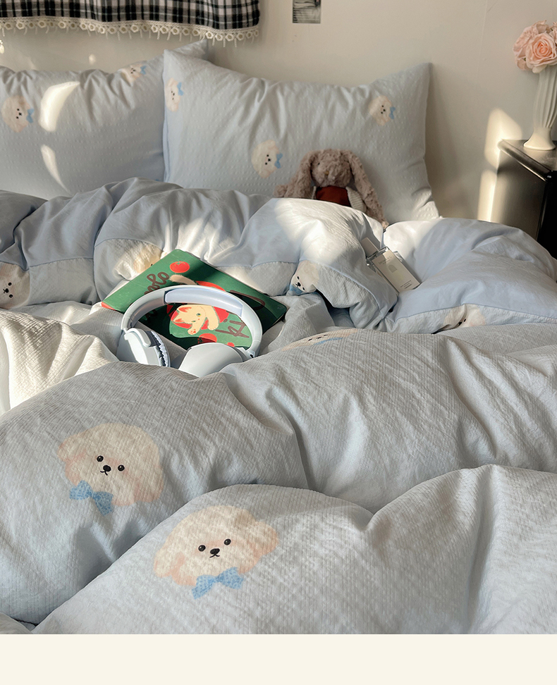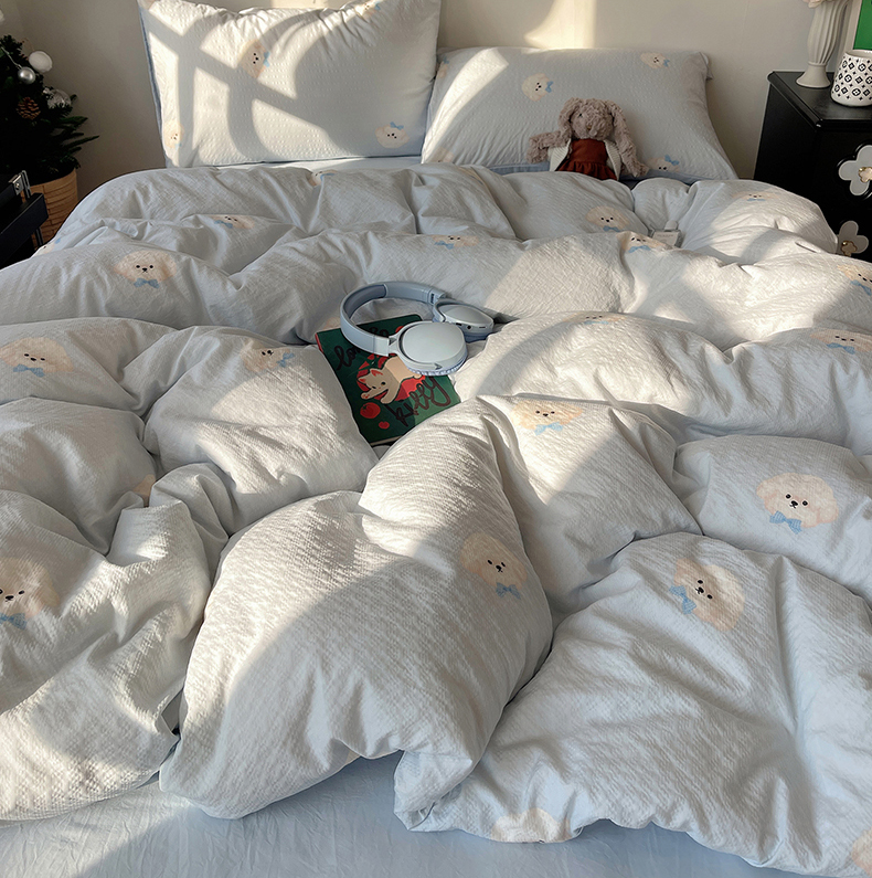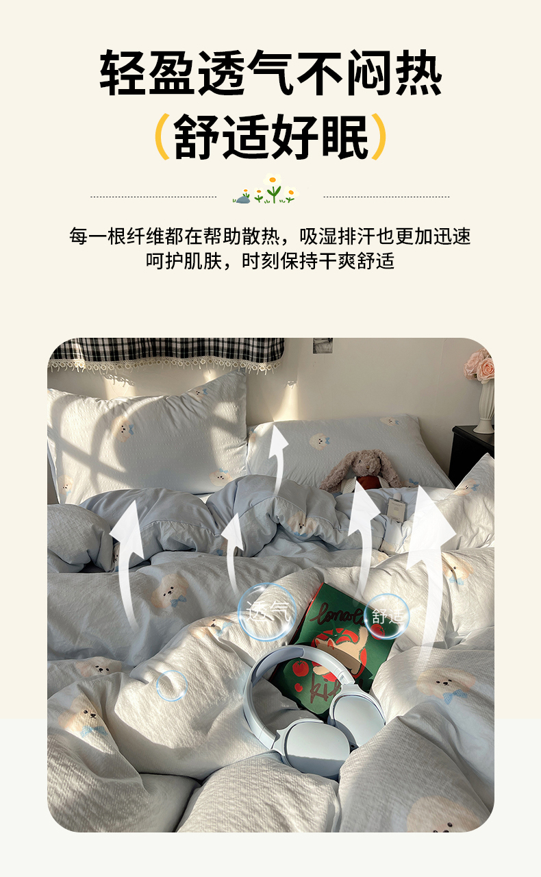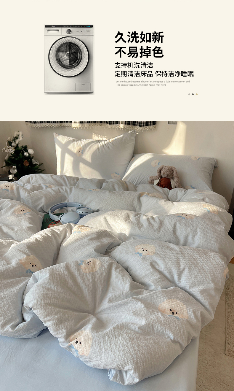 (总)沐芷 2026 【提供买家秀】水洗棉四件套A类简约小清新床上用品床笠款被套床单三件套被罩卡通可爱,奔向幸福,云朵狗,饼干熊,彩虹天堂,烘焙师,蓝豹喵星人,蓝色假日,猫屿甜心,萌猫派对,趣跑,森系田园兔,雾蓝西高地,旋转木马,芝士碎