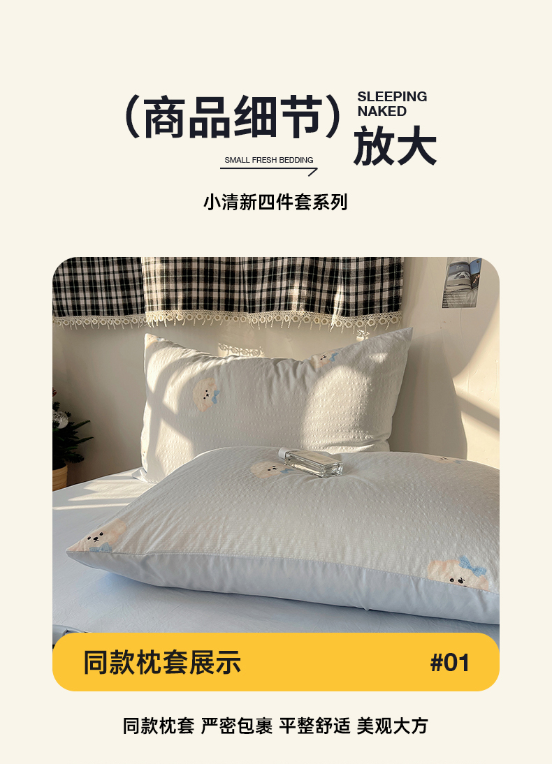 商品名称:(总)沐芷 2026 高克重110g泡芙棉四件套A类床上用品被套宿舍床单三件套【提供买家秀】