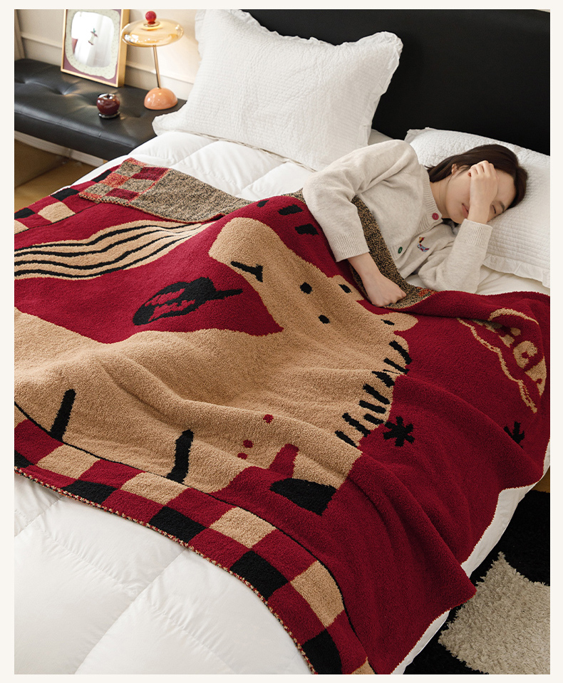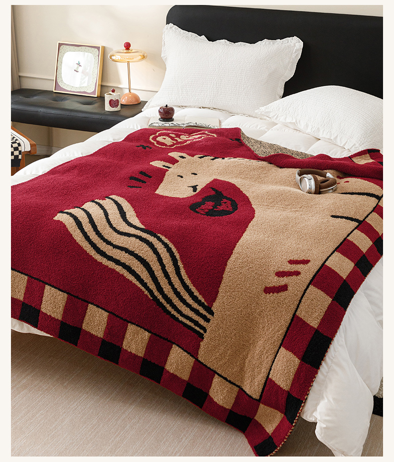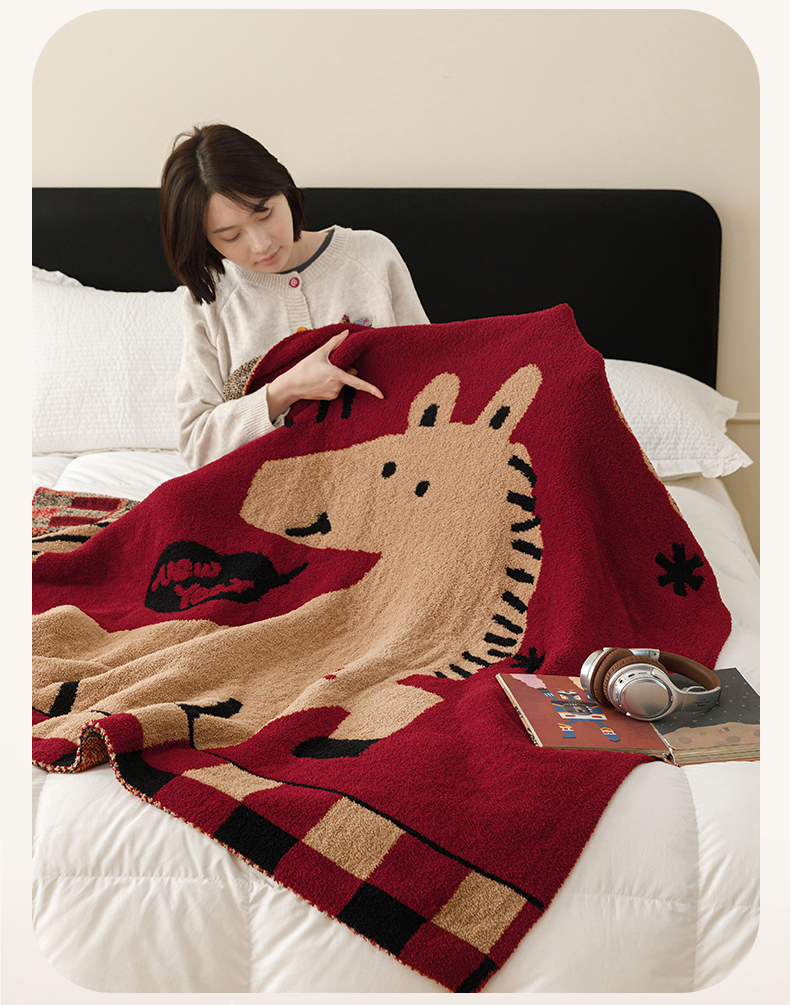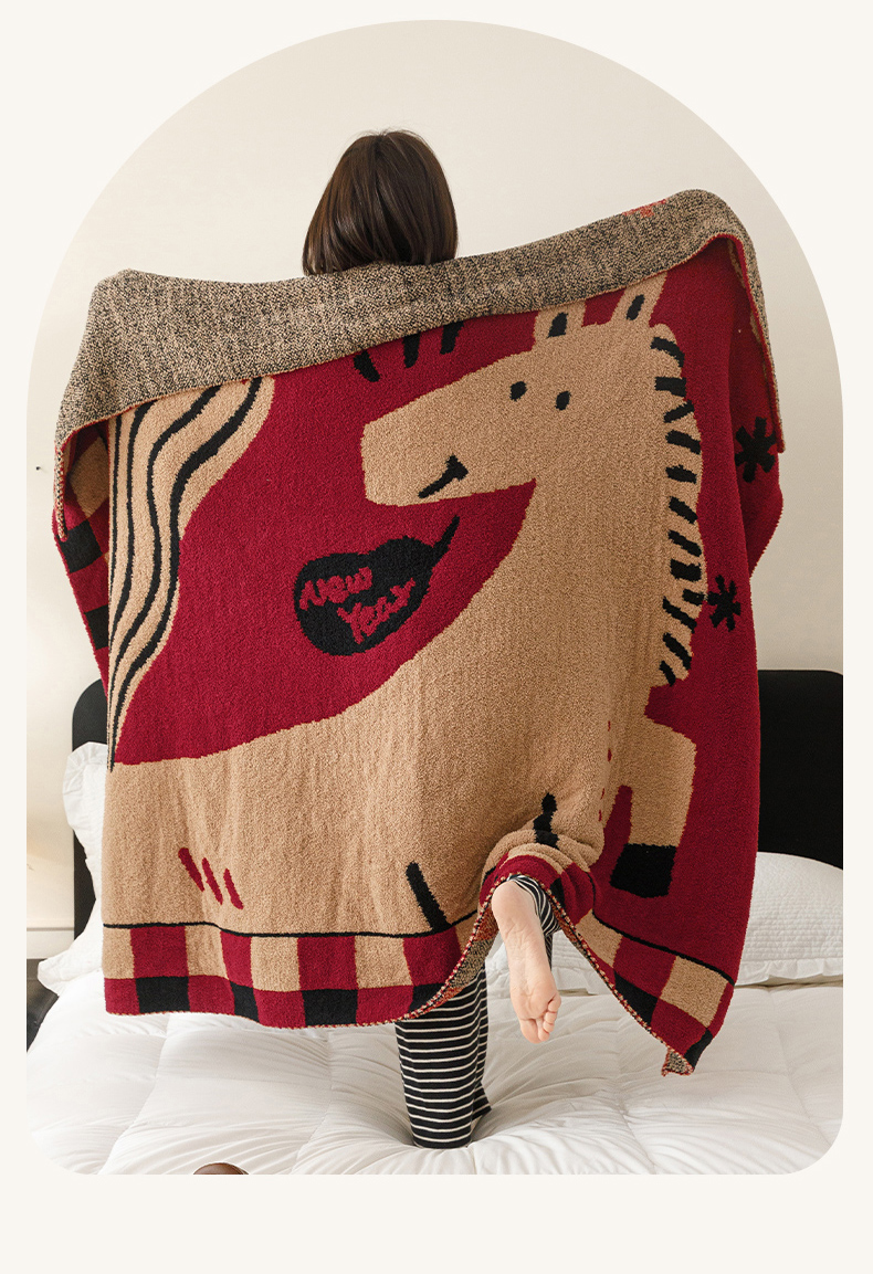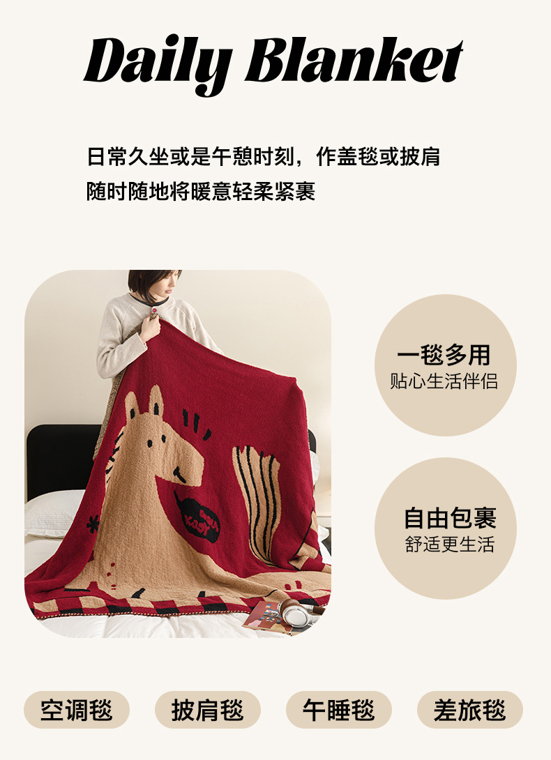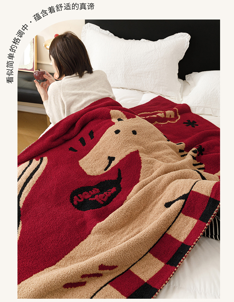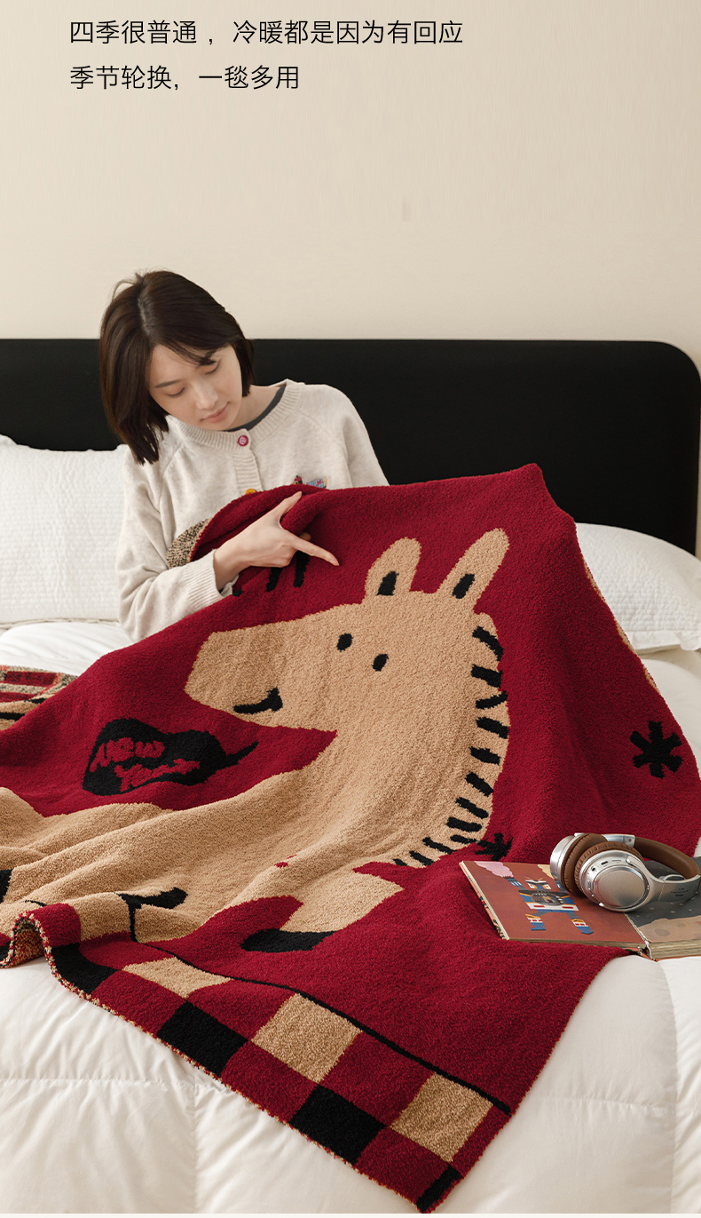 瑞米家居 2026新款多功能半边绒盖毯毛毯毯子 rich horse驼